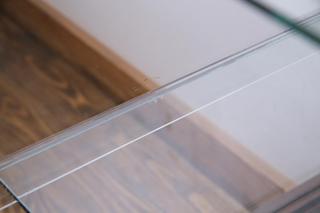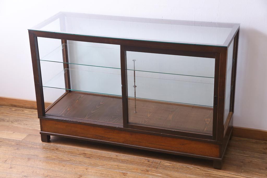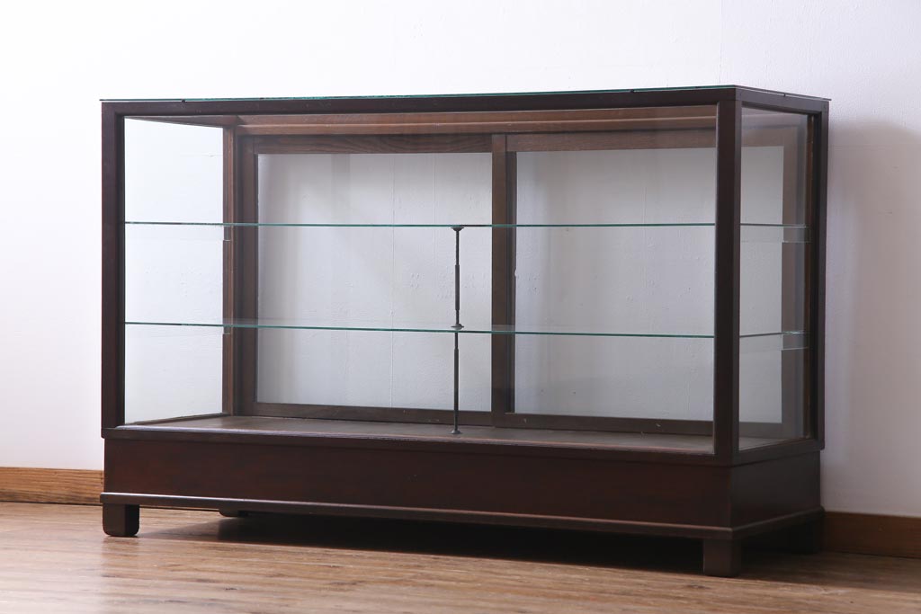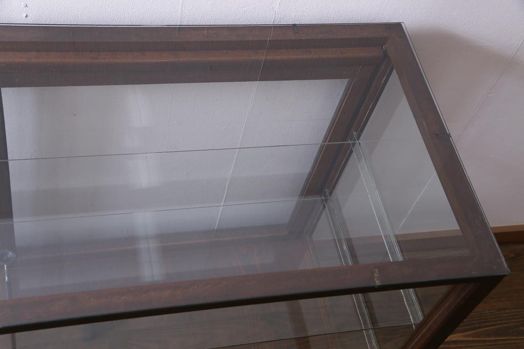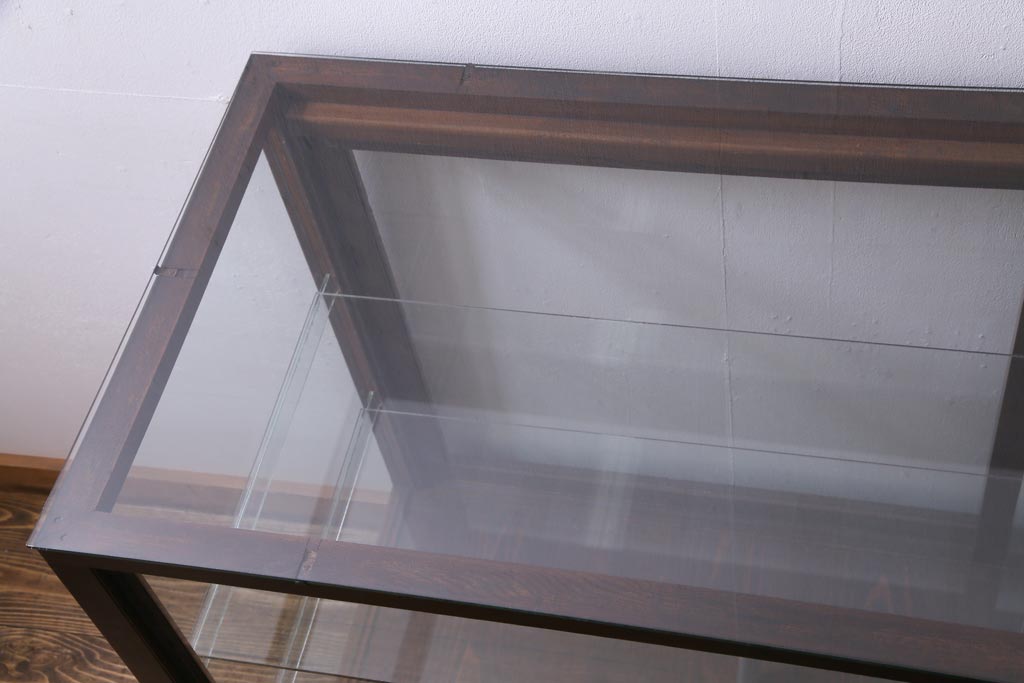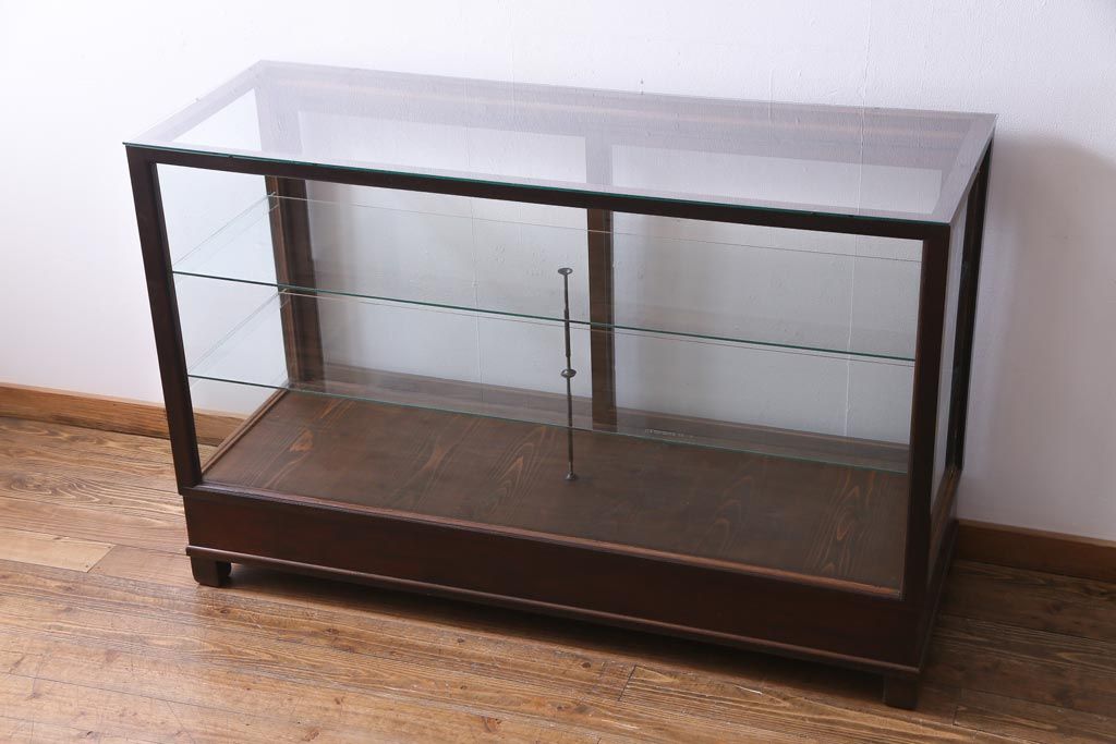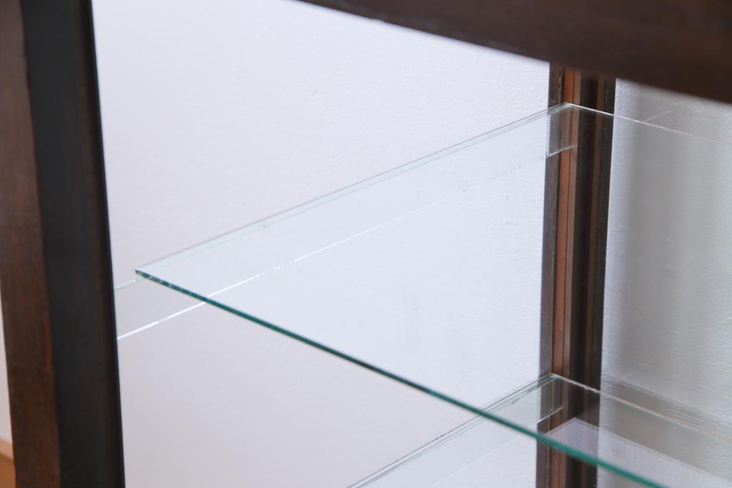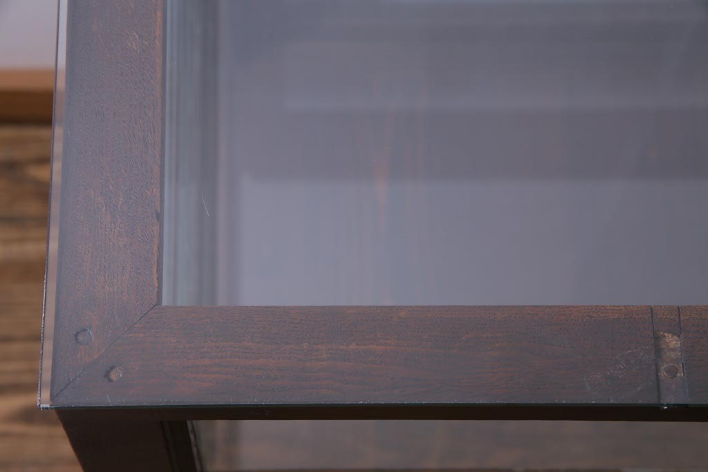 ラフジュ工房> 店舗什器 > レトロ家具 昭和レトロ ナラ材 どっしりとした佇まいの大型ガラスケース(ショーケース、陳列棚、飾り棚)