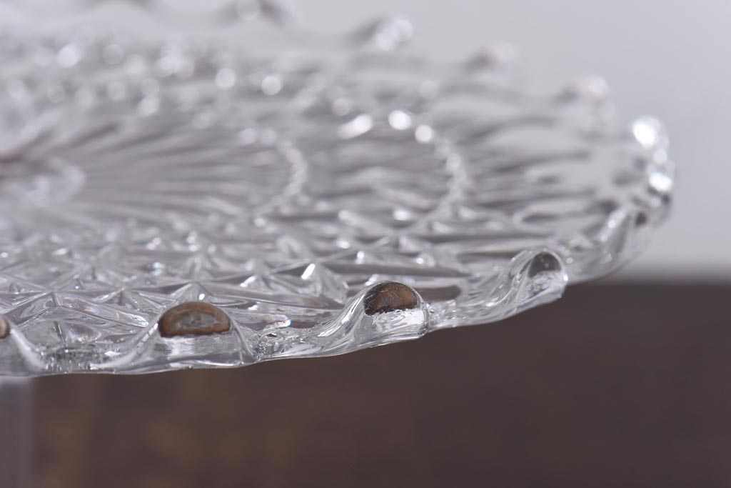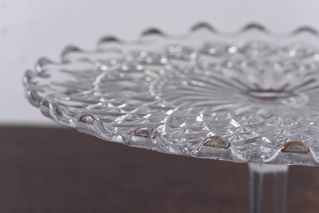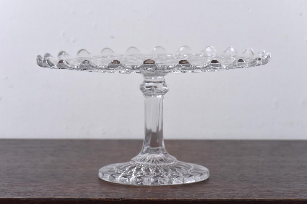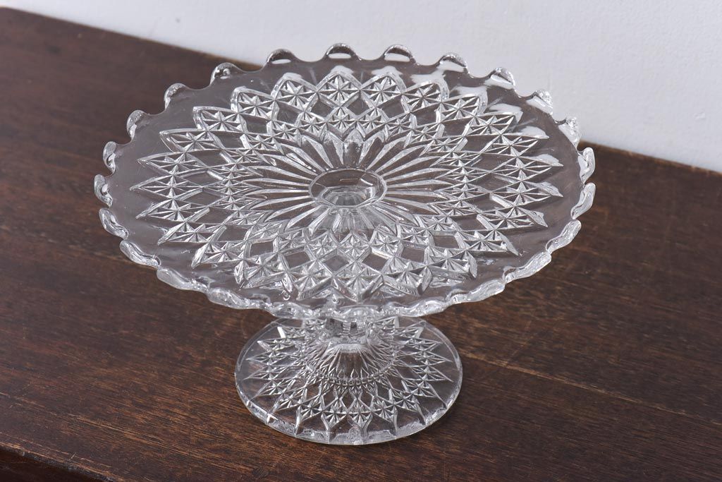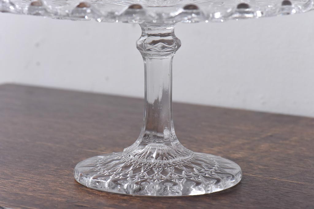 アンティーク雑貨 イギリスビンテージ 波のような縁がおしゃれプレスガラスのケーキスタンド