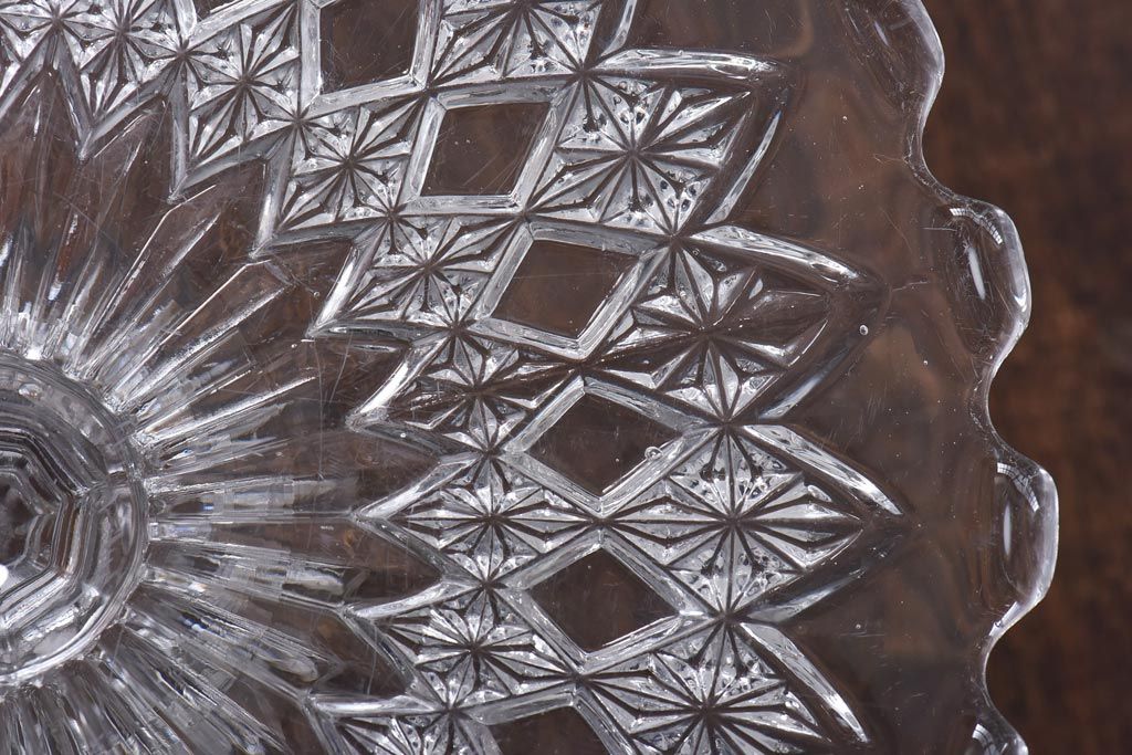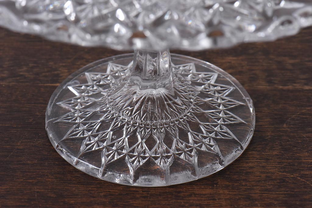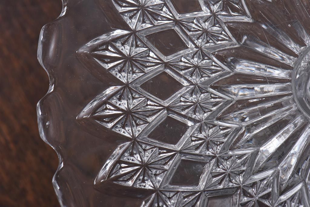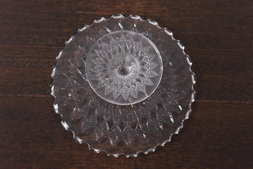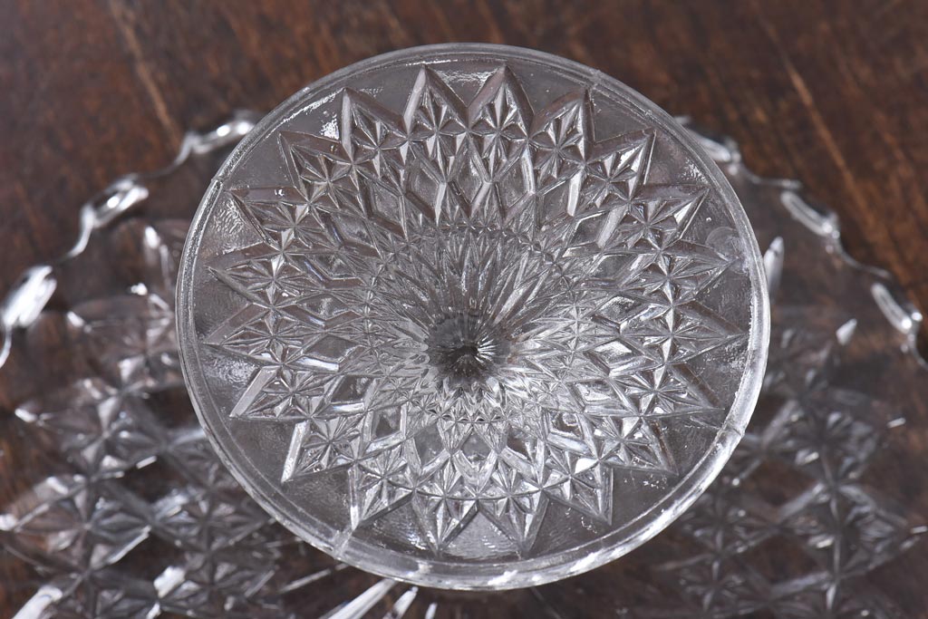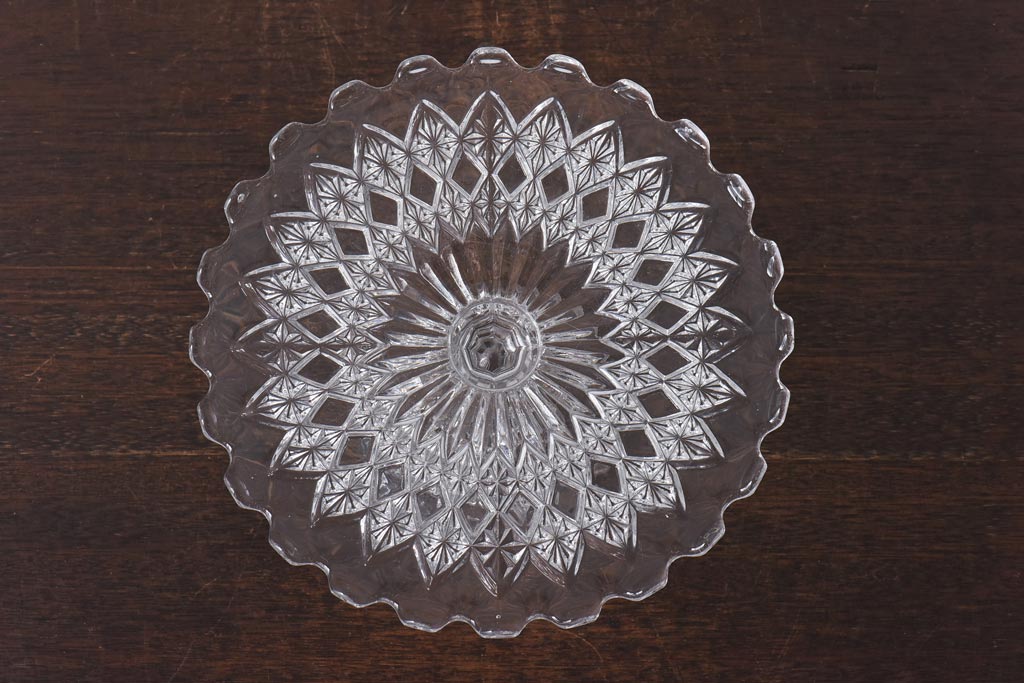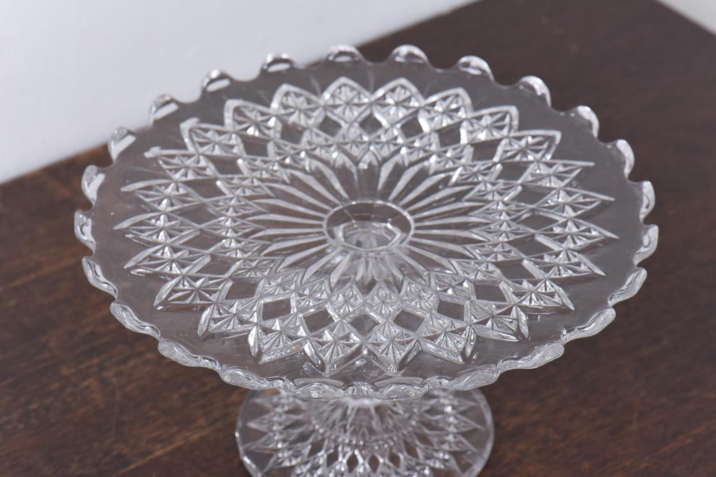 ラフジュ工房> 骨董・美術品> 骨董-ガラス食器 > アンティーク雑貨 イギリスビンテージ 波のような縁がおしゃれプレスガラスのケーキスタンド