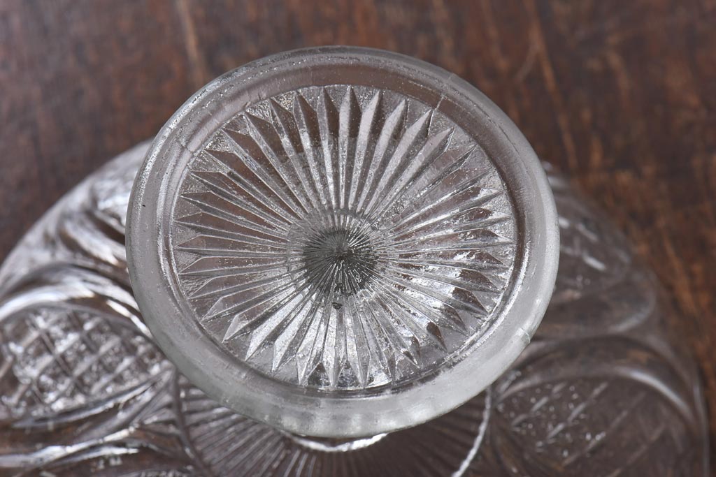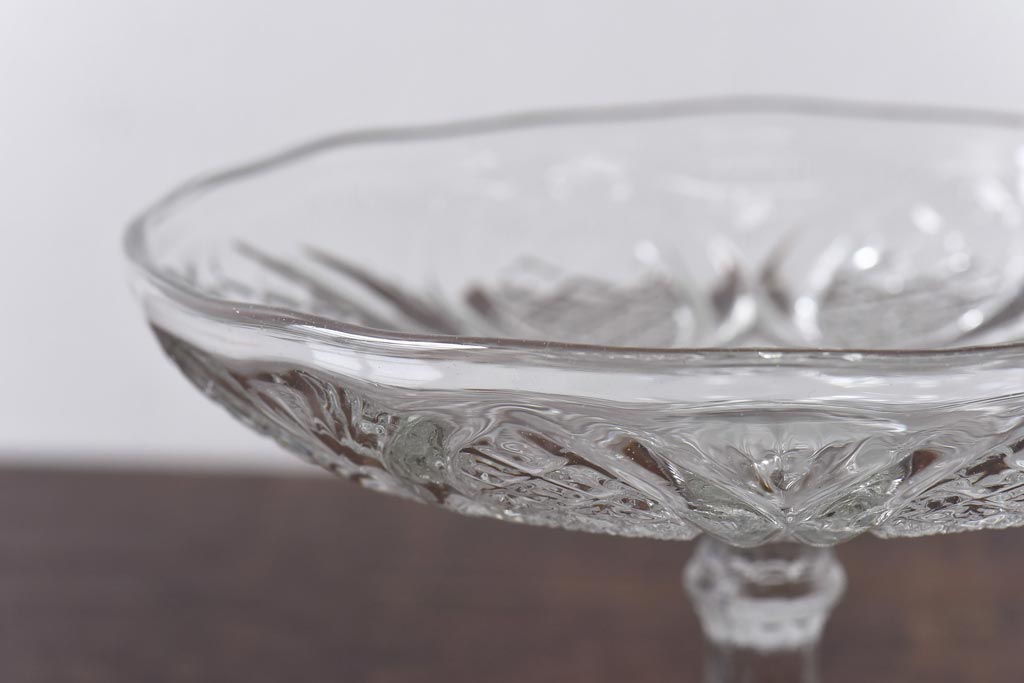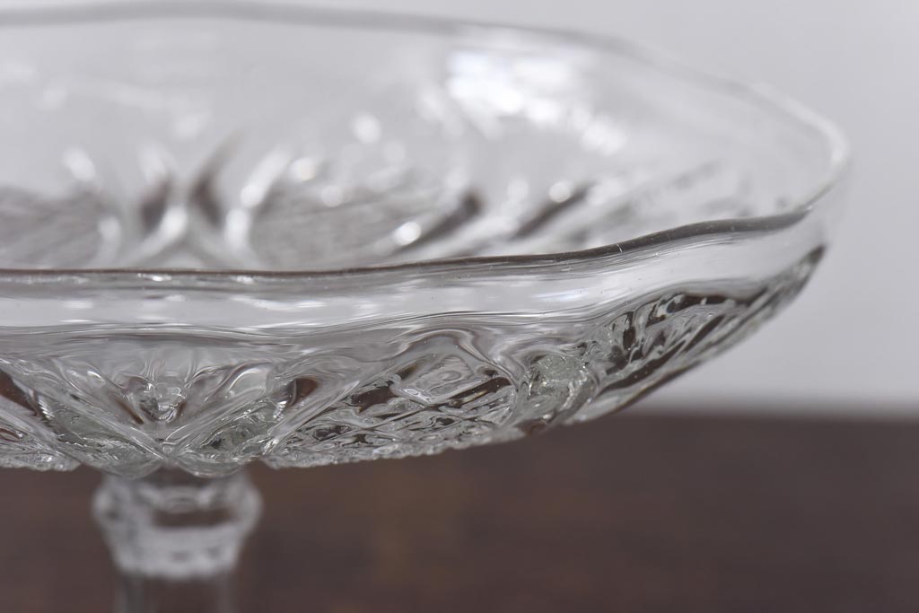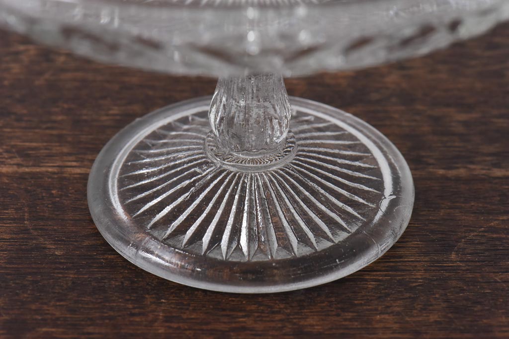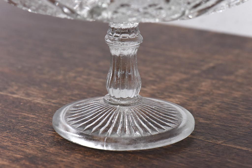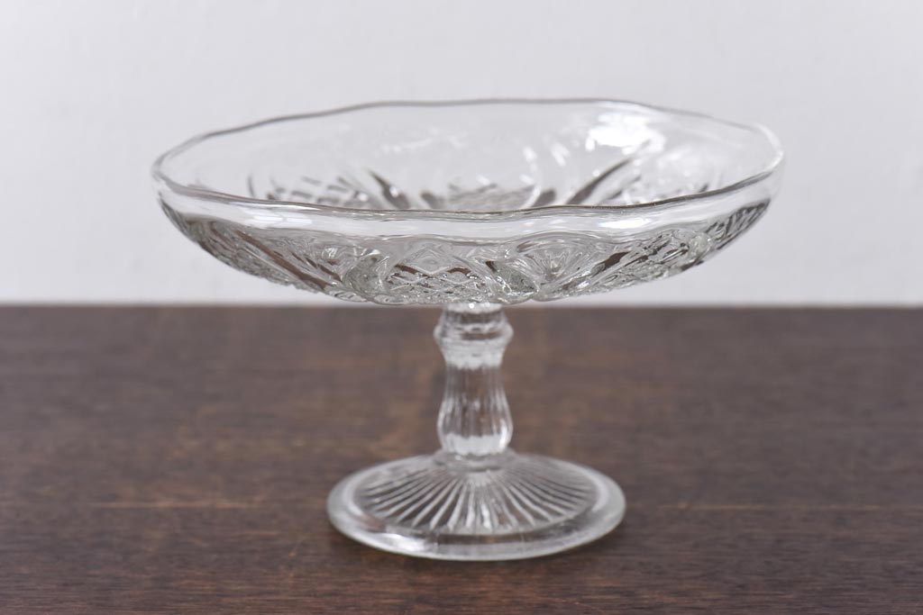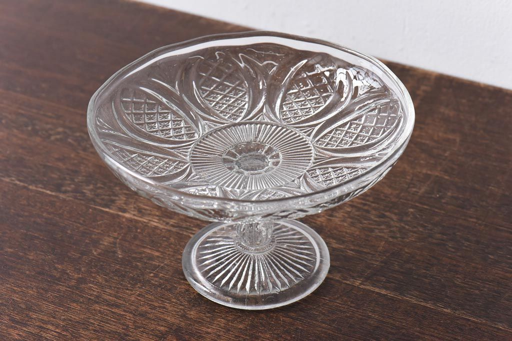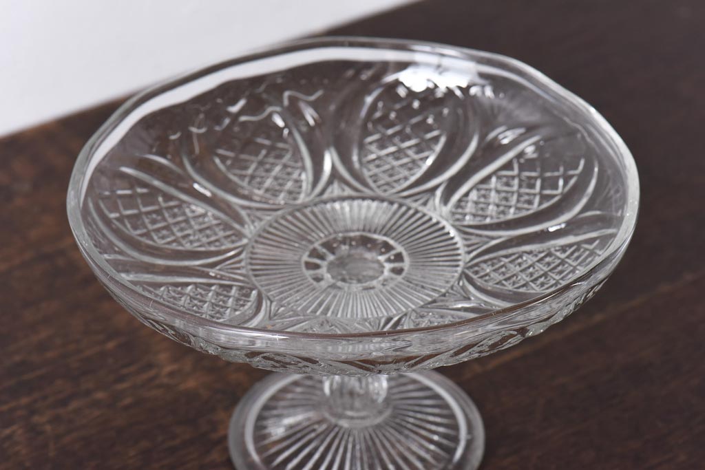 アンティーク雑貨 イギリス製 細かな模様が可愛らしいビンテージのガラスコンポート(プレスガラス)