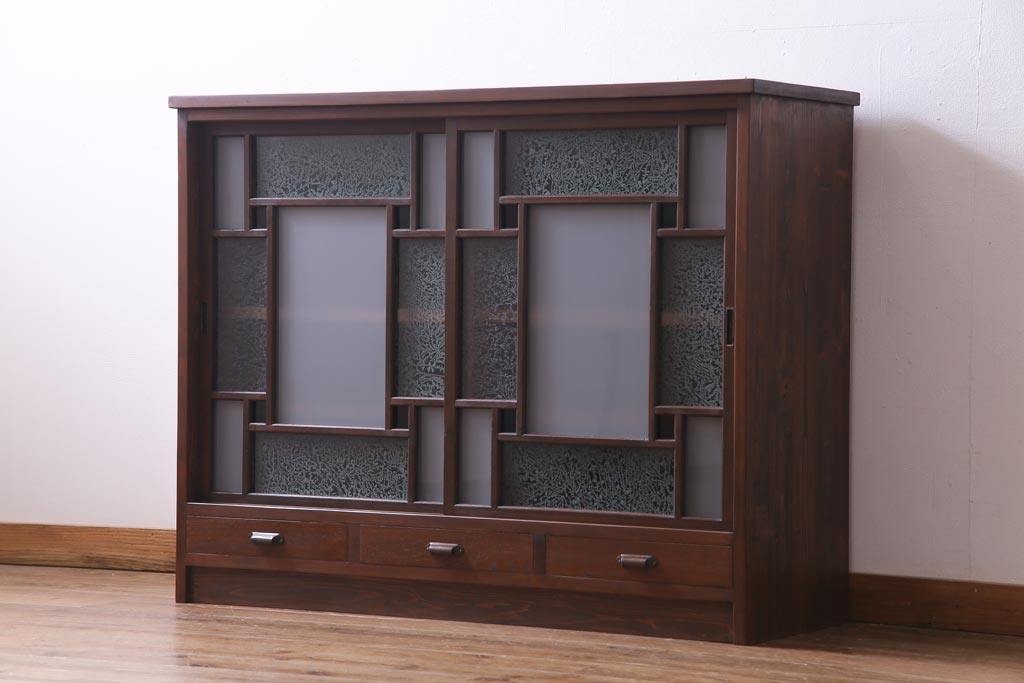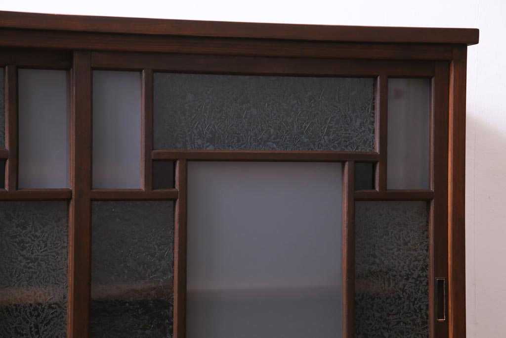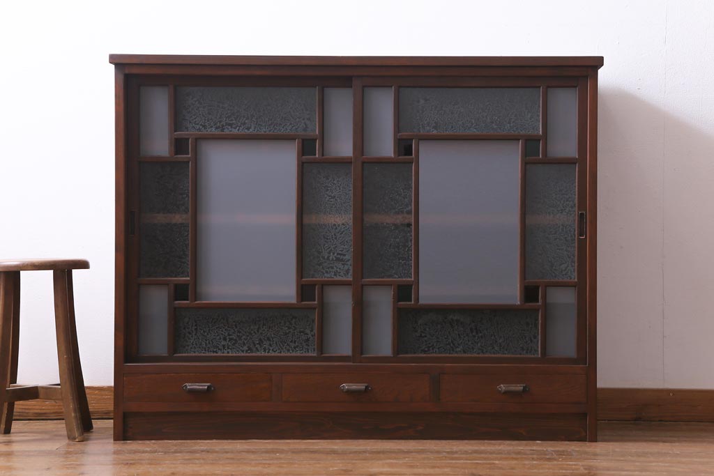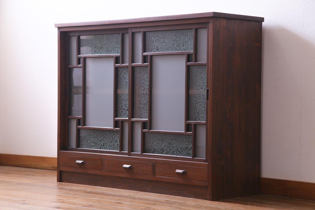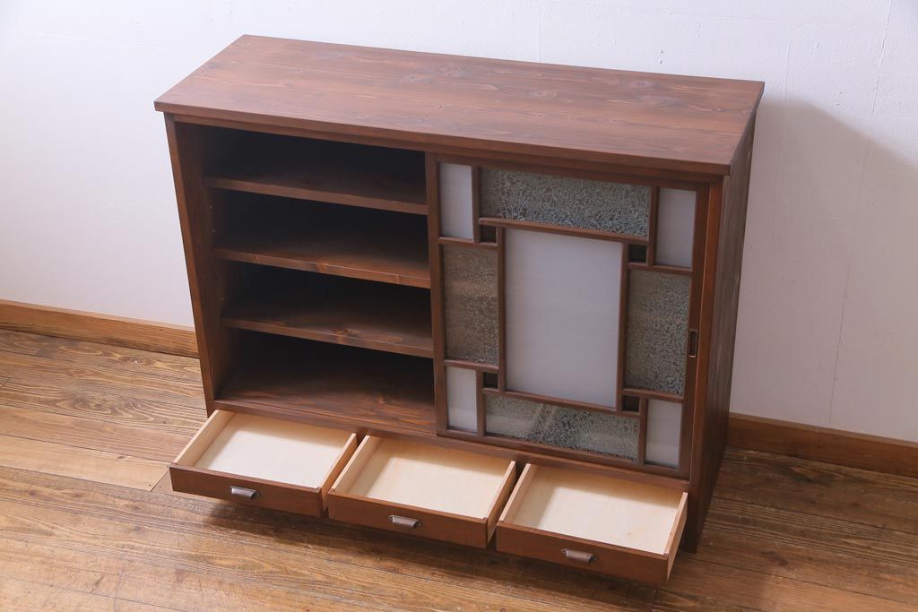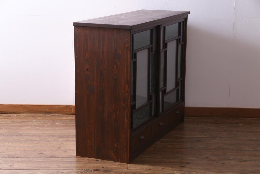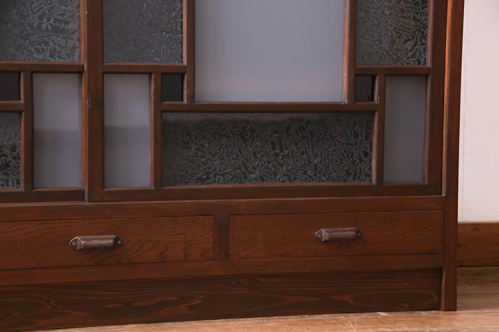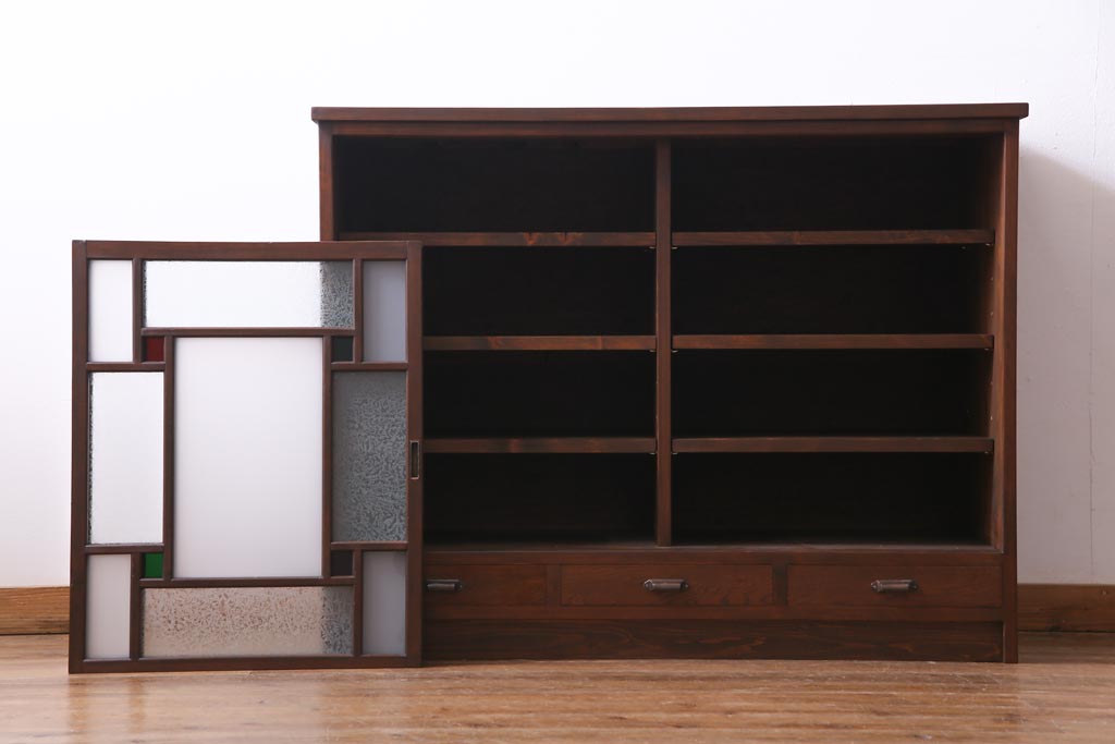 ラフジュ工房オリジナル 大正期 古建具リメイク 当時もの色ガラスがアクセントの戸棚(収納棚、サイドボード)です。