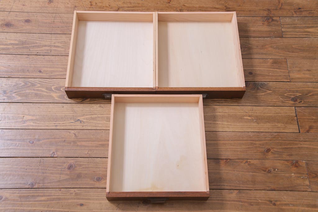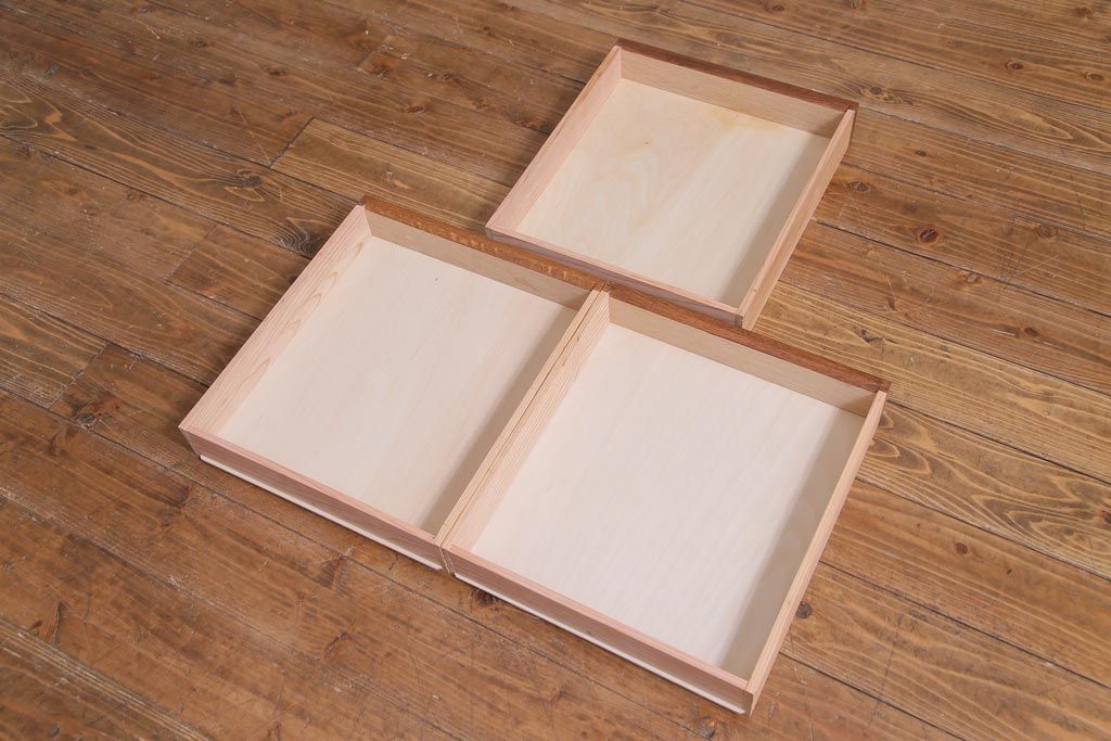 本体や引き出しは新材を使って製作しておりますので、