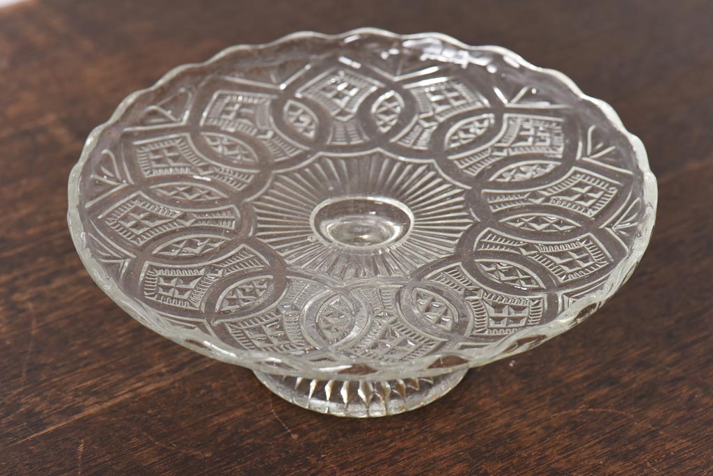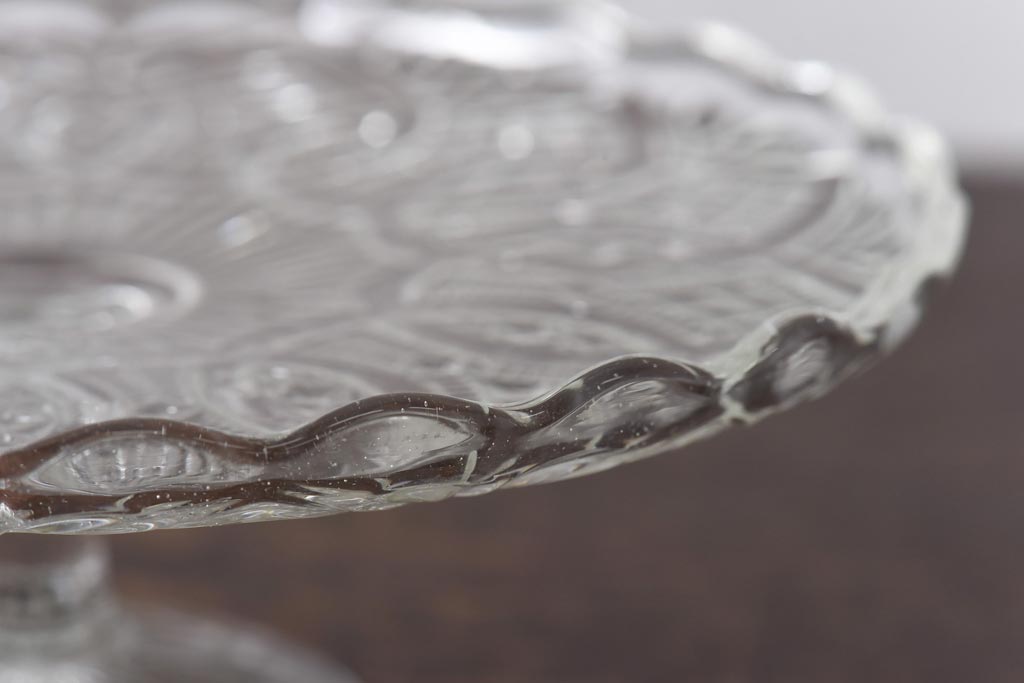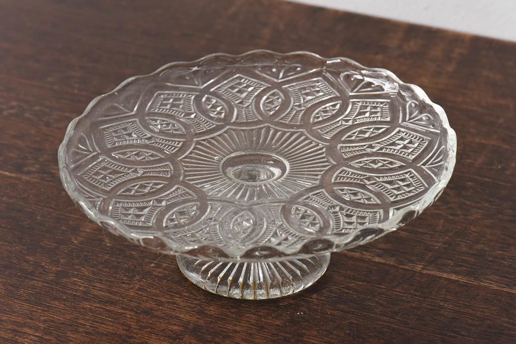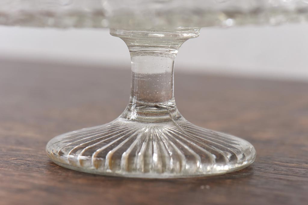 ラフジュ工房> 洋食器・キッチン用品 > アンティーク雑貨 イギリスビンテージ 花が咲いたようなデザインのプレスガラス製ケーキスタンド