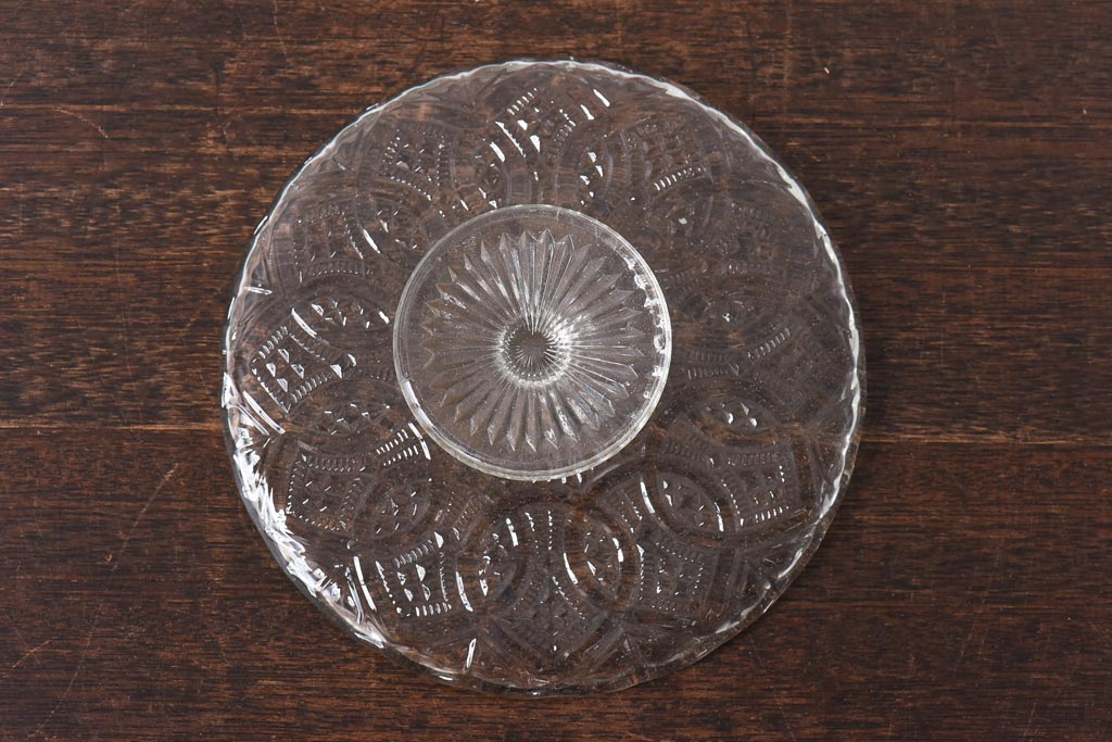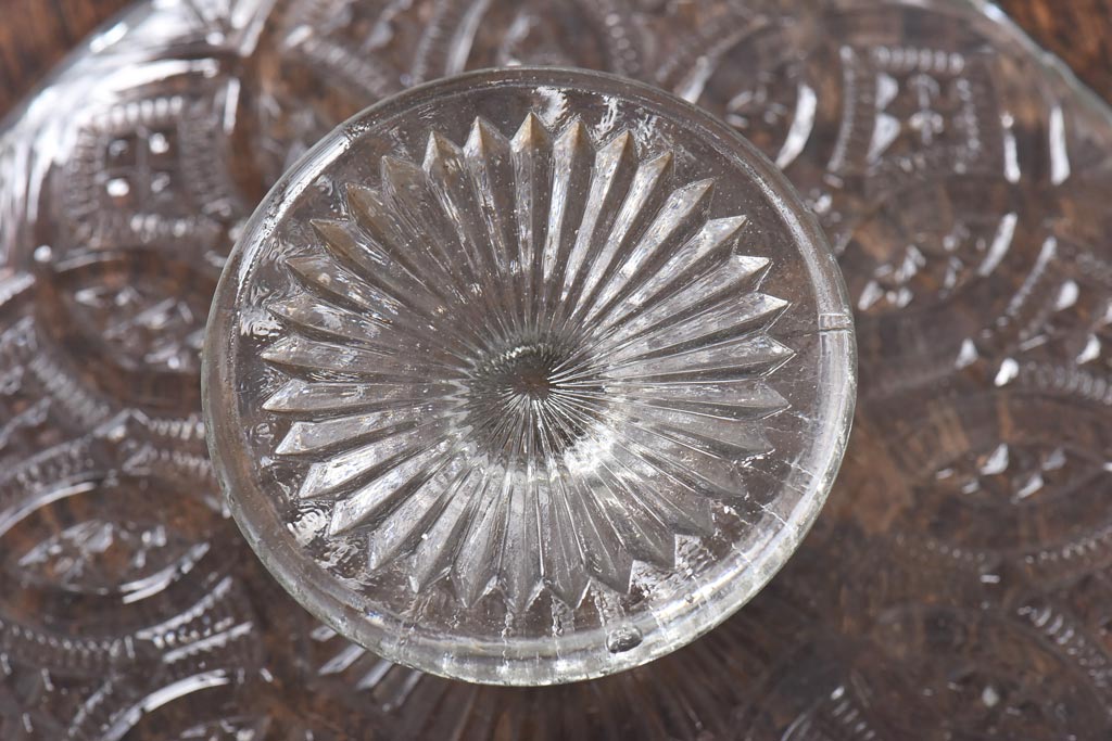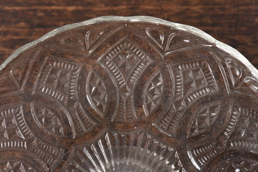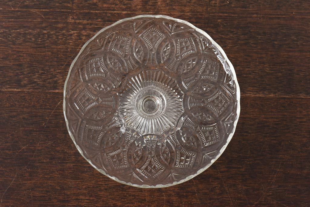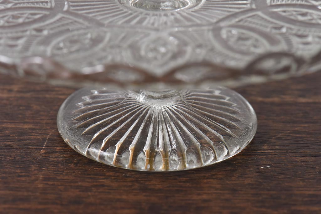 ラフジュ工房> 骨董・美術品> 骨董-ガラス食器 > アンティーク雑貨 イギリスビンテージ 花が咲いたようなデザインのプレスガラス製ケーキスタンド