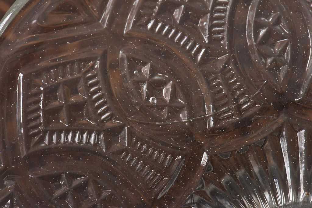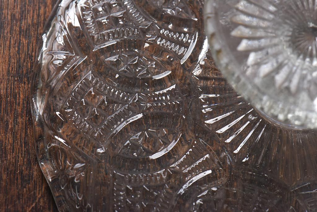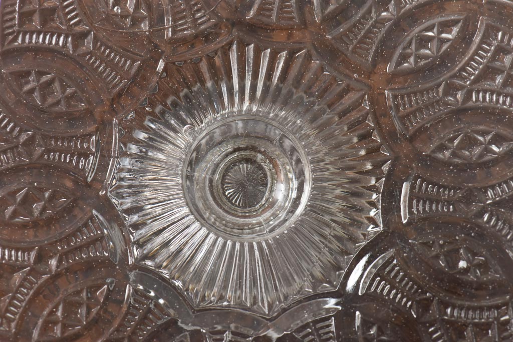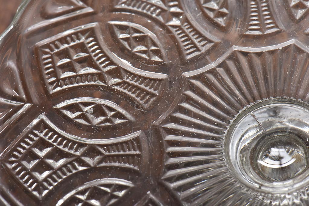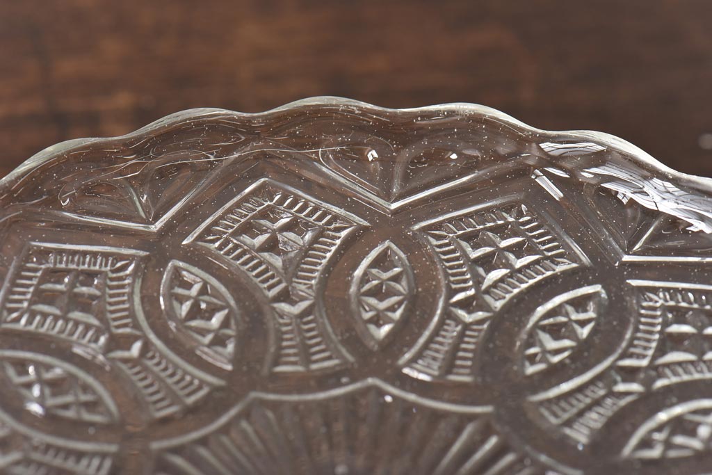 ラフジュ工房> 骨董・美術品> 骨董-ガラス食器 > アンティーク雑貨 イギリスビンテージ 花が咲いたようなデザインのプレスガラス製ケーキスタンド