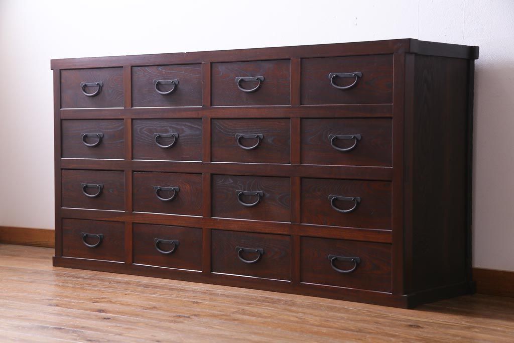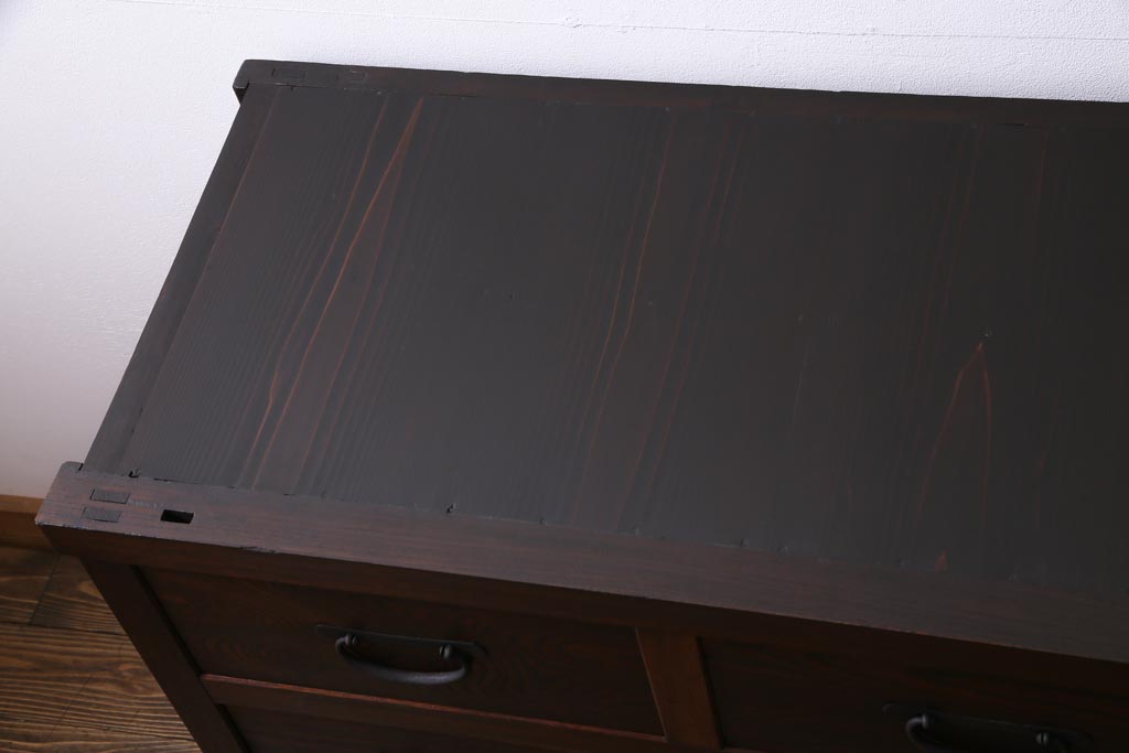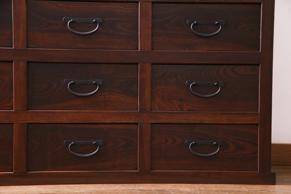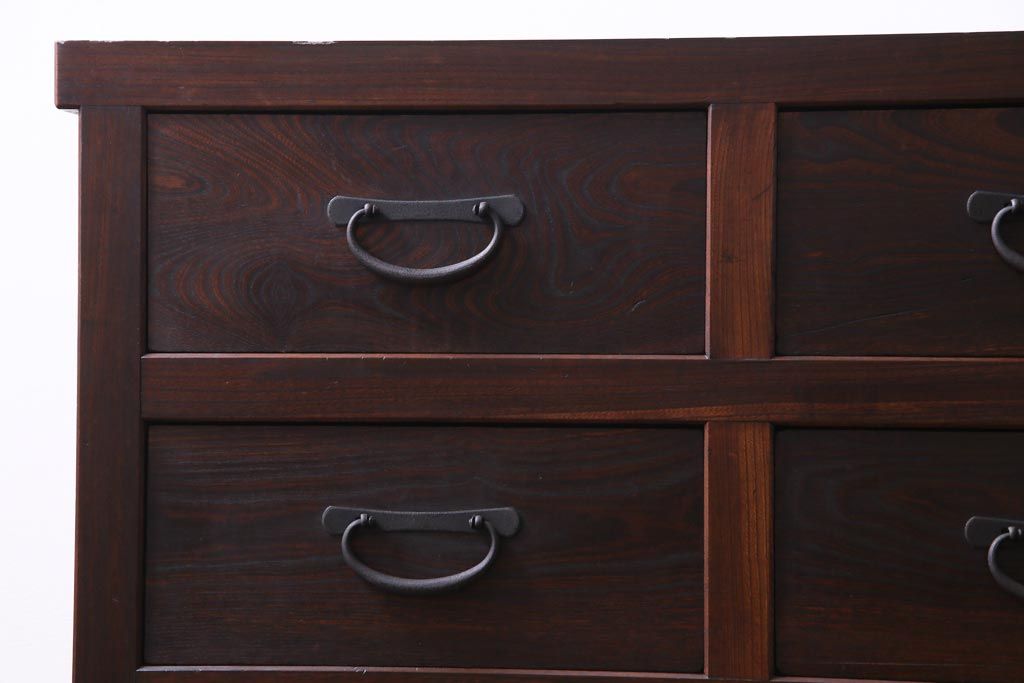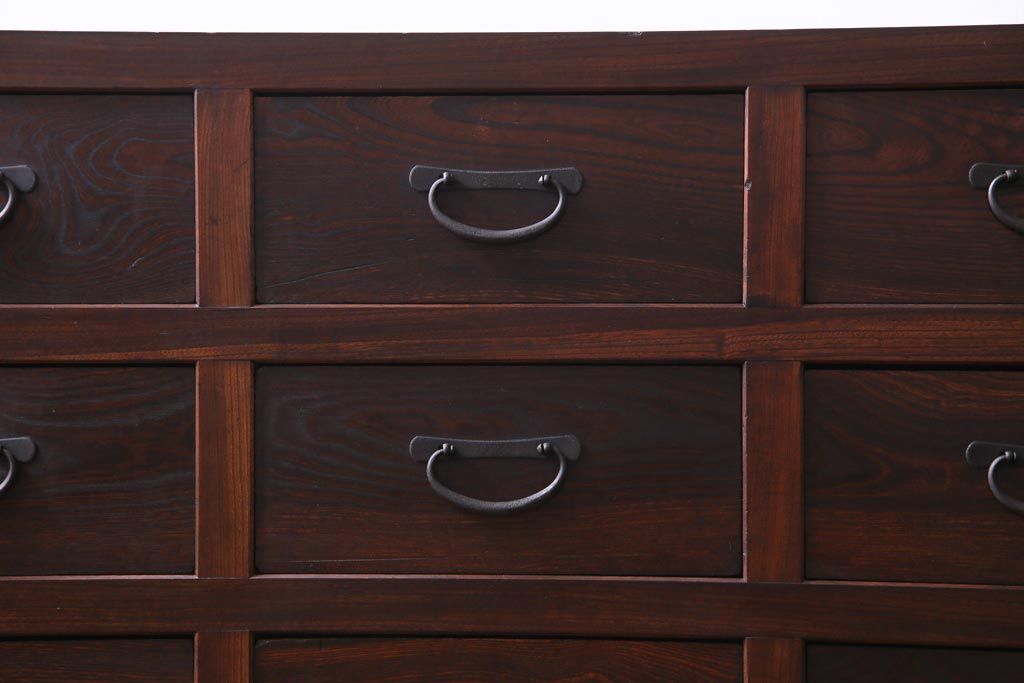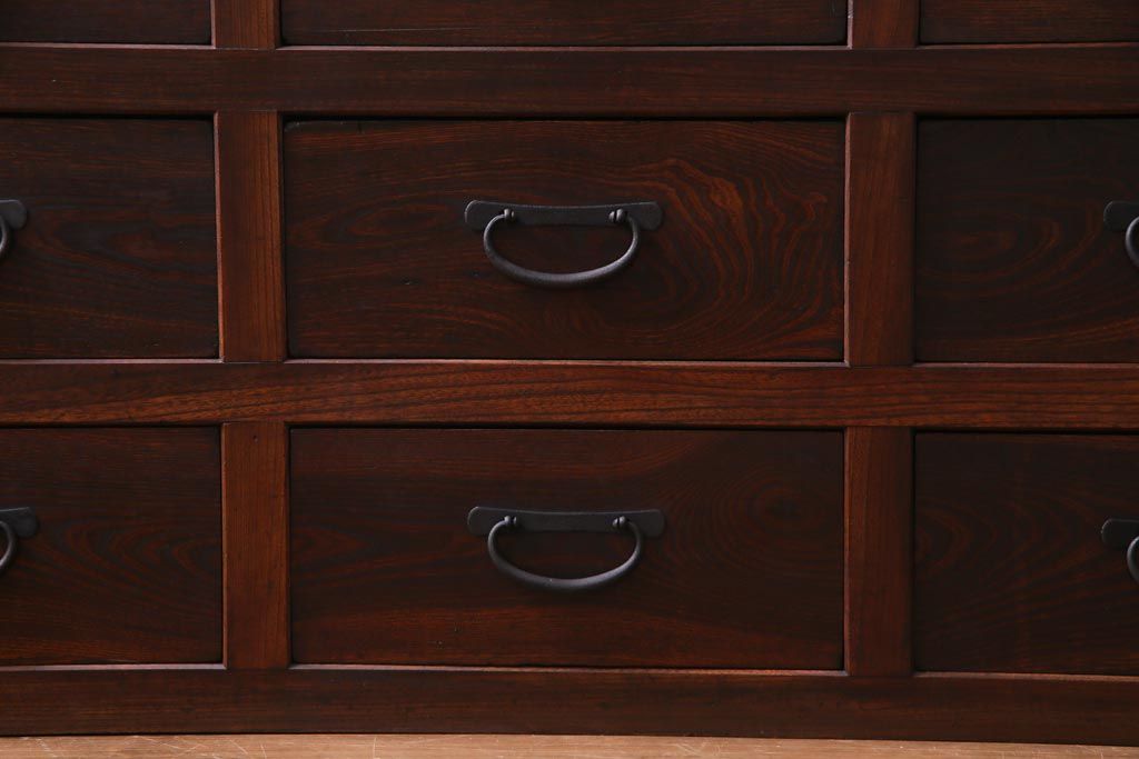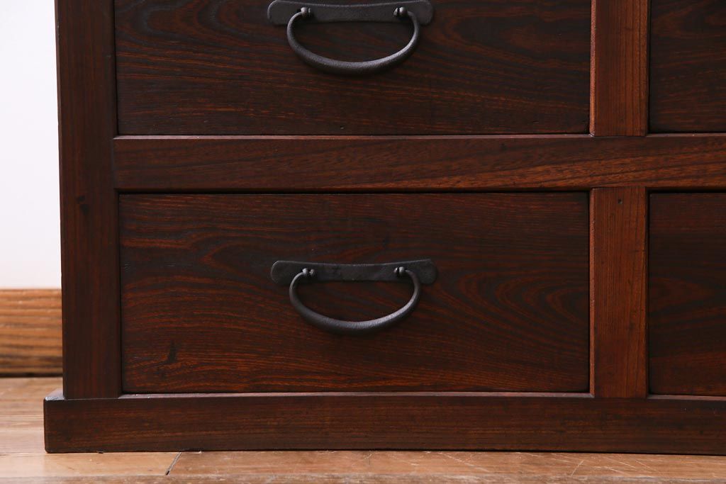 アンティーク家具 和製アンティーク 前面ケヤキ材 鮮明な杢目の引き出しが並んだ箪笥(サイドボード、チェスト)