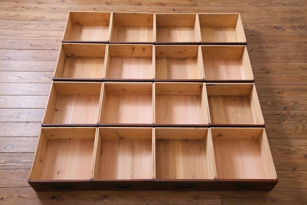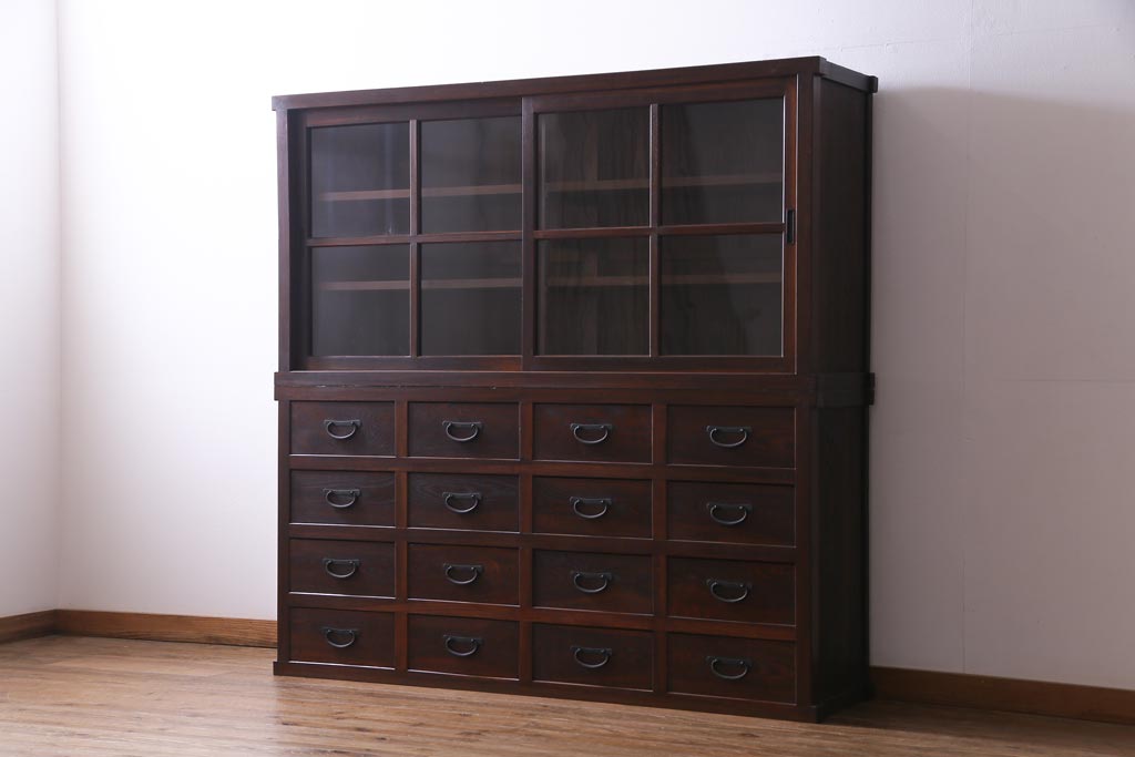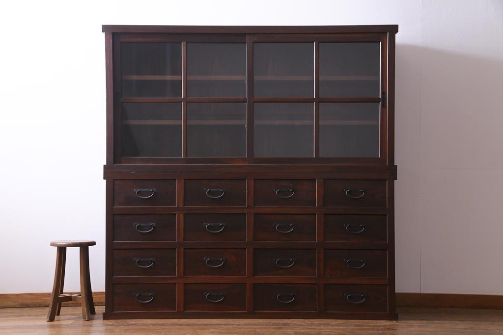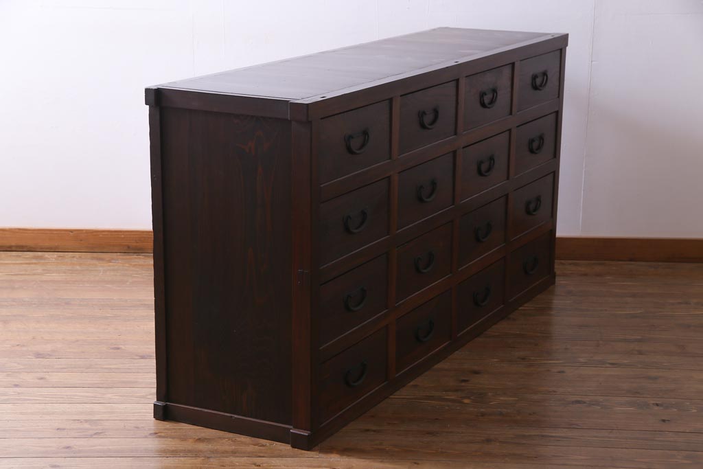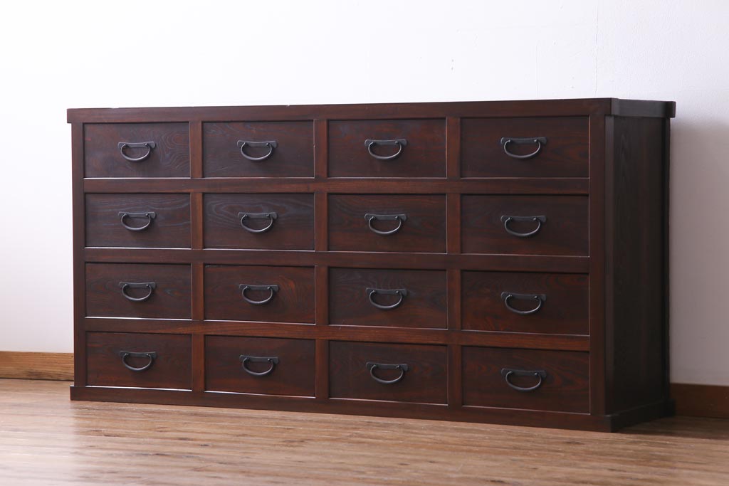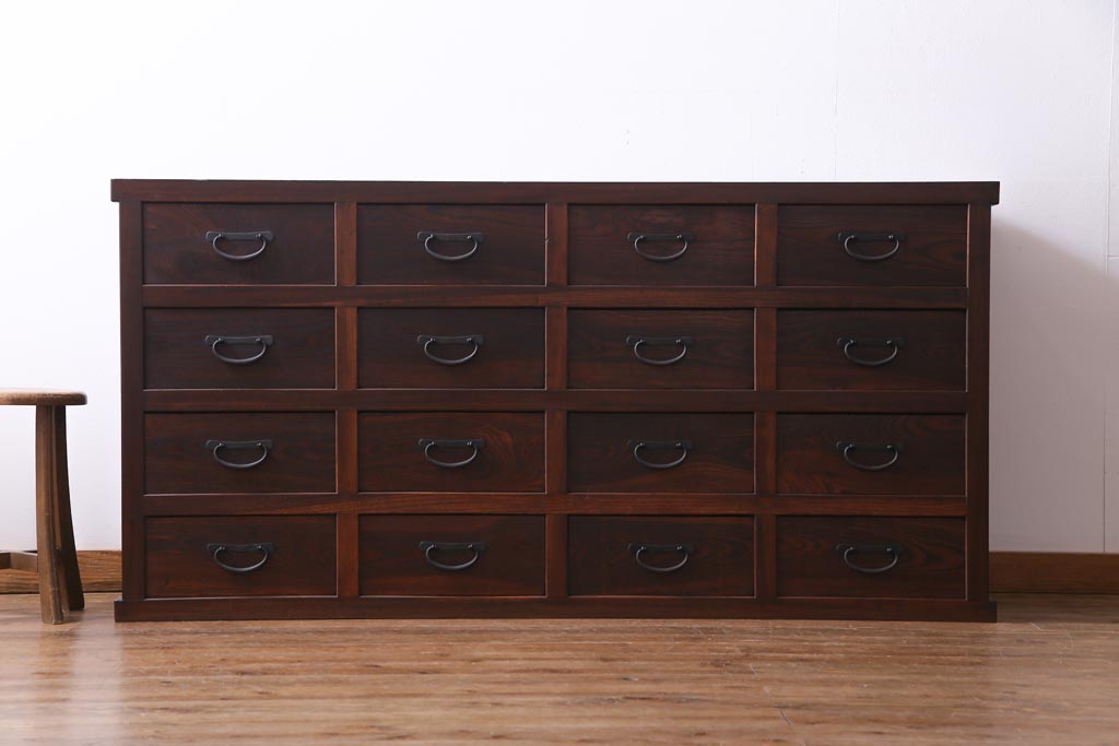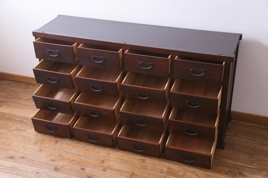 アンティーク家具 和製アンティーク 前面ケヤキ材 鮮明な杢目の引き出しが並んだ箪笥(サイドボード、チェスト)