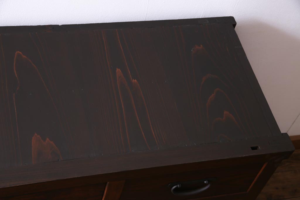 和製アンティーク 前面ケヤキ材 鮮明な杢目の引き出しが並んだ箪笥(サイドボード、チェスト)です。