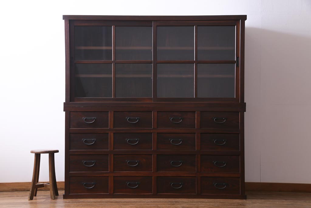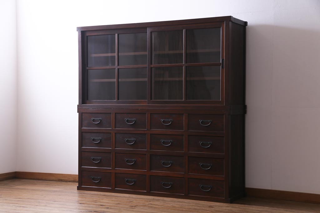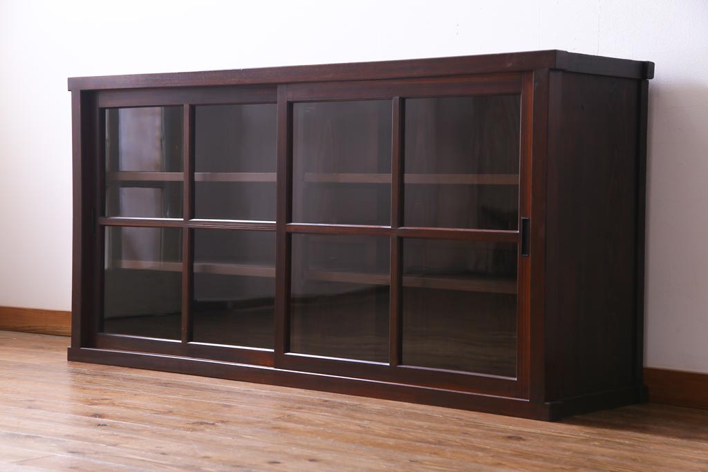 アンティーク家具 和製アンティーク シンプルな中に味わいが感じられるガラス戸棚(収納棚、サイドボード)
