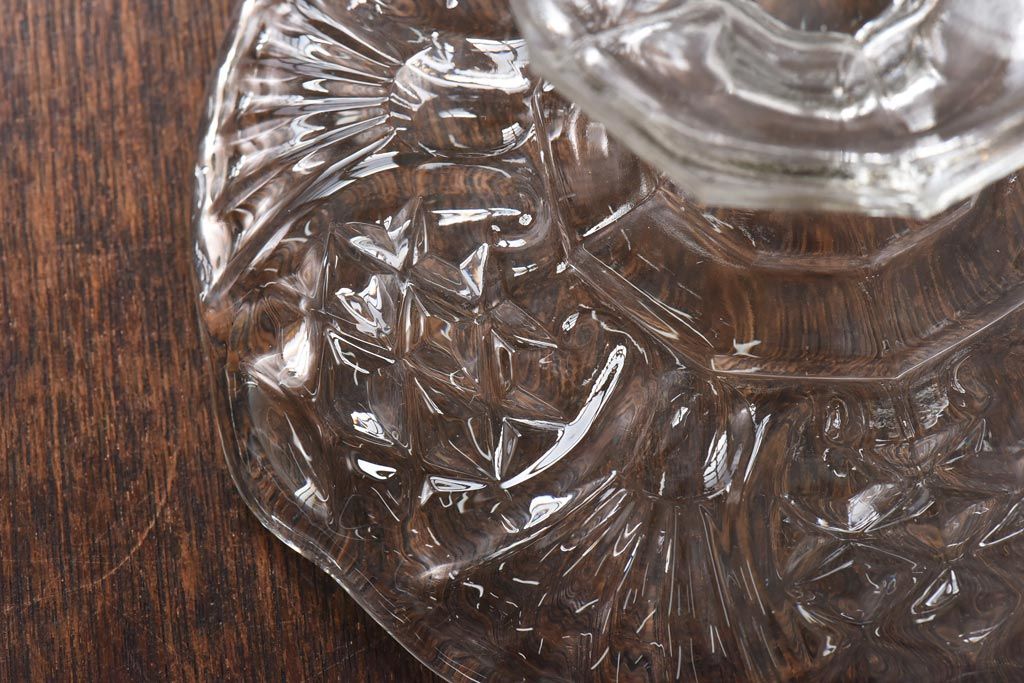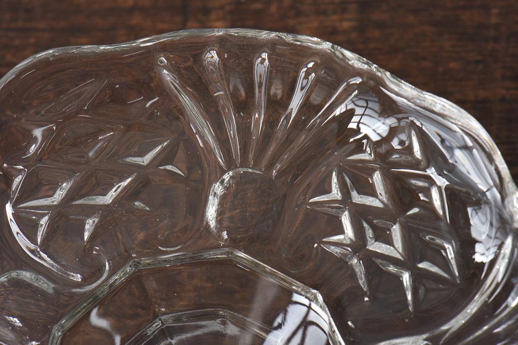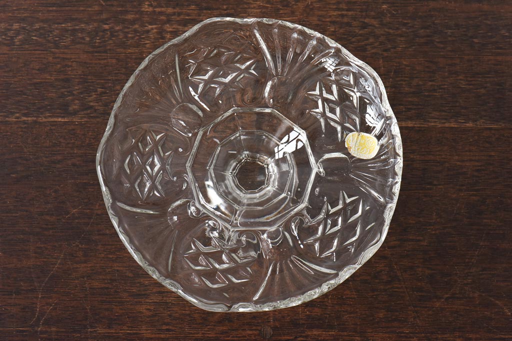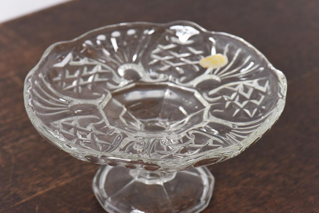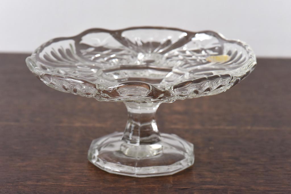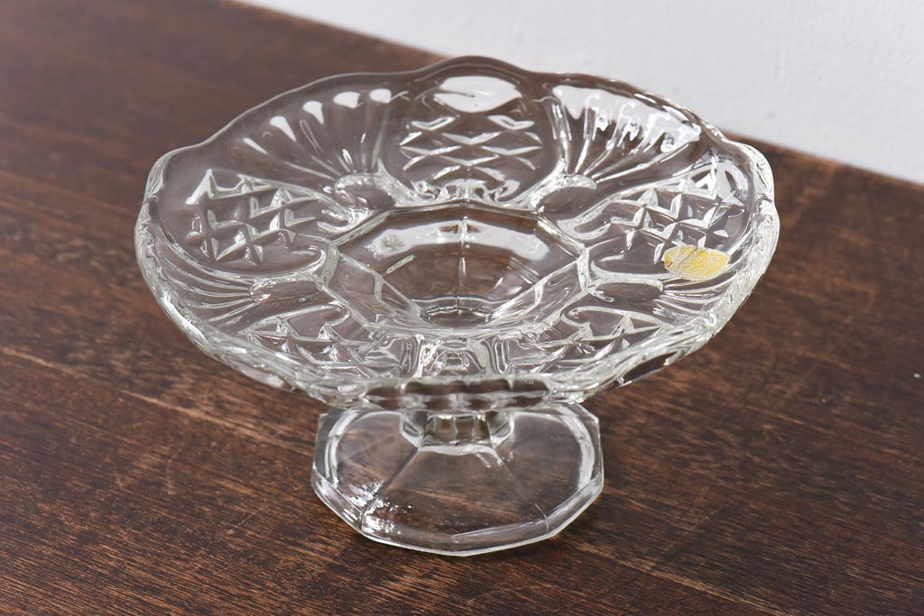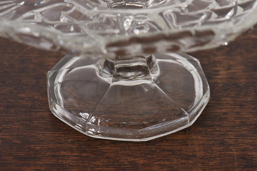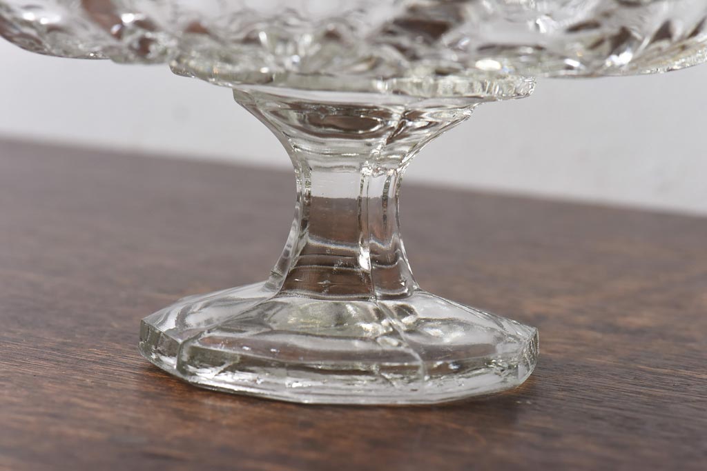 アンティーク雑貨 チェコスロバキア製 ボヘミアクリスタル ぽってりとした厚みがあるガラスコンポート(プレスガラス)