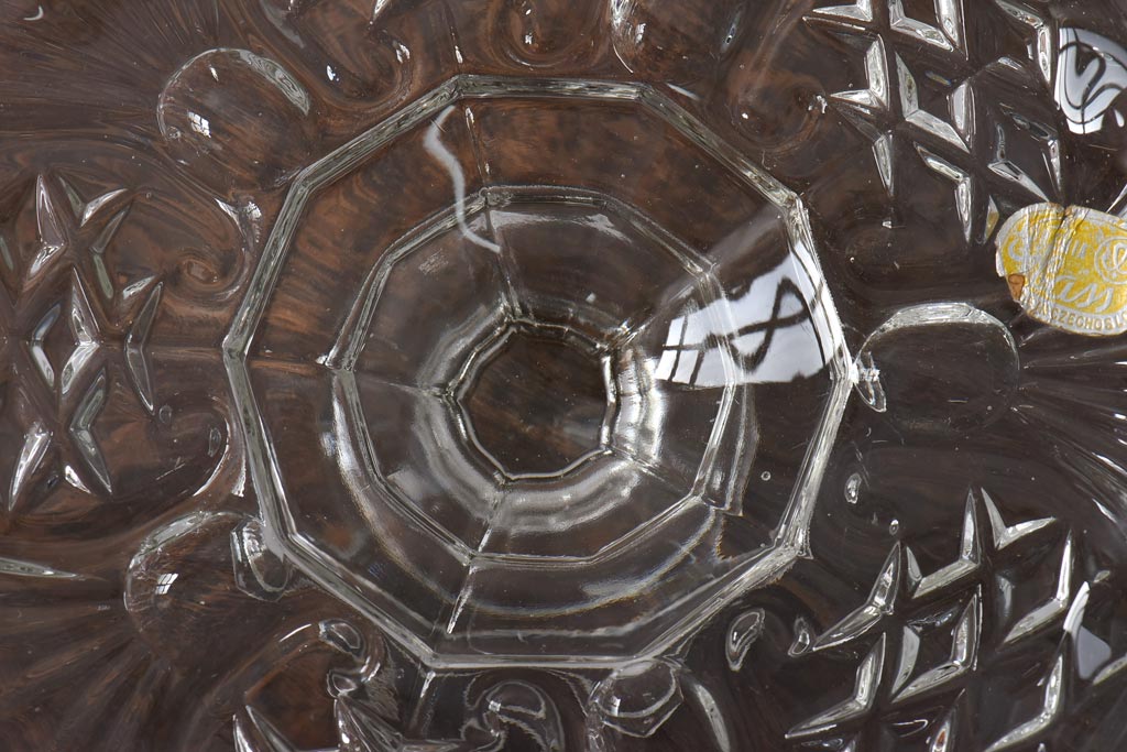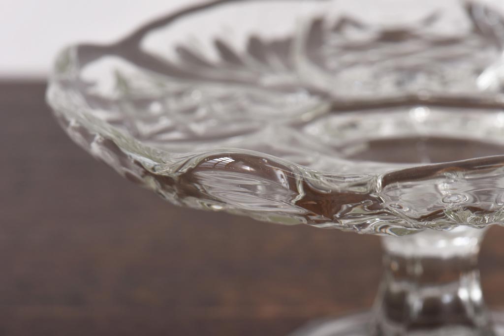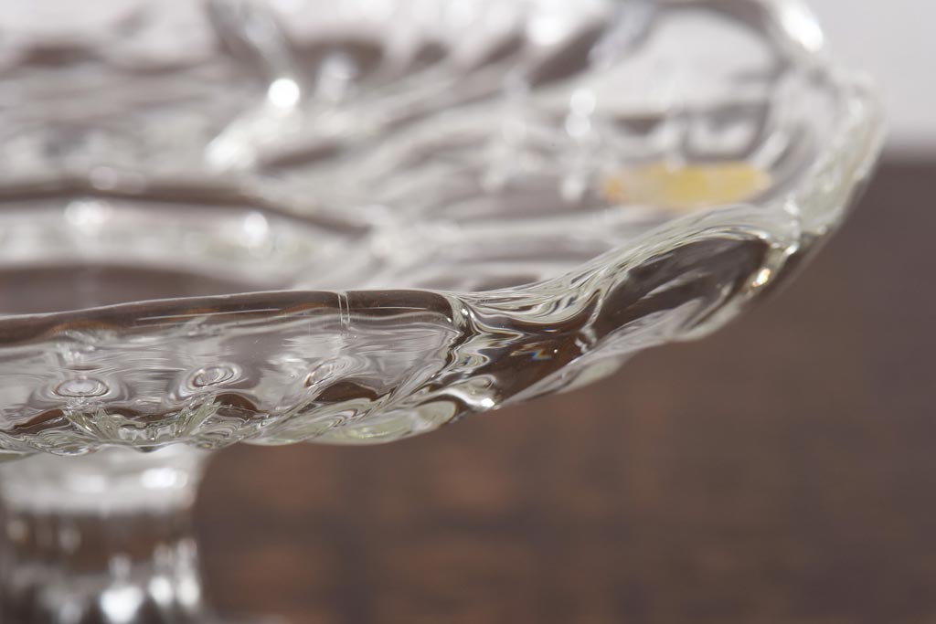 ラフジュ工房> 骨董・美術品> 骨董-ガラス食器 > アンティーク雑貨 チェコスロバキア製 ボヘミアクリスタル ぽってりとした厚みがあるガラスコンポート(プレスガラス)