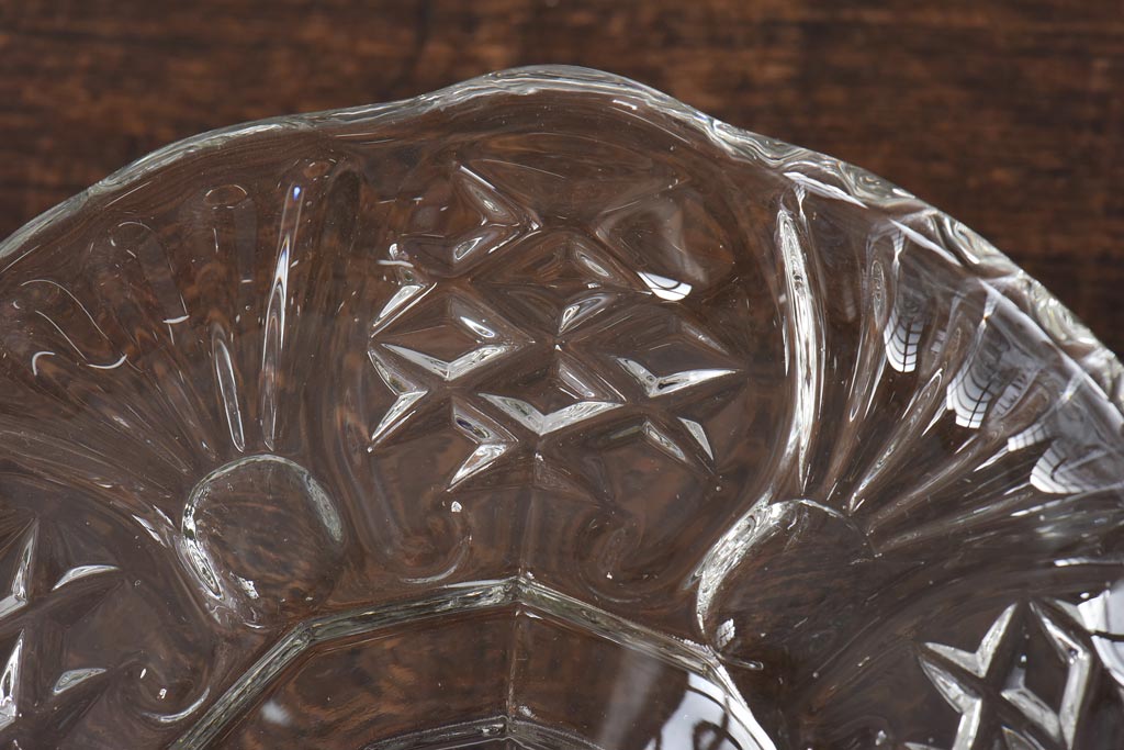 ラフジュ工房> 洋食器・キッチン用品 > アンティーク雑貨 チェコスロバキア製 ボヘミアクリスタル ぽってりとした厚みがあるガラスコンポート(プレスガラス)