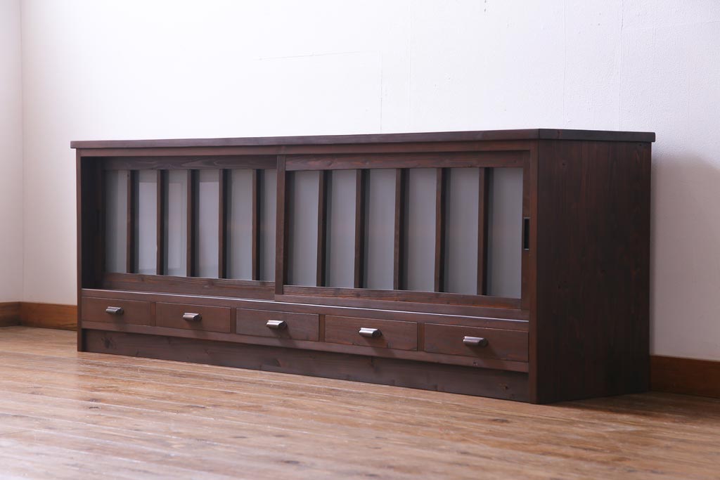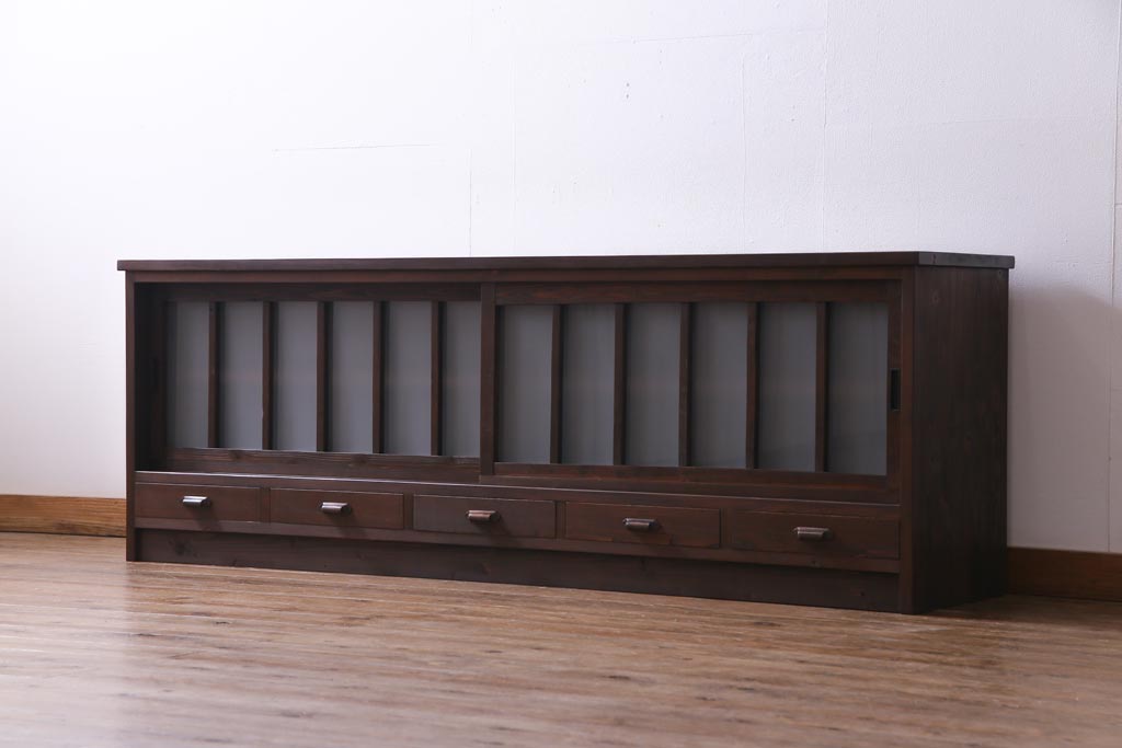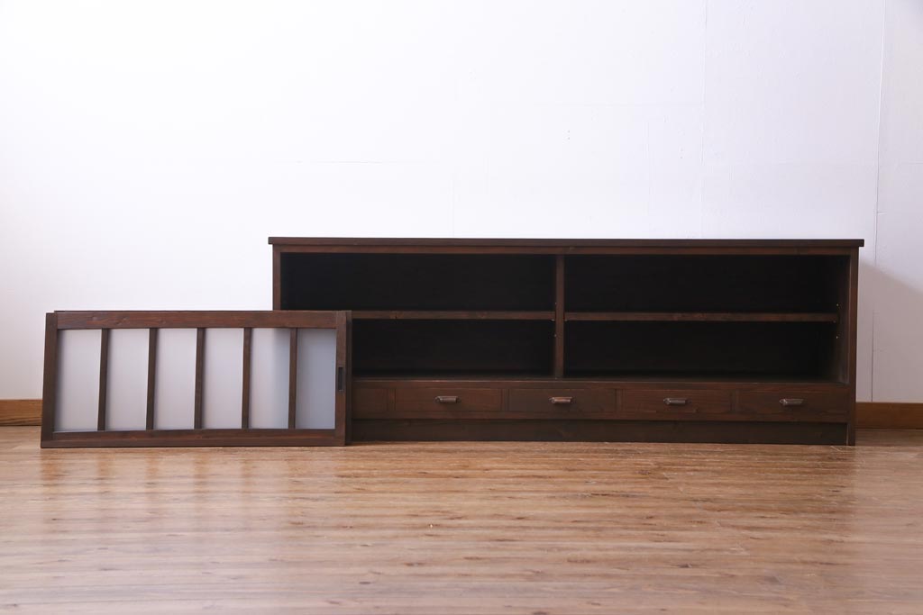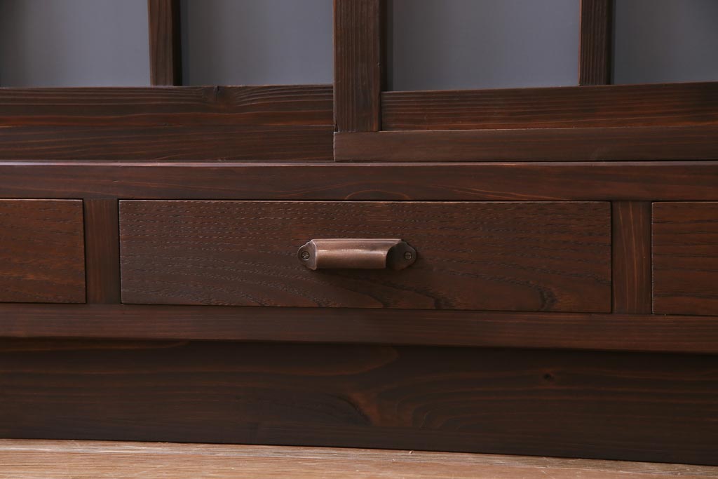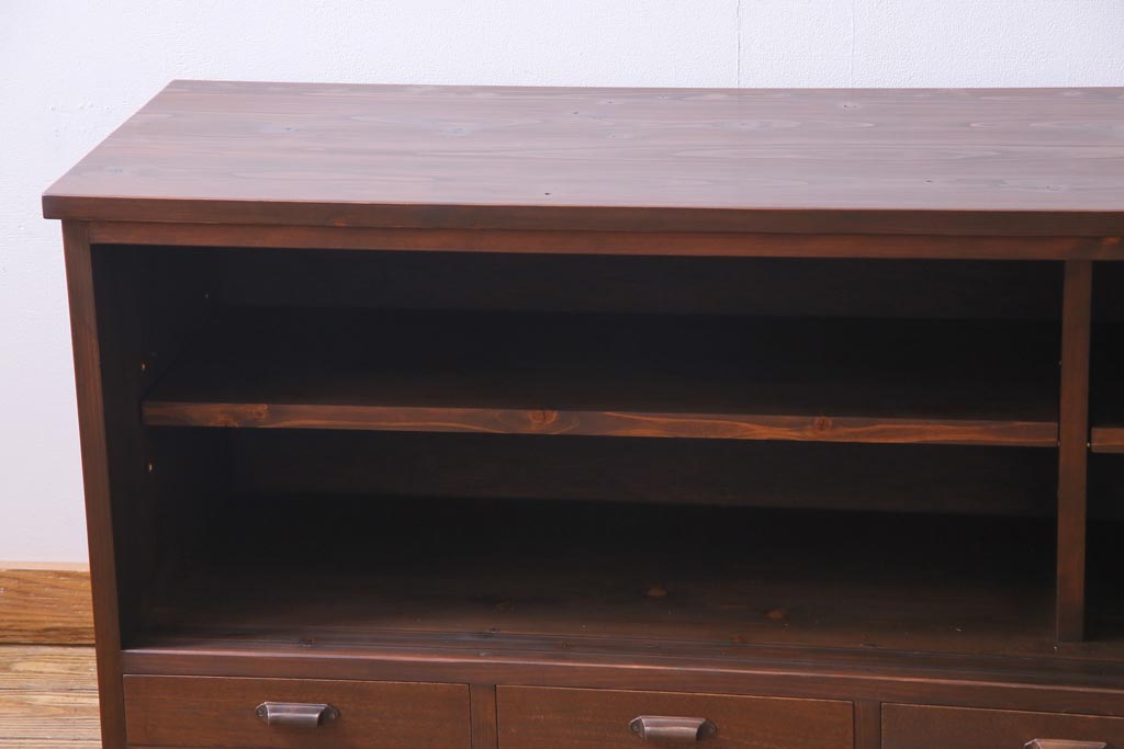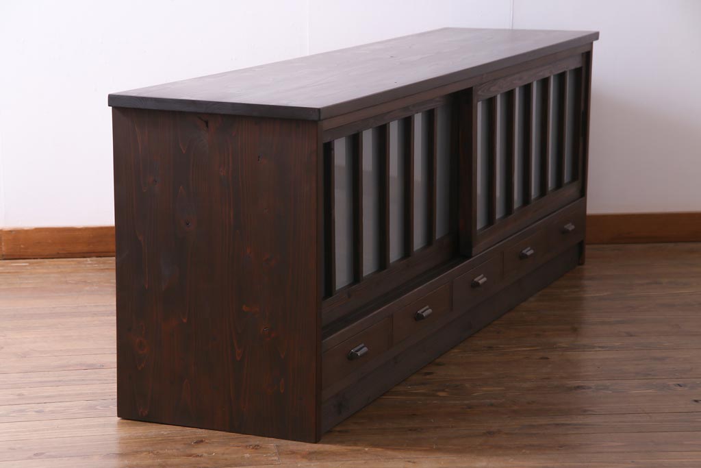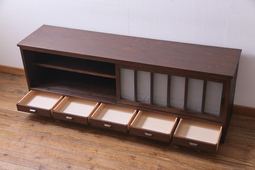 ラフジュ工房オリジナル 引き出し付きのデザインが素敵な古建具リメイクのテレビボード(ローボード)です。
