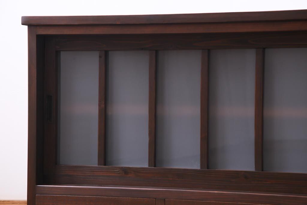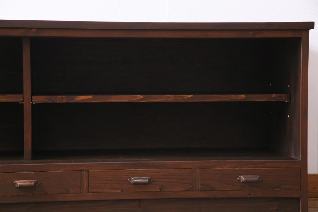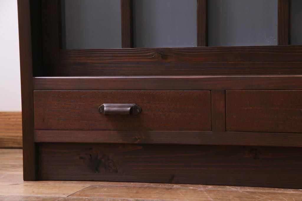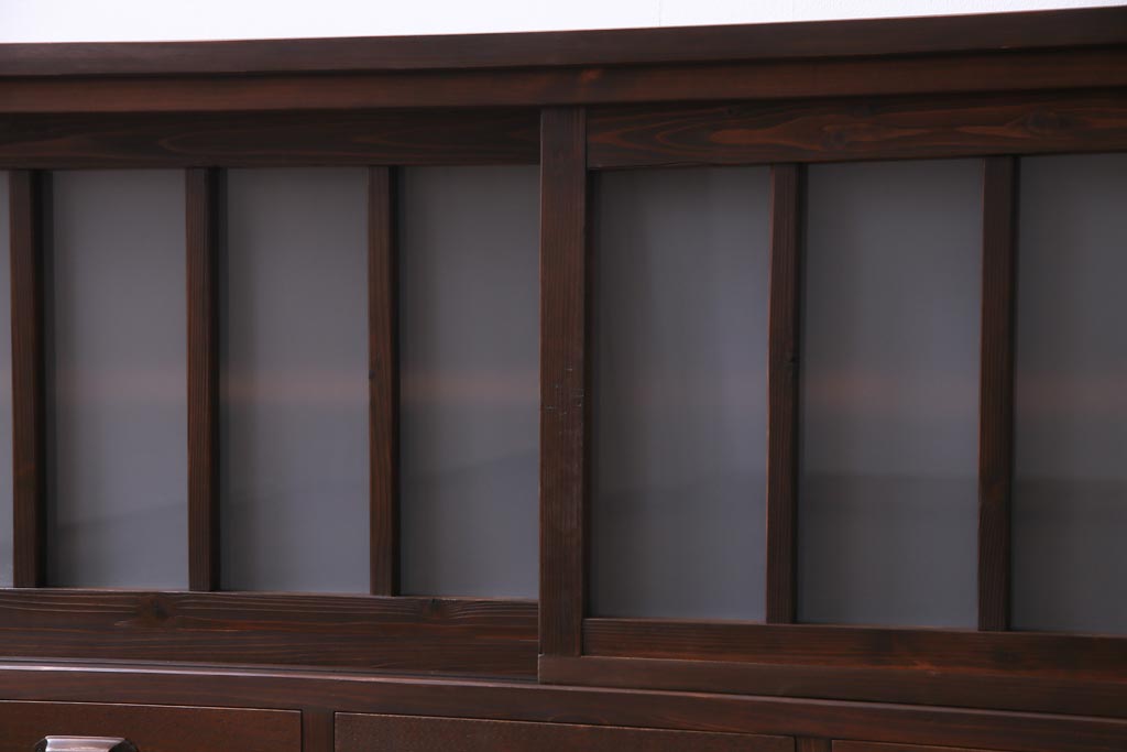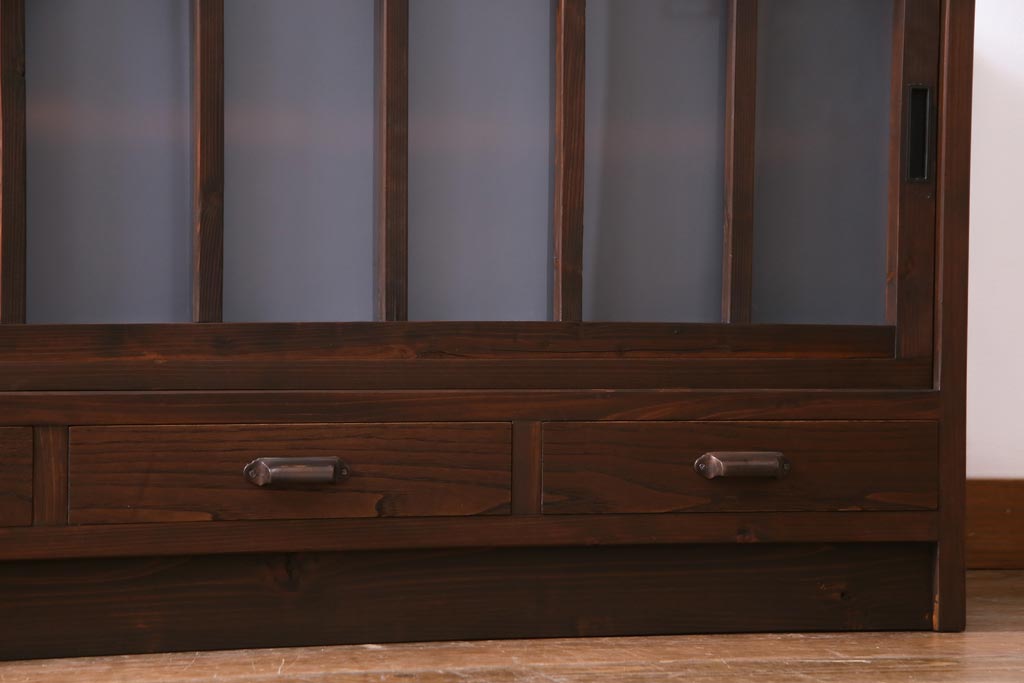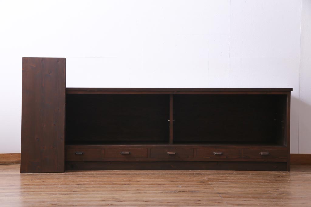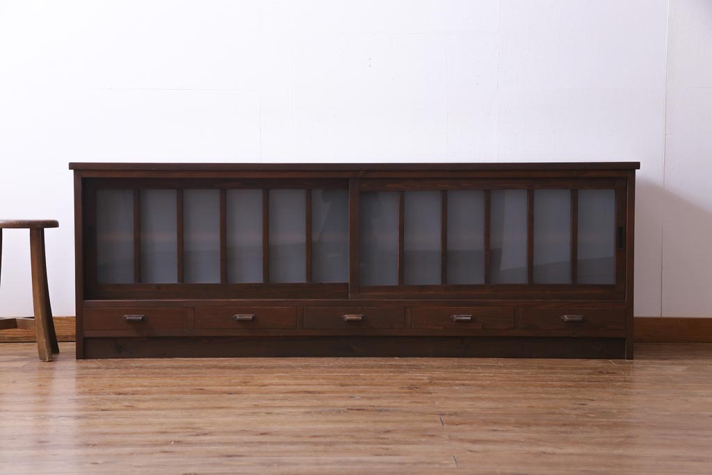 ラフジュ工房オリジナル 引き出し付きのデザインが素敵な古建具リメイクのテレビボード(ローボード)です。