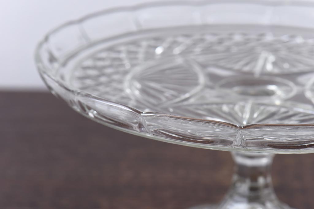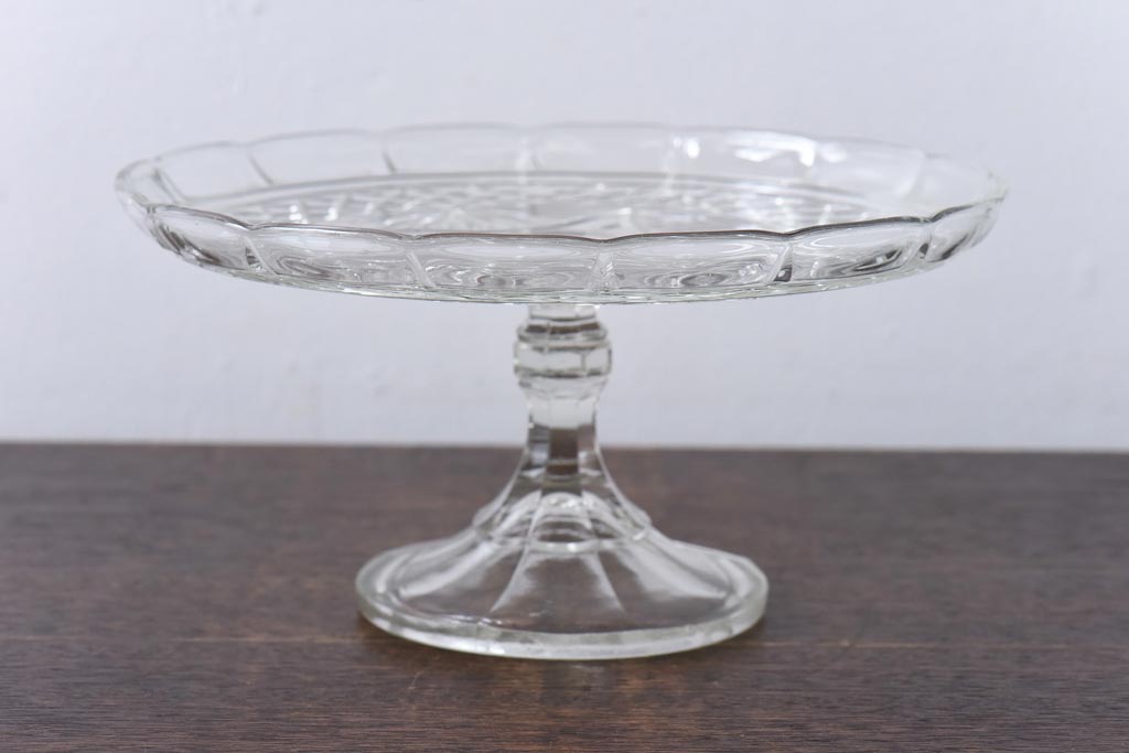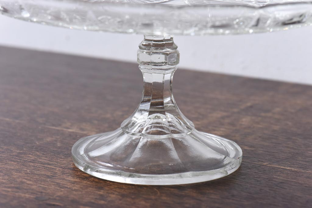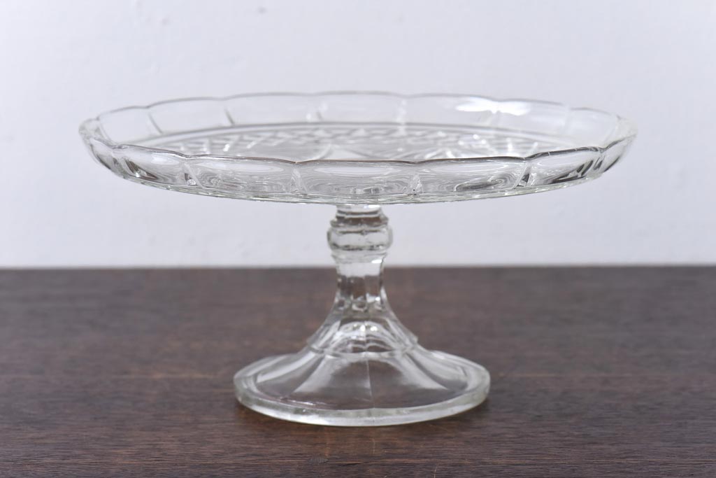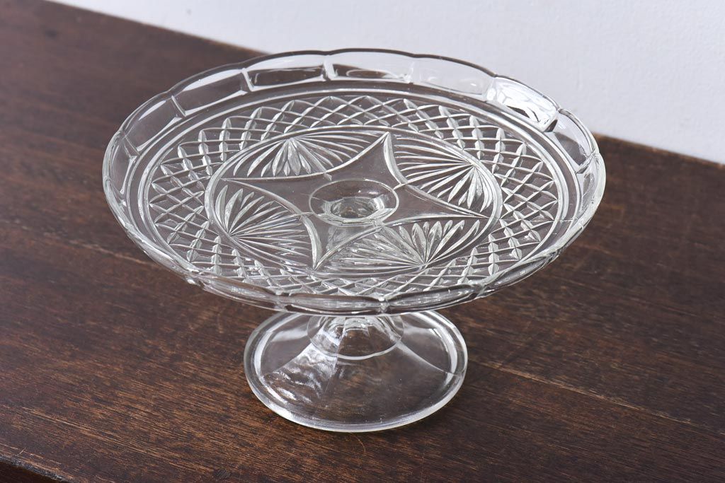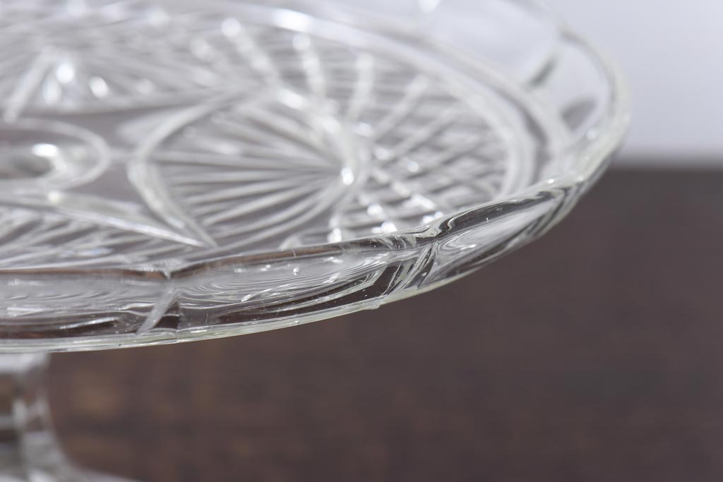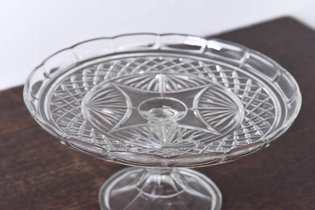 アンティーク雑貨 イギリスビンテージ カットガラスのような模様が素敵なガラスコンポート(ケーキスタンド、プレスガラス)