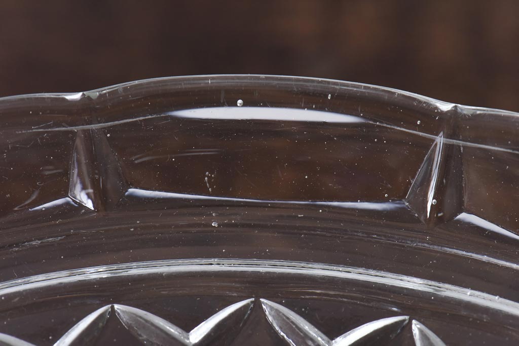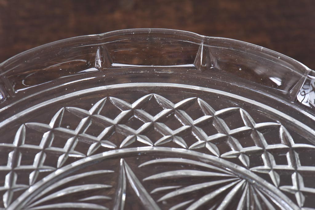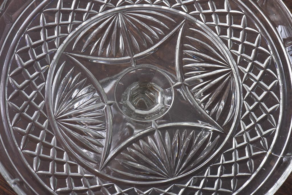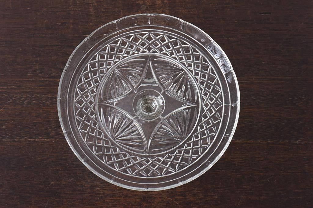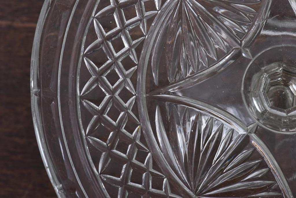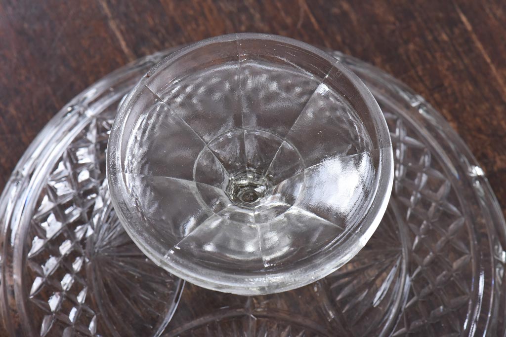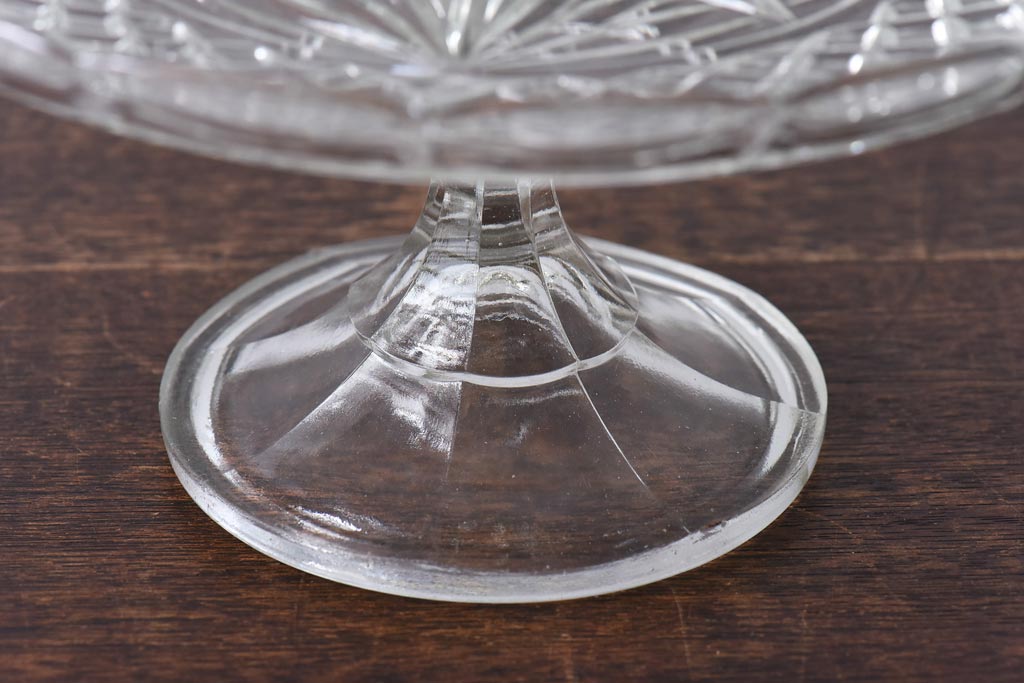 ラフジュ工房> 骨董・美術品> 骨董-ガラス食器 > アンティーク雑貨 イギリスビンテージ カットガラスのような模様が素敵なガラスコンポート(ケーキスタンド、プレスガラス)