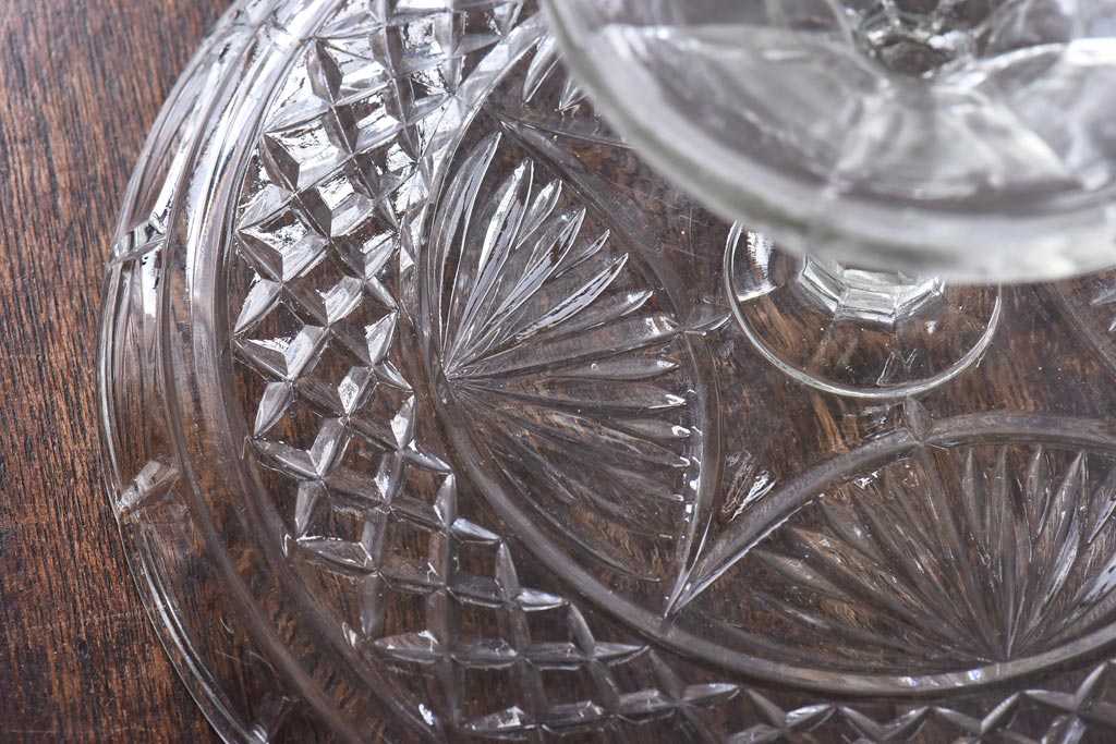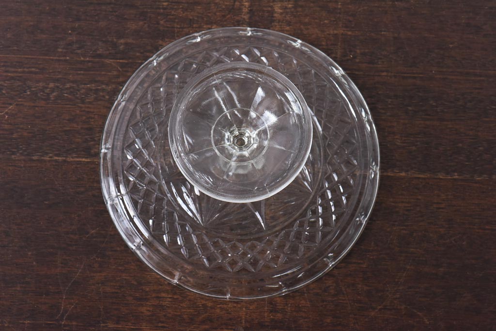 ラフジュ工房> 洋食器・キッチン用品 > アンティーク雑貨 イギリスビンテージ カットガラスのような模様が素敵なガラスコンポート(ケーキスタンド、プレスガラス)