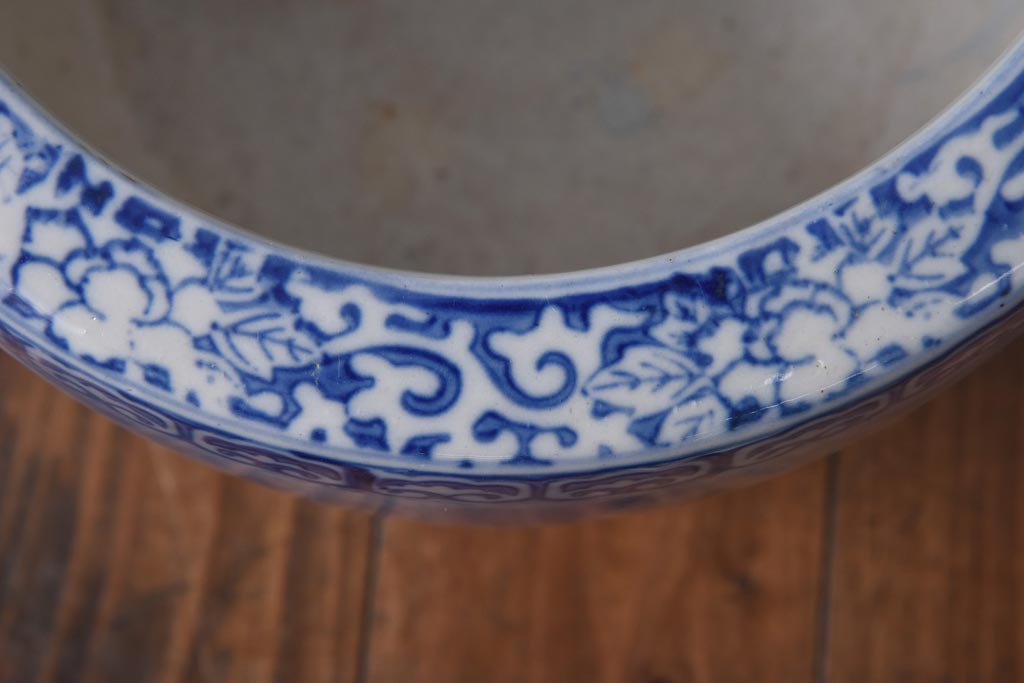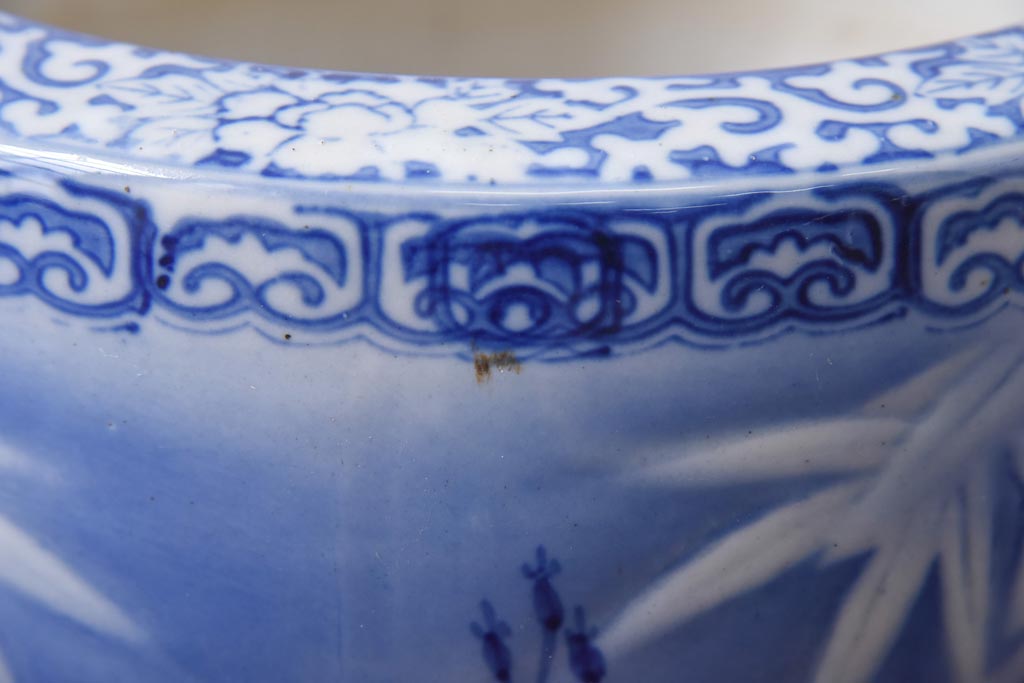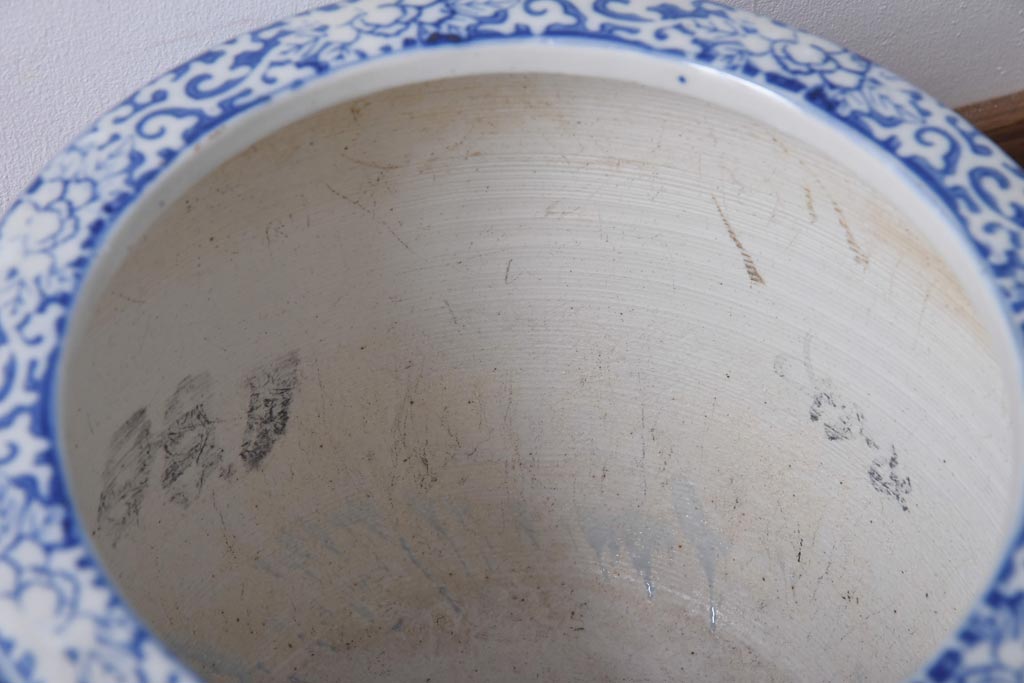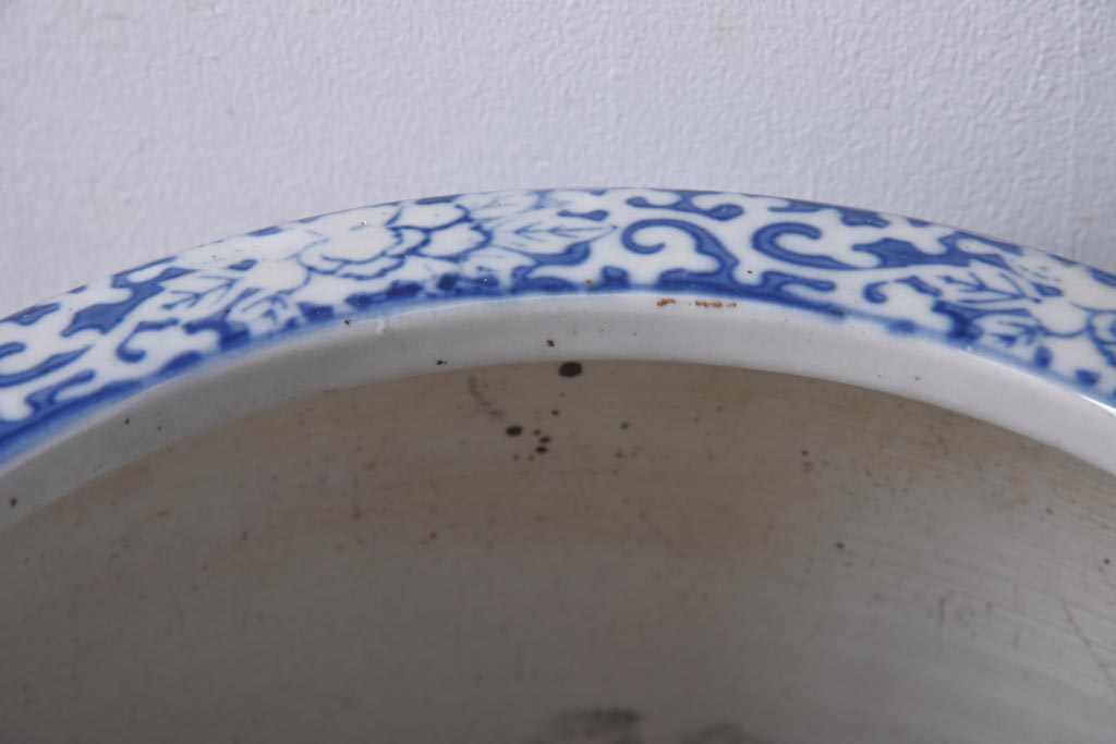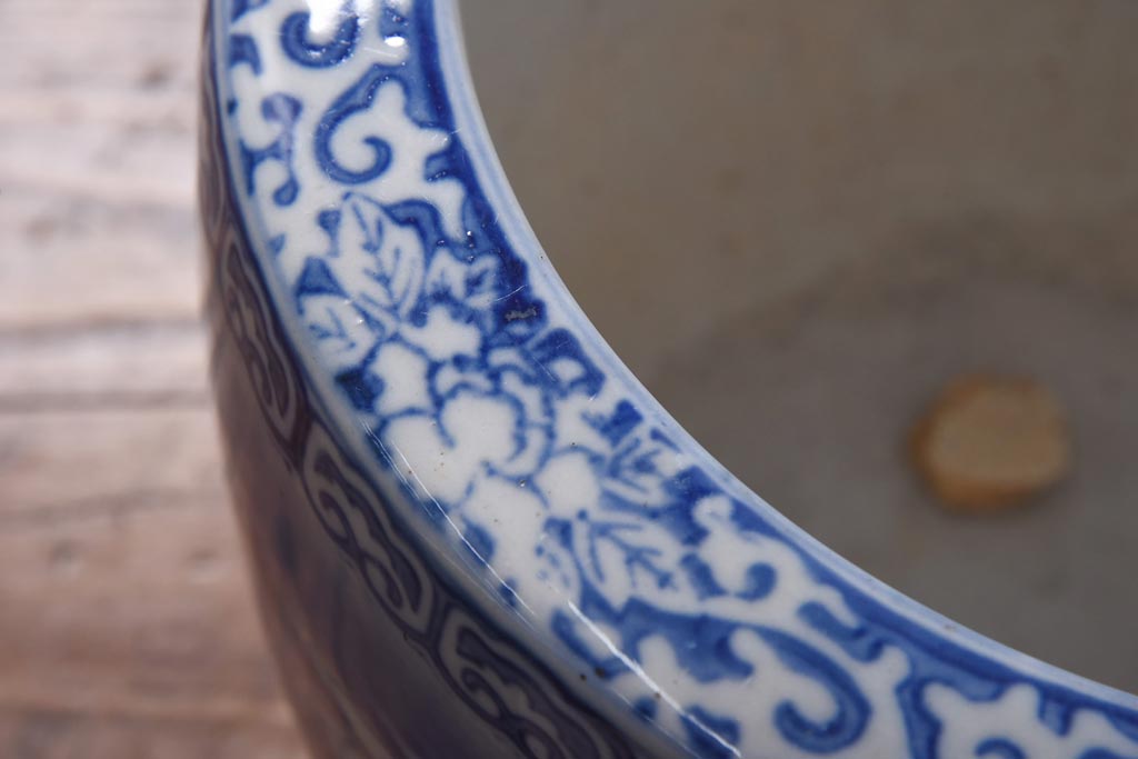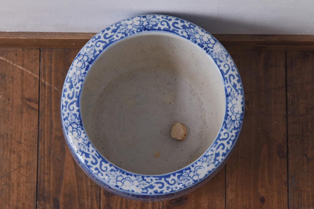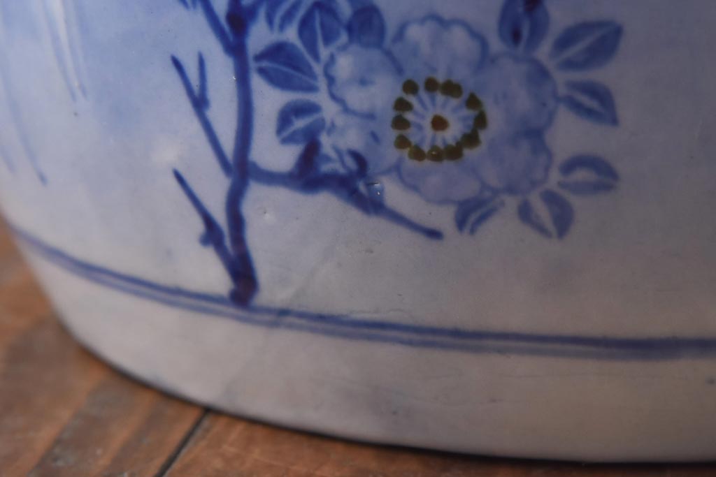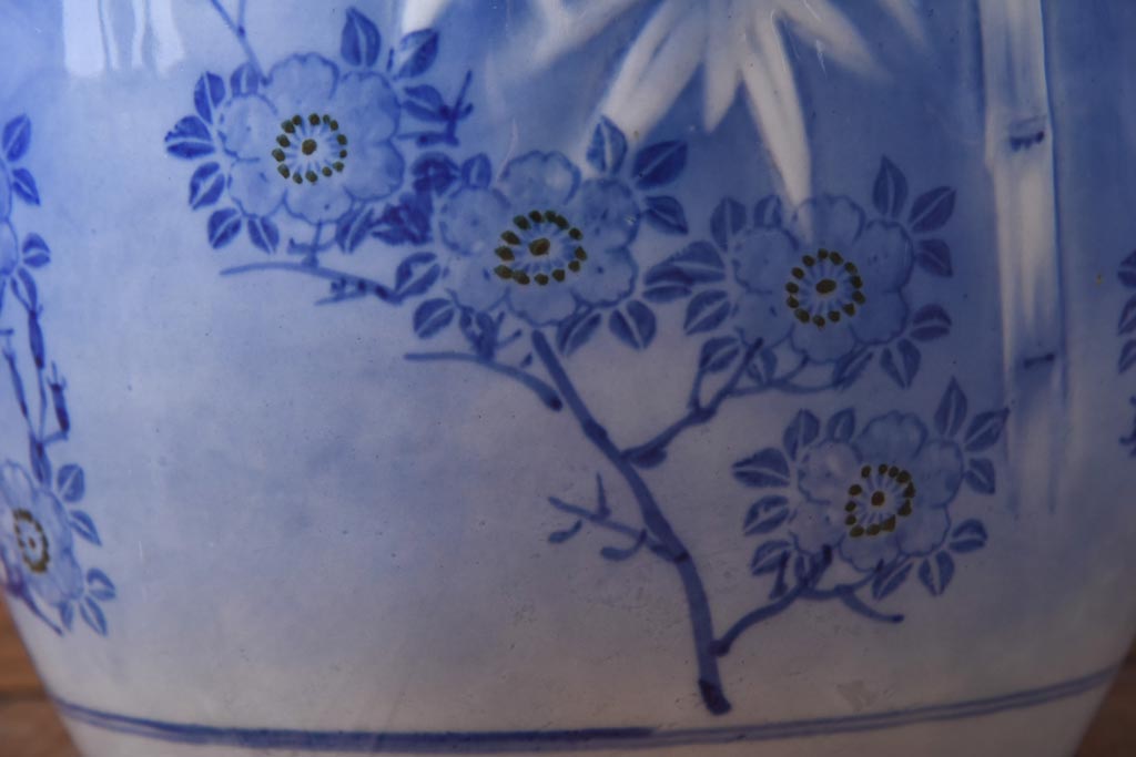 火鉢> 瀬戸火鉢 > アンティーク雑貨 古民具 竹・花の図 浮き出た竹の意匠が目を引く瀬戸火鉢(手あぶり)