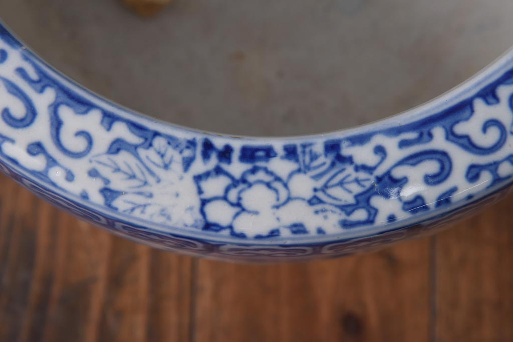 アンティーク雑貨 古民具 竹・花の図 浮き出た竹の意匠が目を引く瀬戸火鉢(手あぶり)