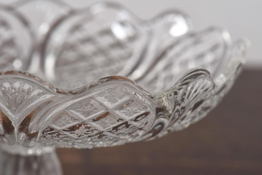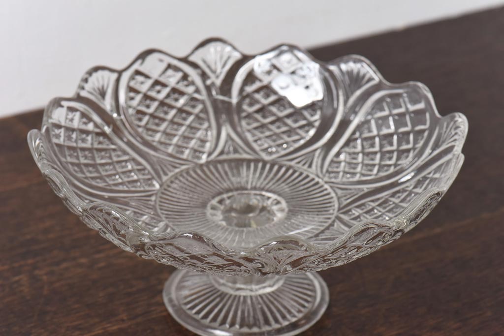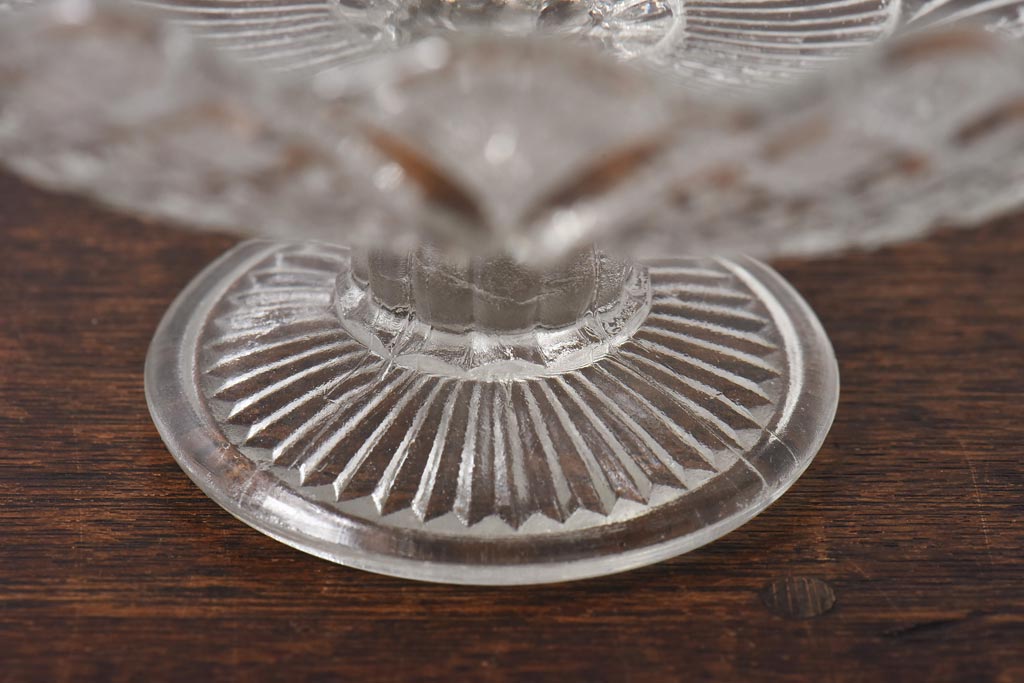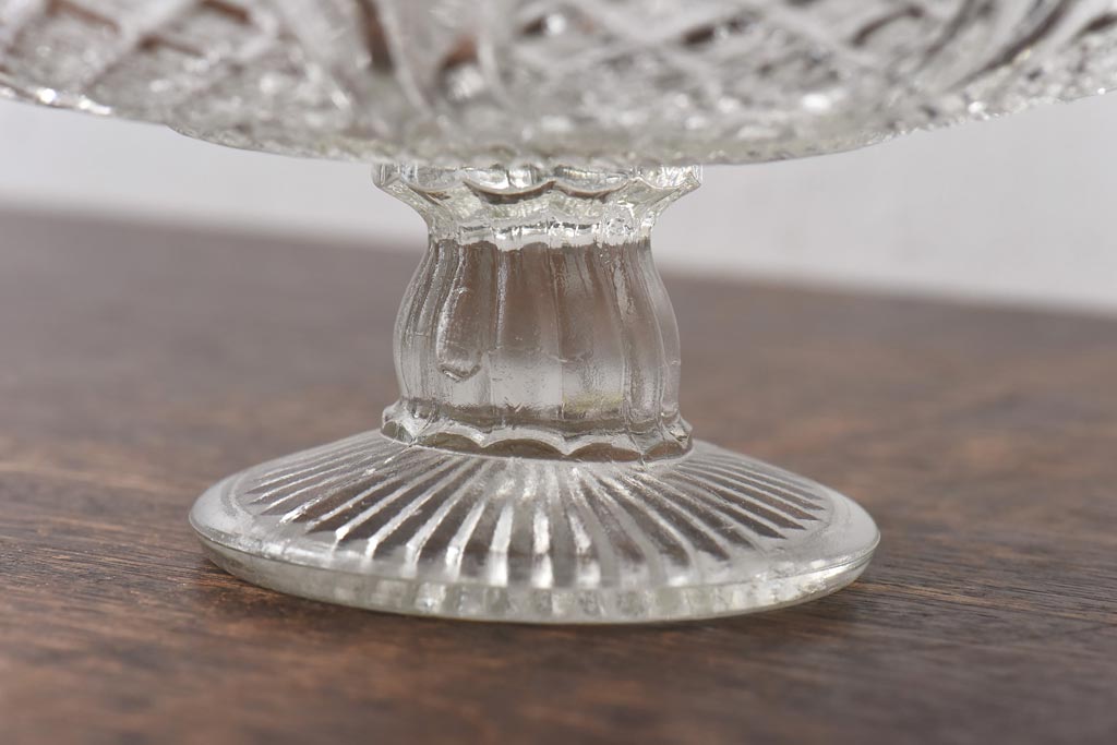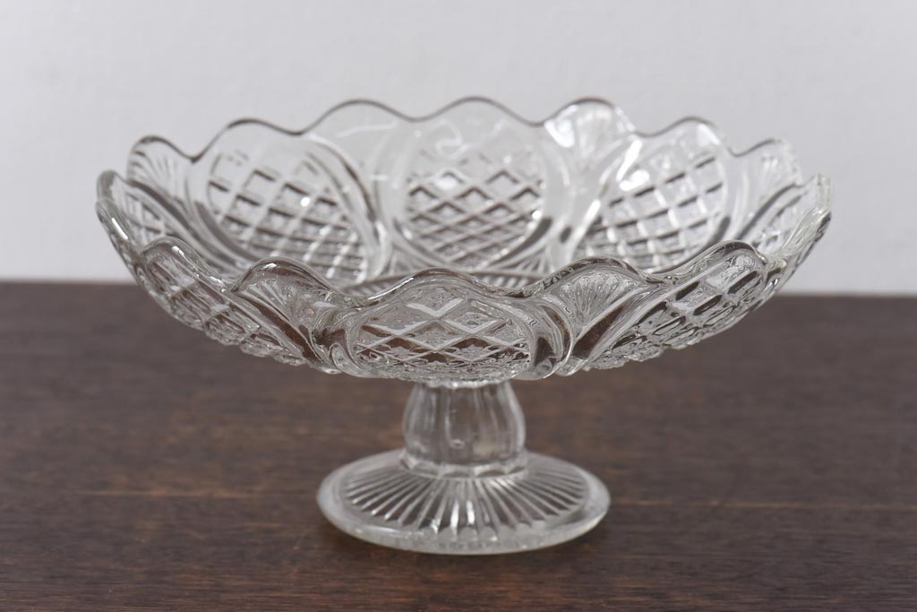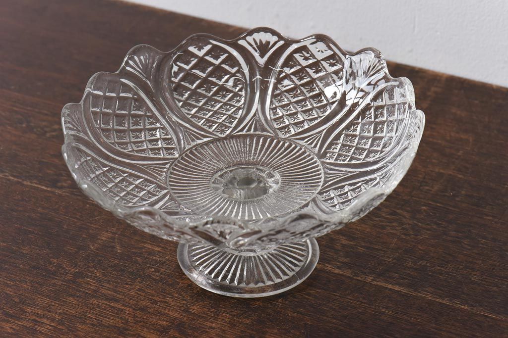 アンティーク雑貨 イギリスビンテージ 花のようなシルエットが素敵なガラスコンポート(プレスガラス)