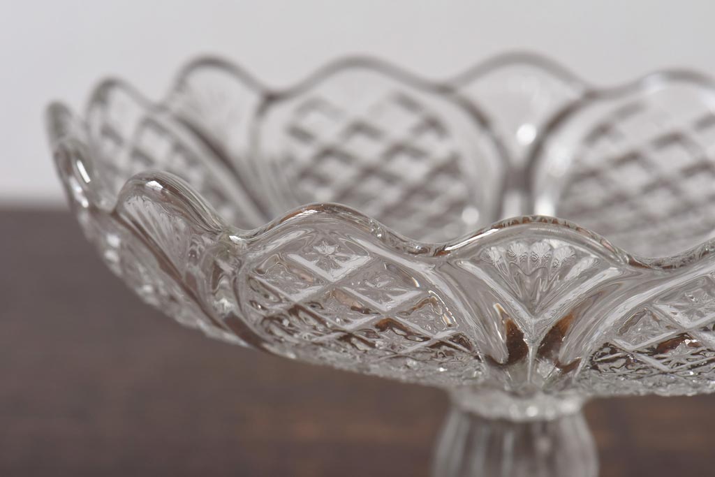 ラフジュ工房> 洋食器・キッチン用品 > アンティーク雑貨 イギリスビンテージ 花のようなシルエットが素敵なガラスコンポート(プレスガラス)