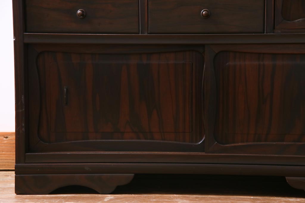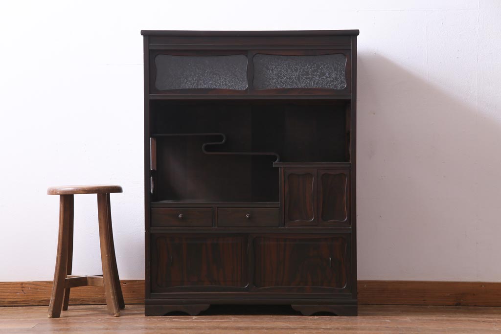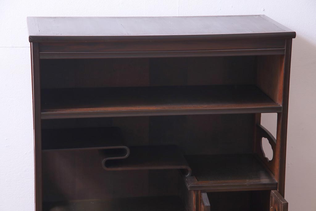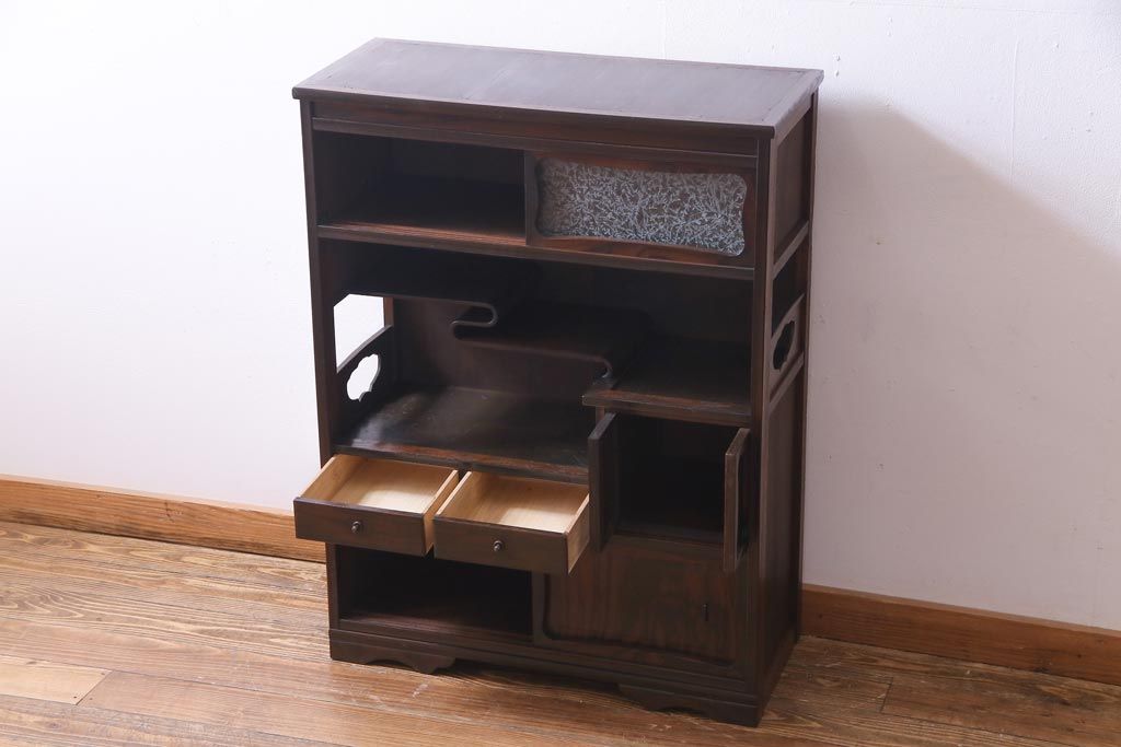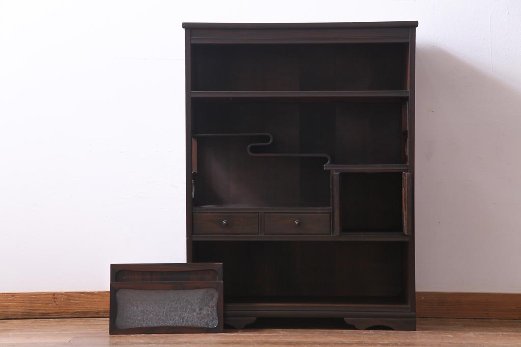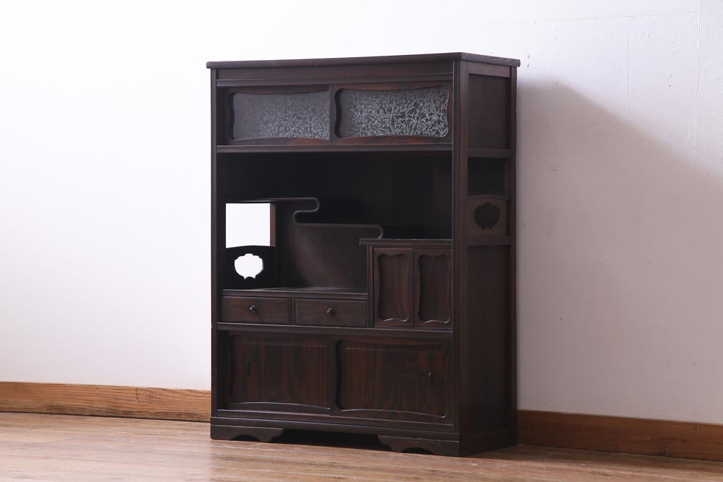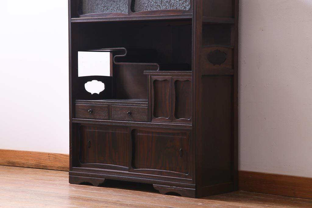アンティーク家具 和製アンティーク 縞黒檀・ケヤキ材 細部までこだわったつくりの茶棚(飾り棚)