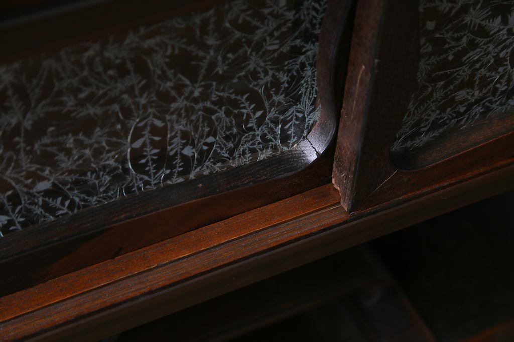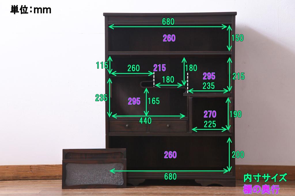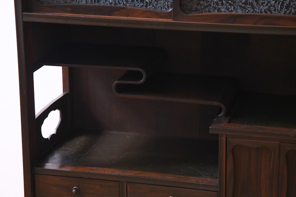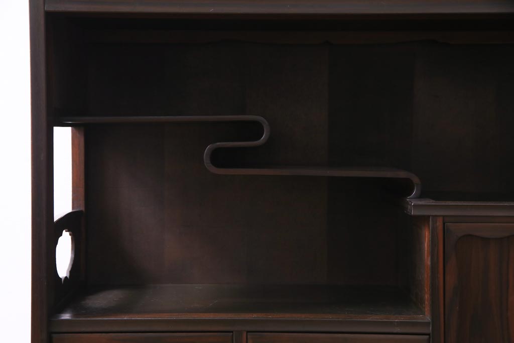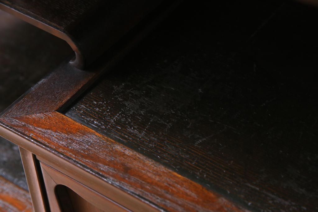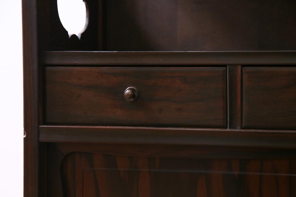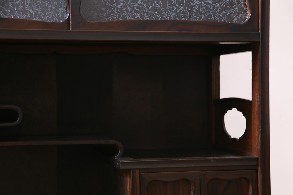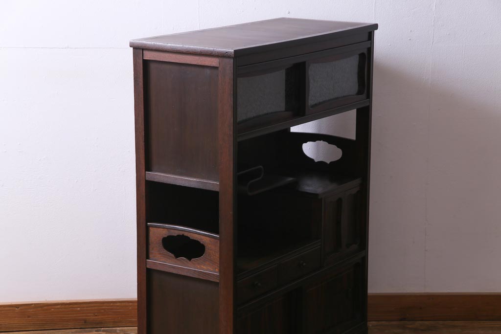 アンティーク家具 和製アンティーク 縞黒檀・ケヤキ材 細部までこだわったつくりの茶棚(飾り棚)