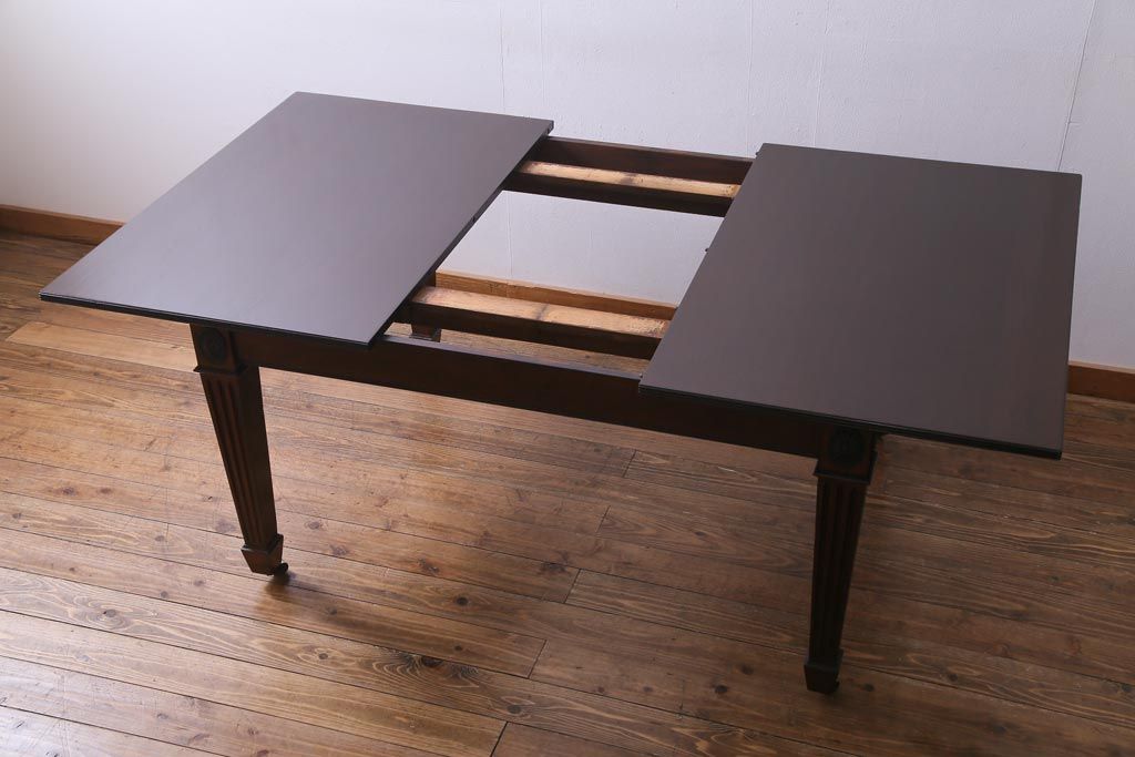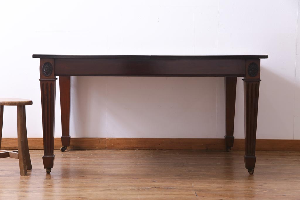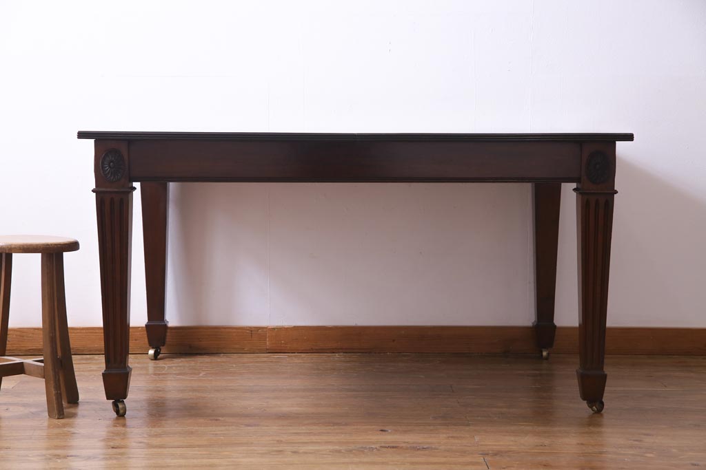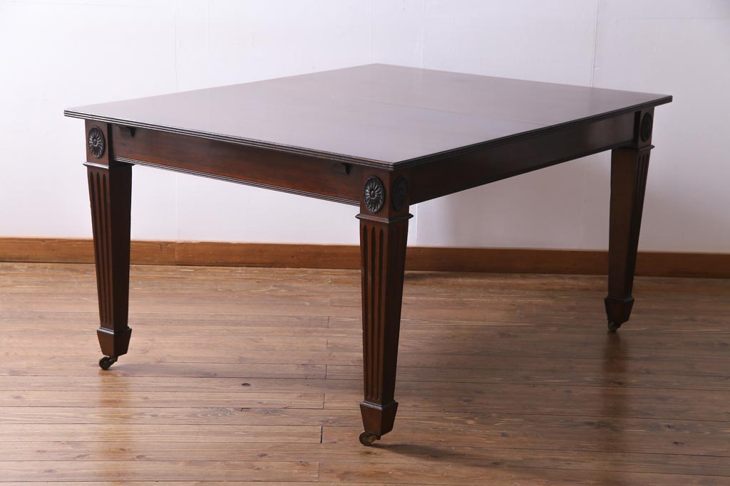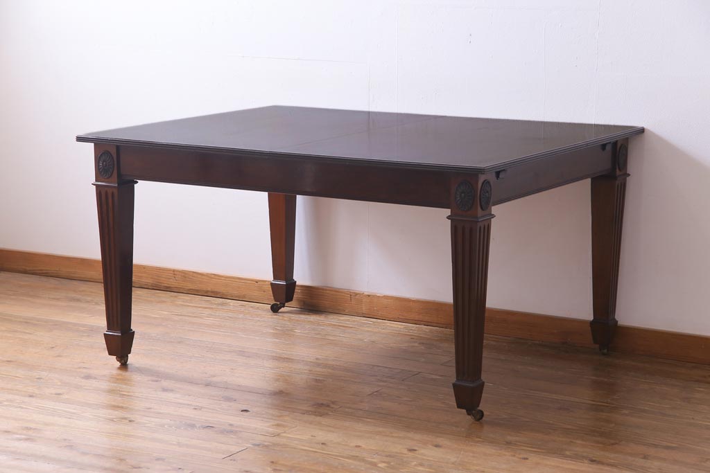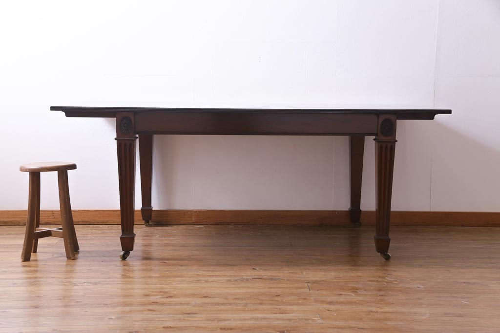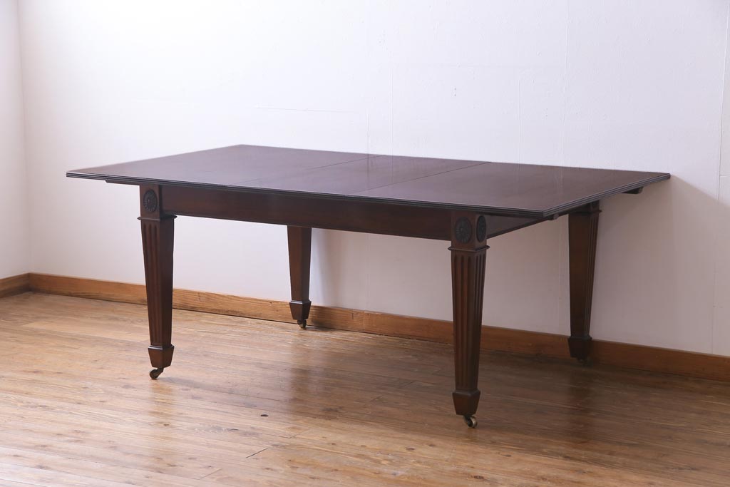 アンティーク家具 フランスアンティーク マホガニー無垢材 直線的な装飾のエクステンションテーブル(ダイニングテーブル)
