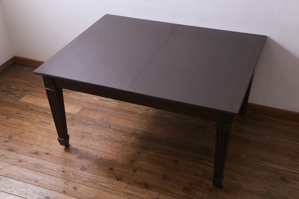 ラフジュ工房> テーブル> エクステンションテーブル > アンティーク家具 フランスアンティーク マホガニー無垢材 直線的な装飾のエクステンションテーブル(ダイニングテーブル)