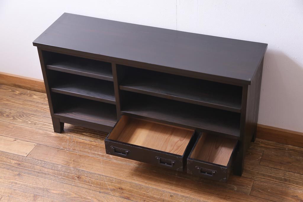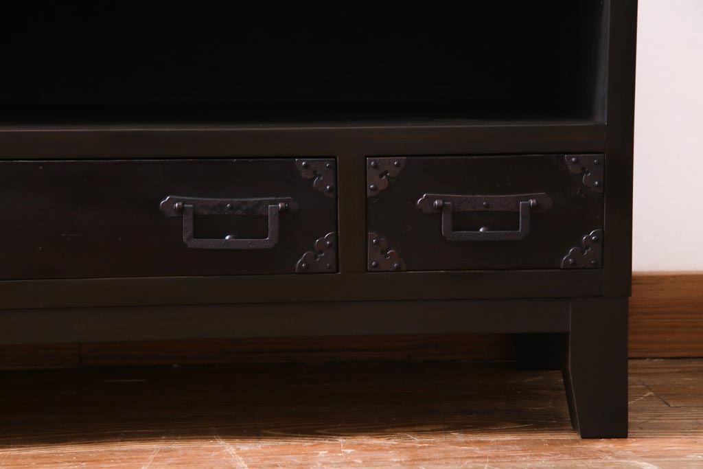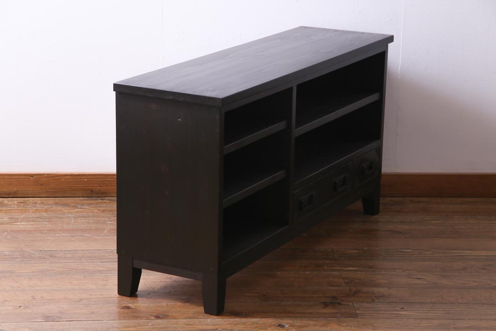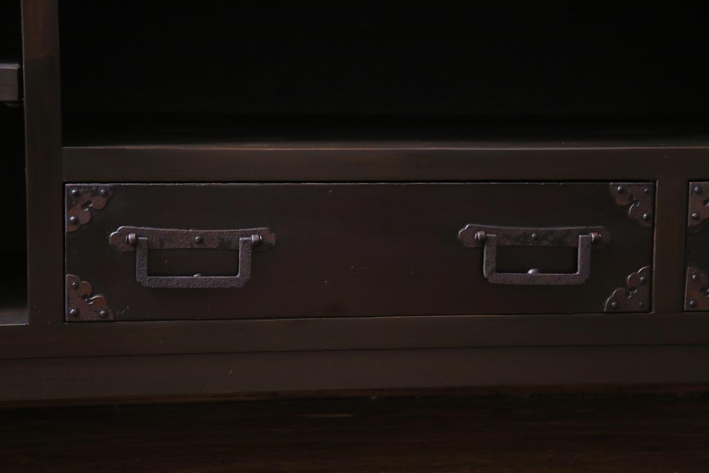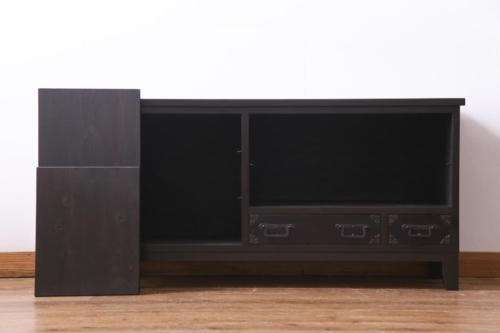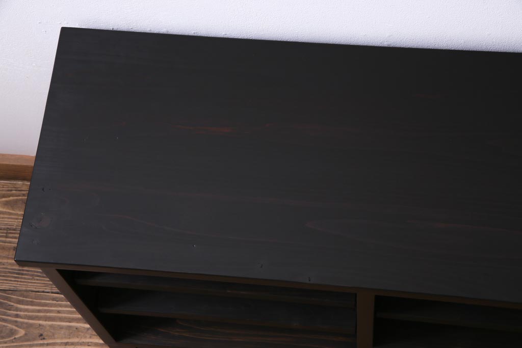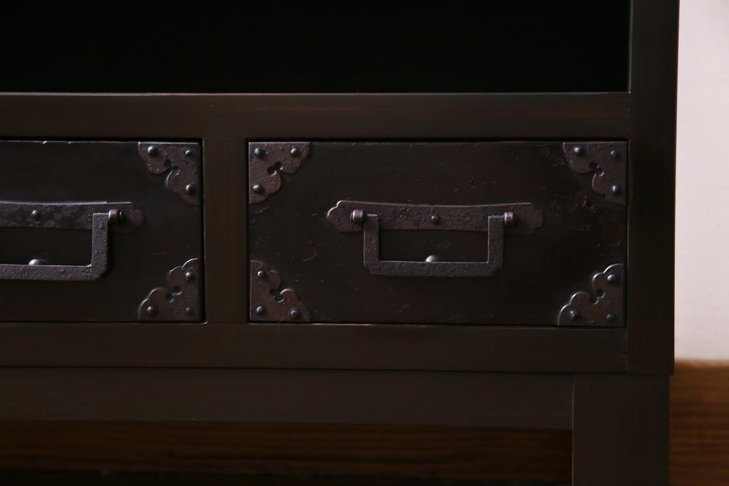 ラフジュ工房オリジナル 引き出しリメイク 黒漆塗り 格好の良い渋い趣のローボード(収納棚)
