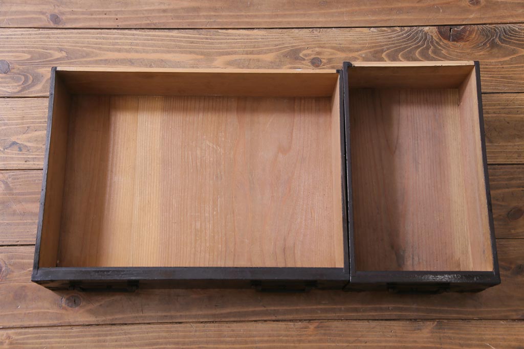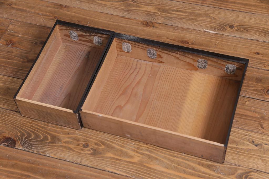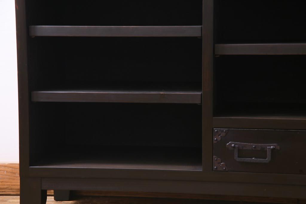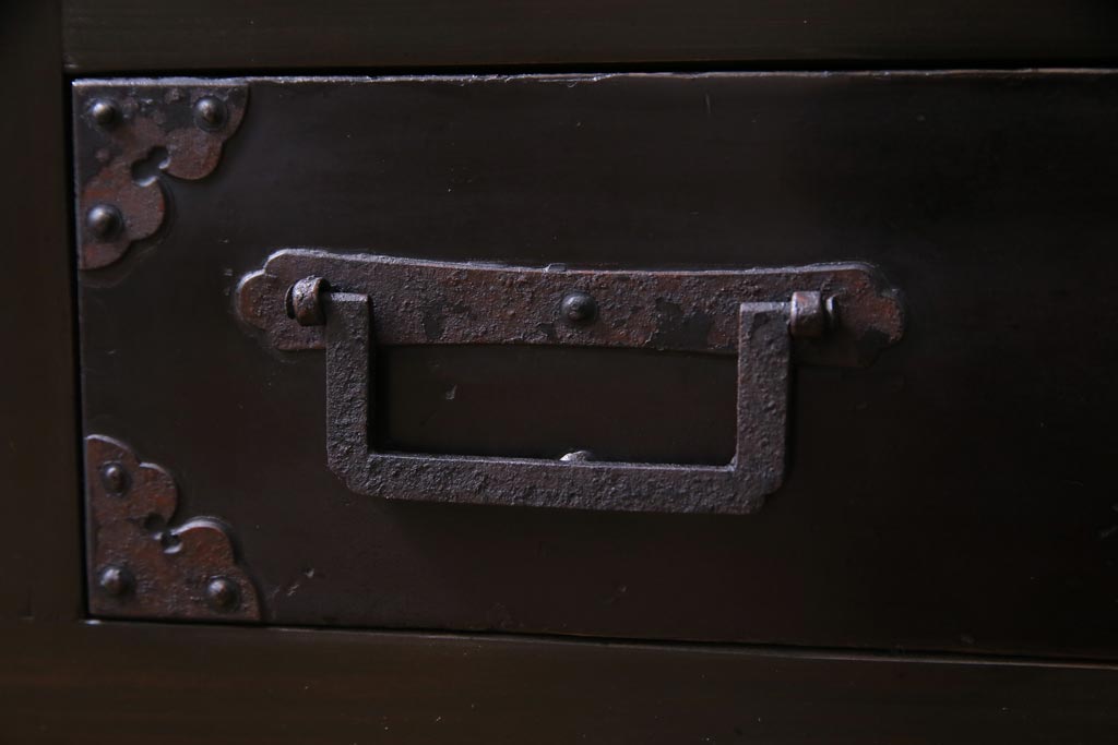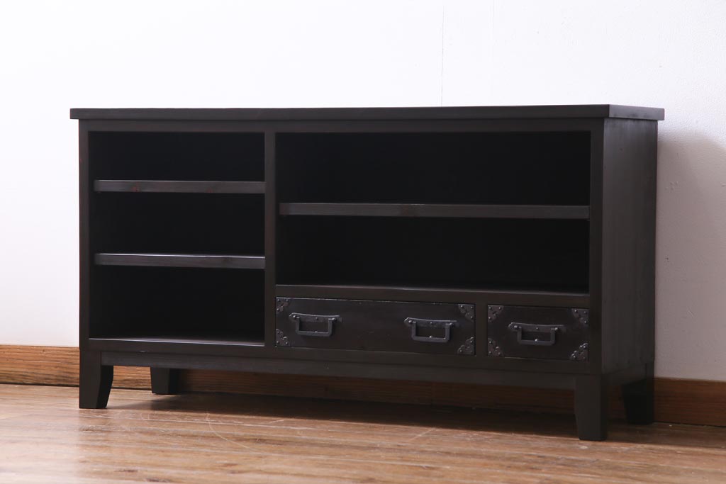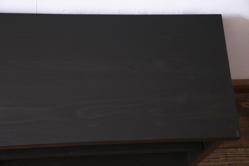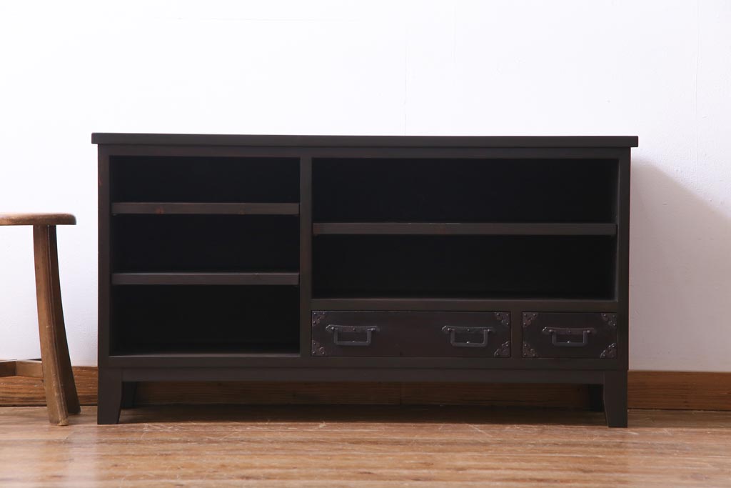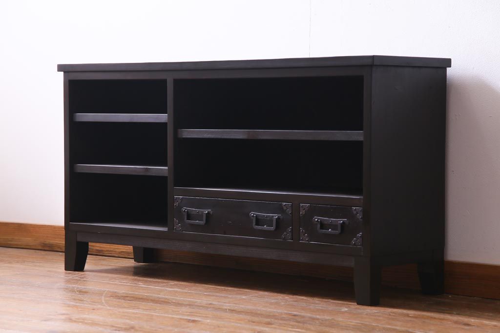 ラフジュ工房オリジナル 引き出しリメイク 黒漆塗り 格好の良い渋い趣のローボード(収納棚)