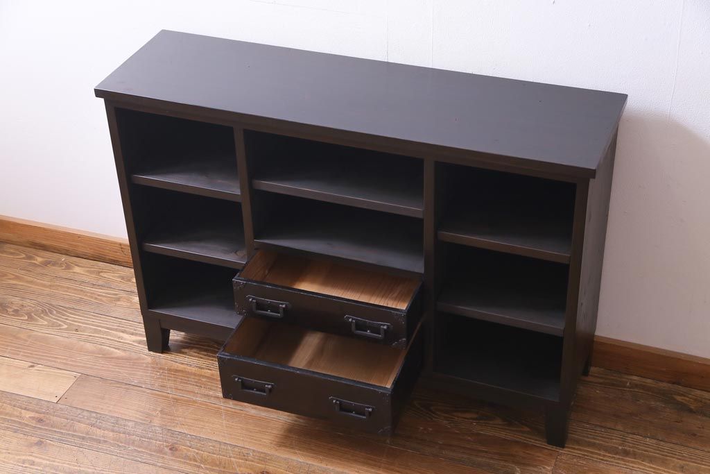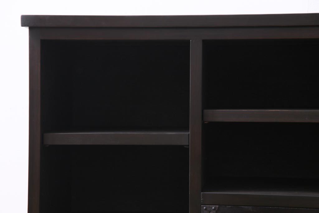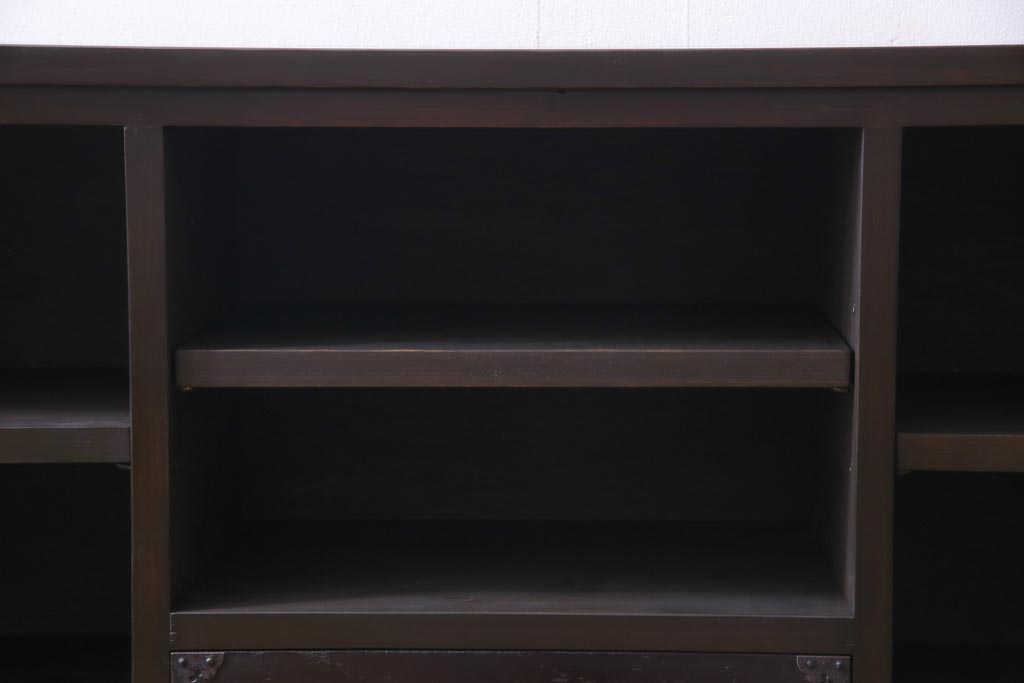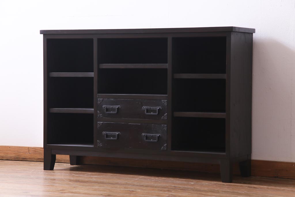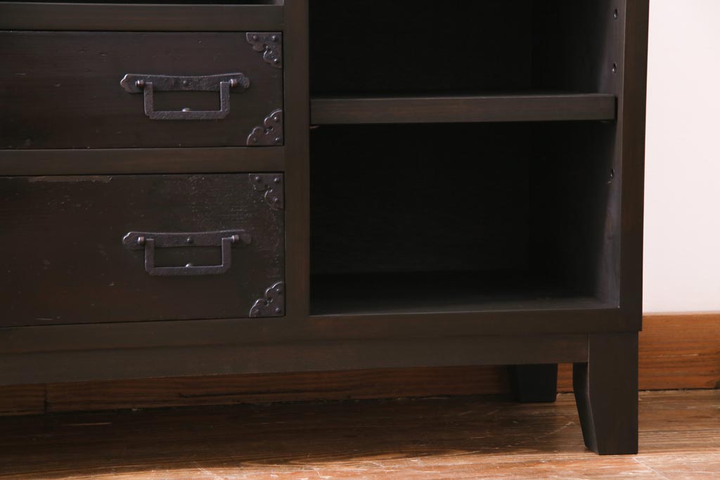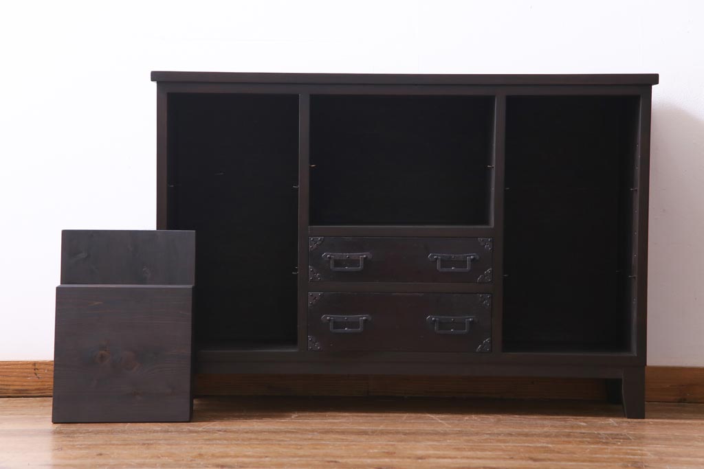 ラフジュ工房オリジナル 引き出しリメイク 黒漆と角手が渋さを演出するリビングボード(収納棚)です。