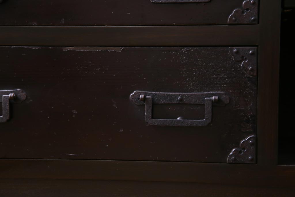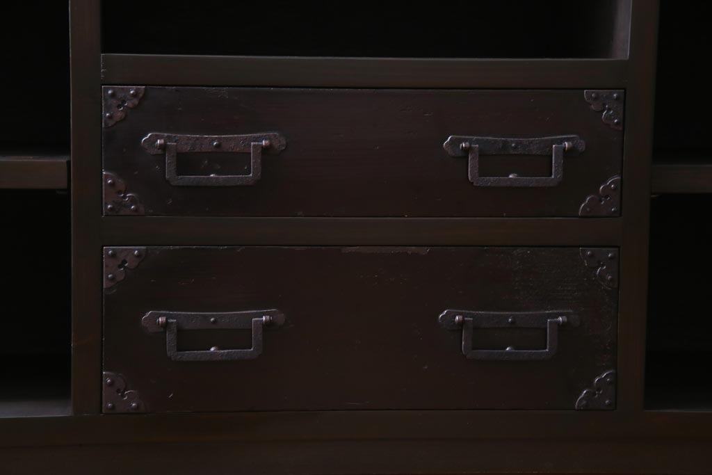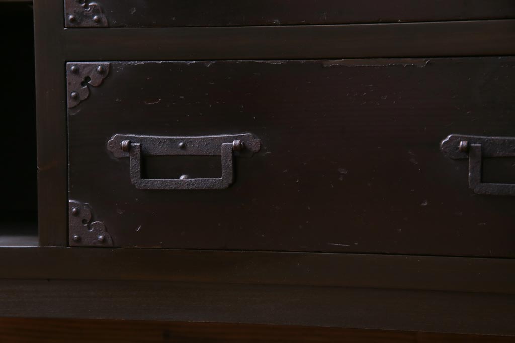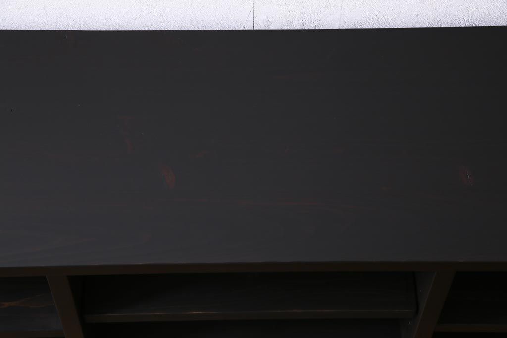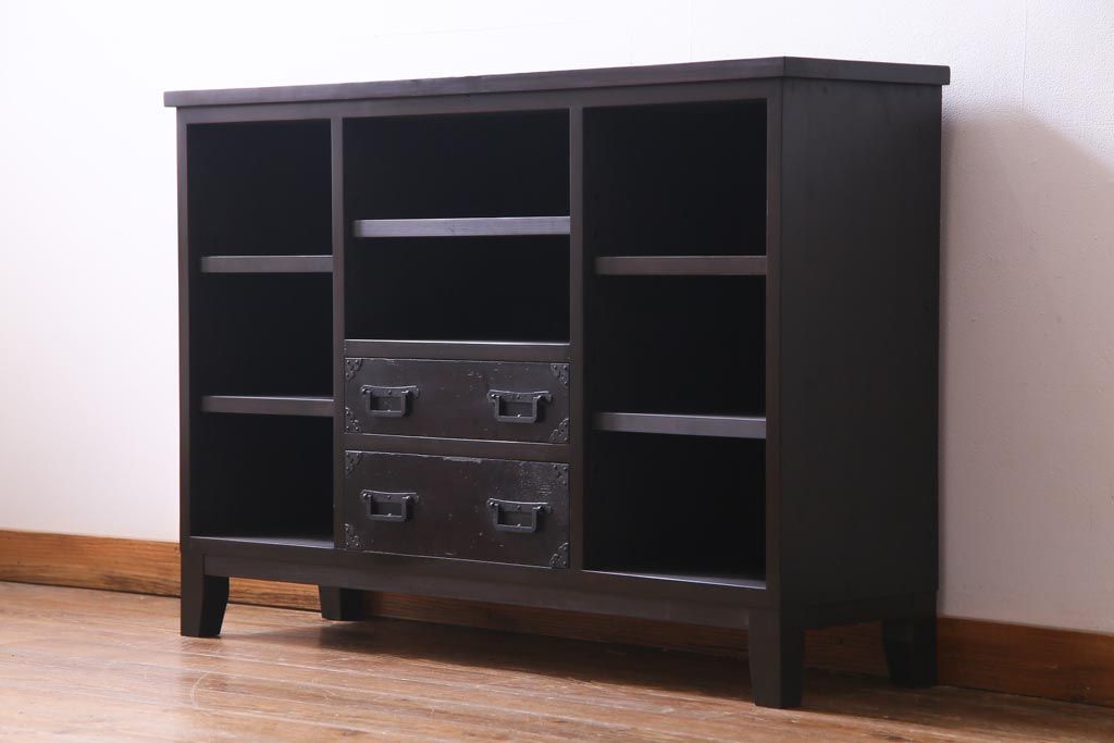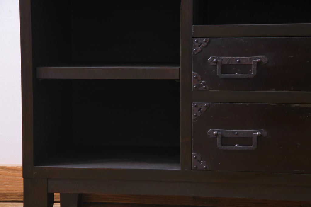 ラフジュ工房オリジナル 引き出しリメイク 黒漆と角手が渋さを演出するリビングボード(収納棚)です。