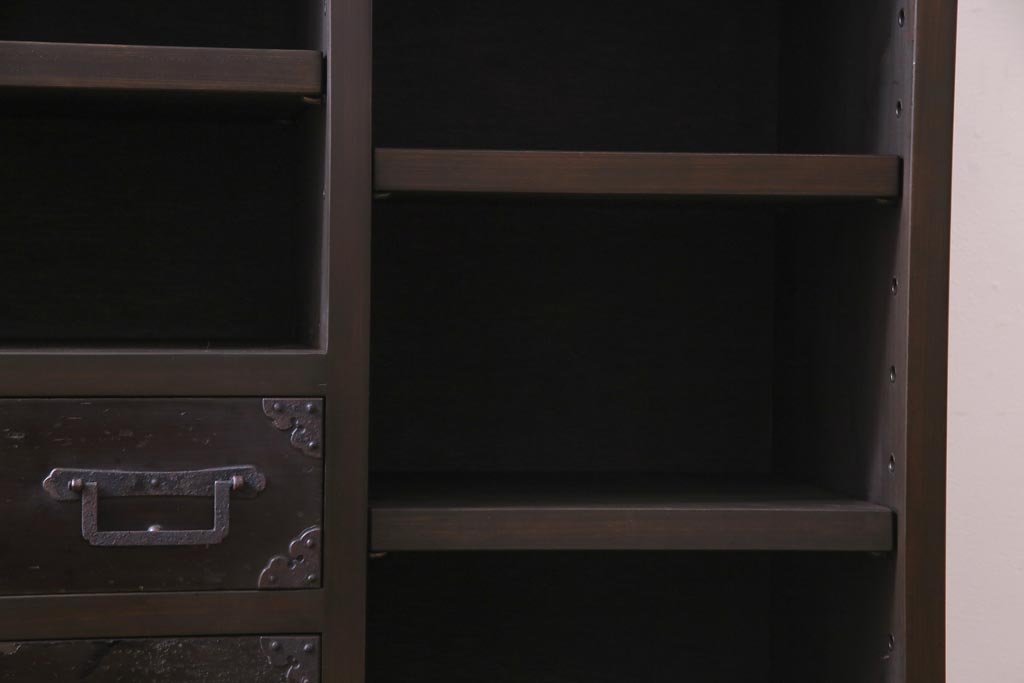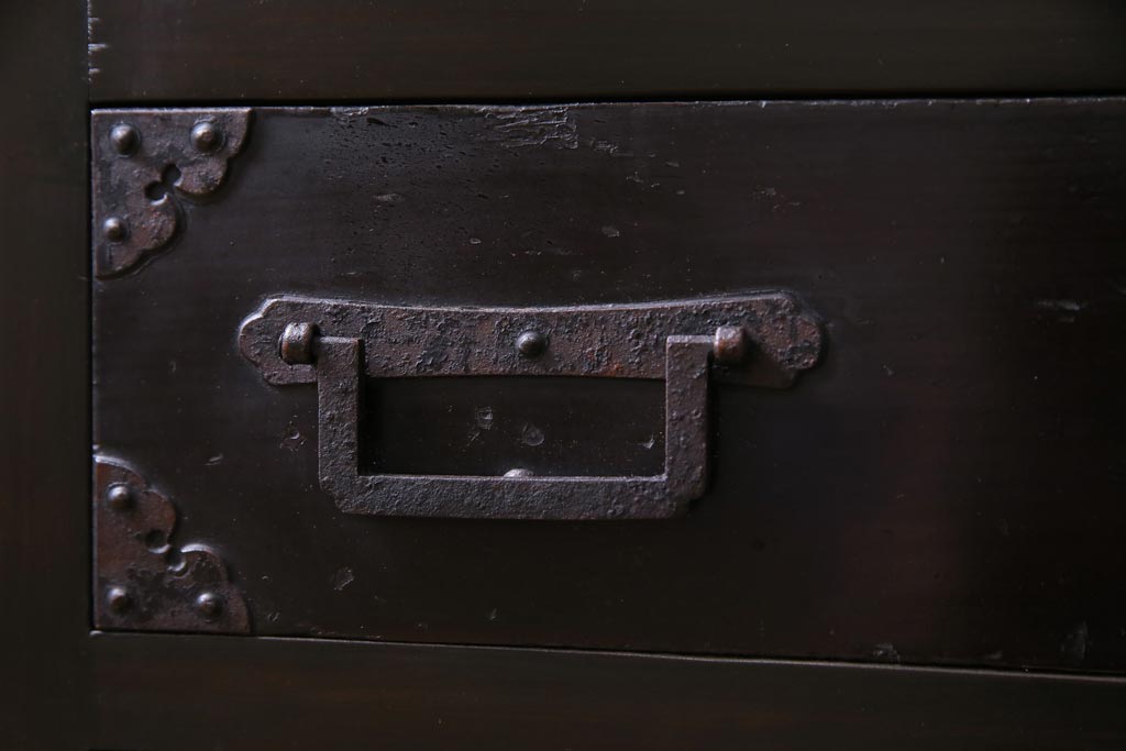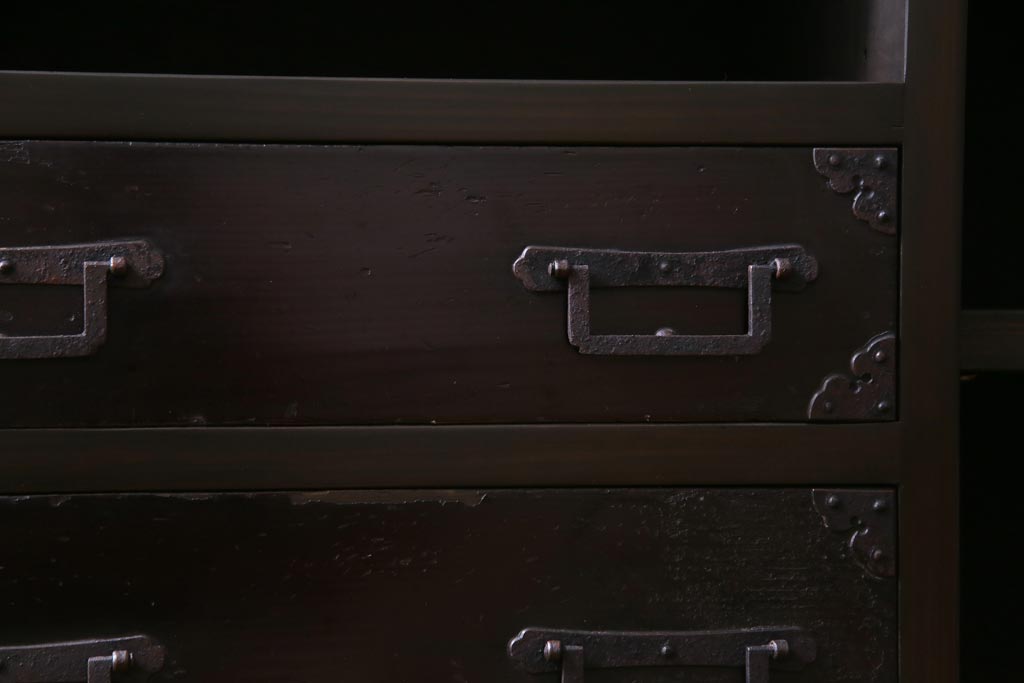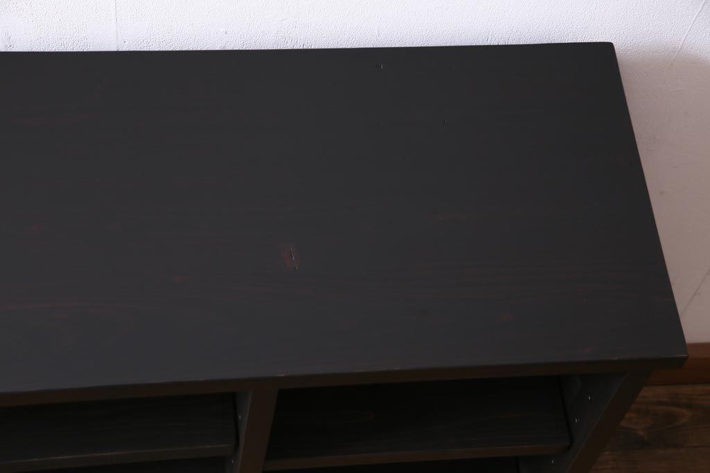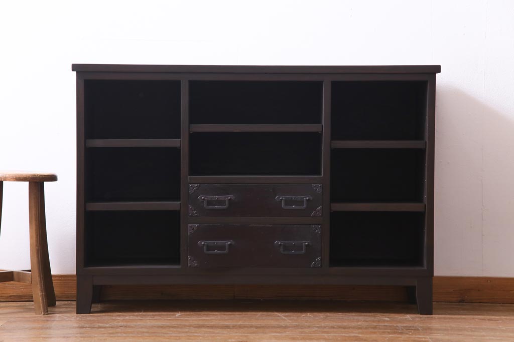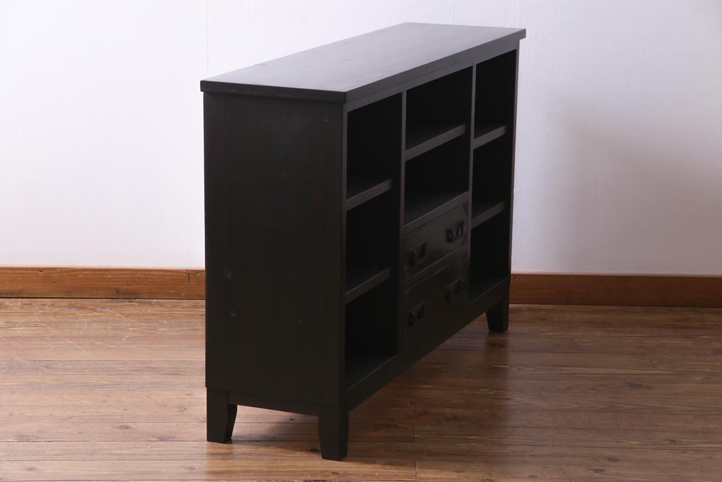 ラフジュ工房オリジナル 引き出しリメイク 黒漆と角手が渋さを演出するリビングボード(収納棚)です。