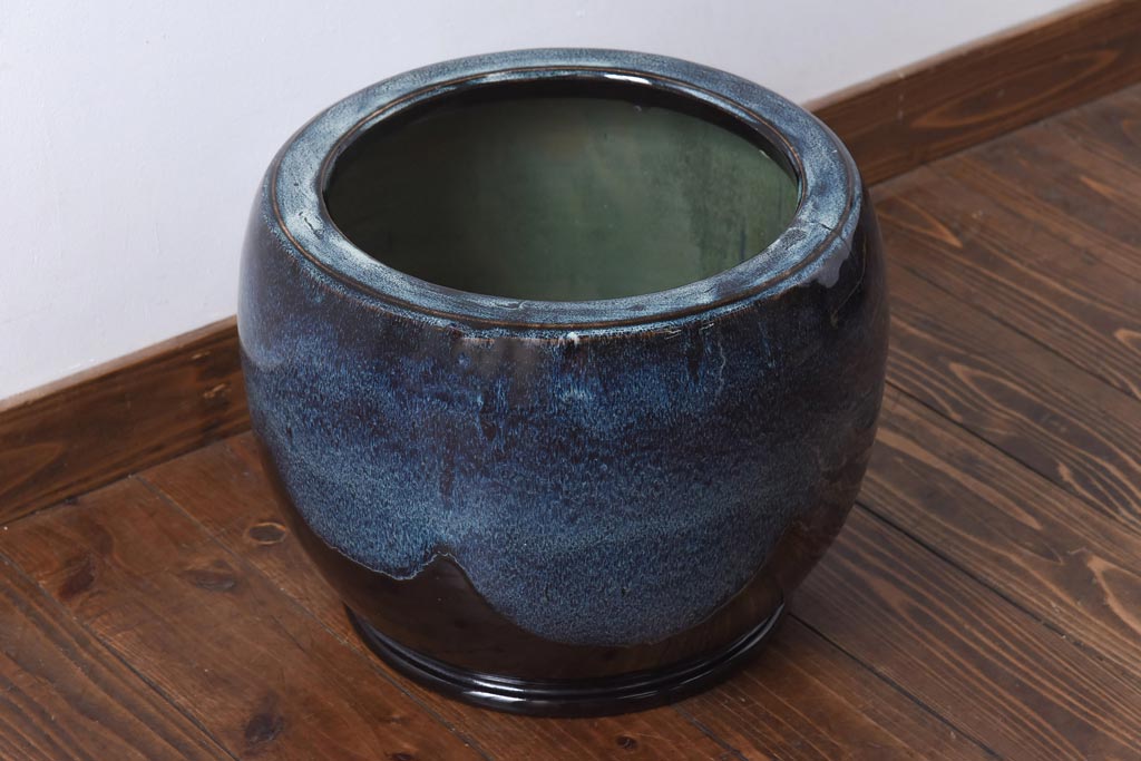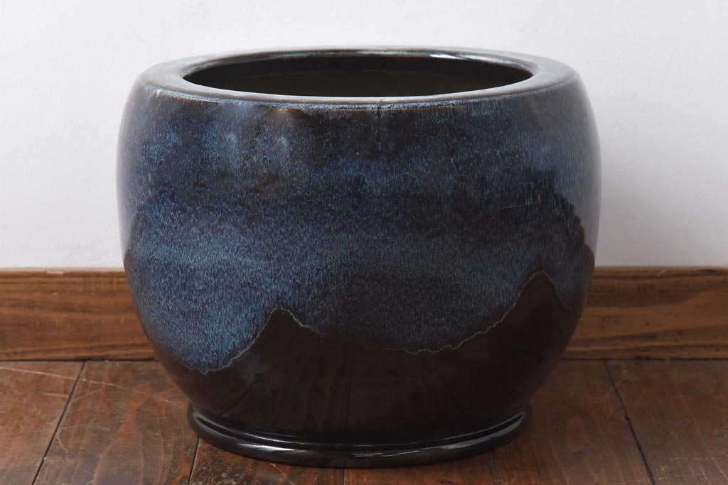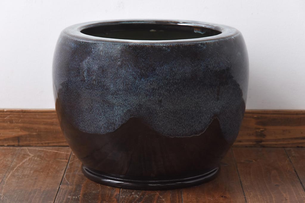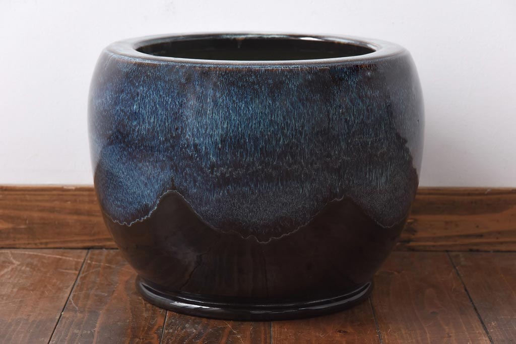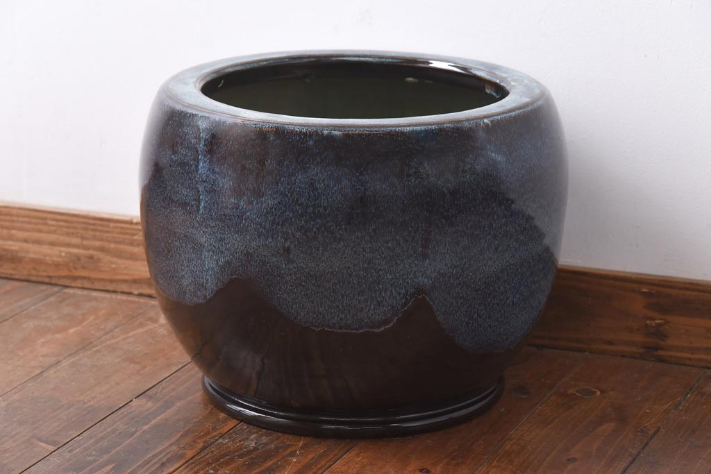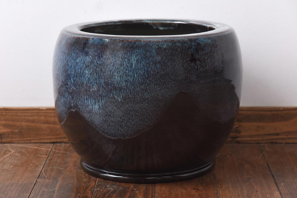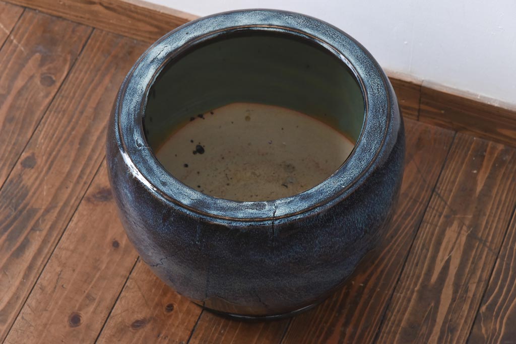 アンティーク雑貨 古民具 独特の模様が魅力的ななまこ火鉢(海鼠釉、瀬戸火鉢)