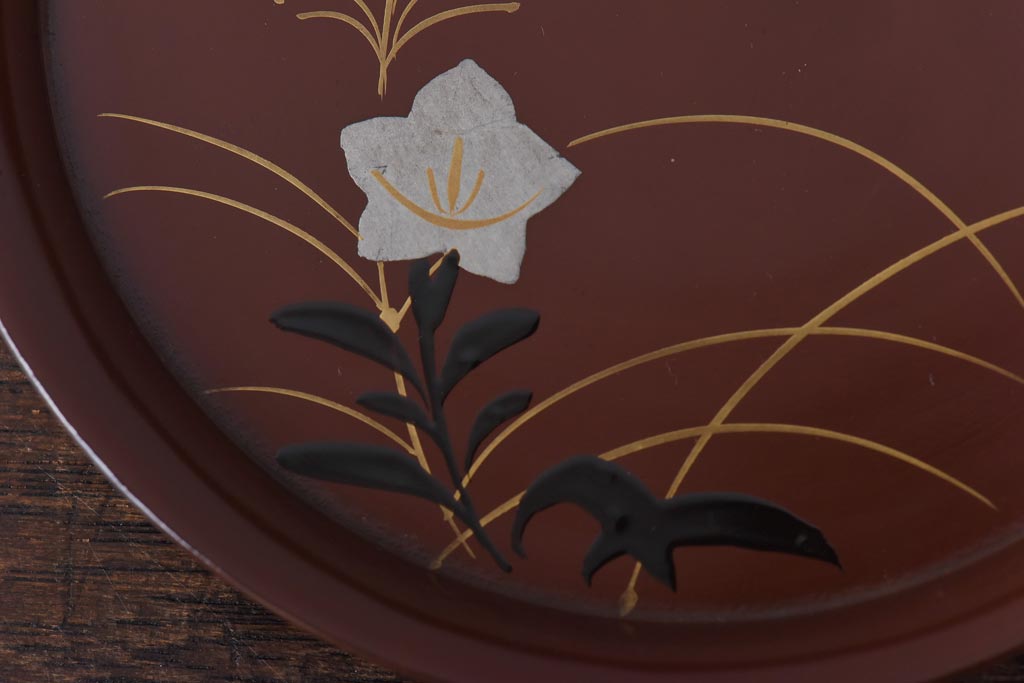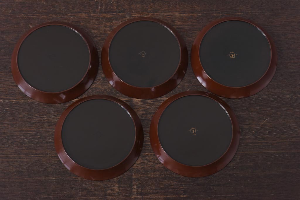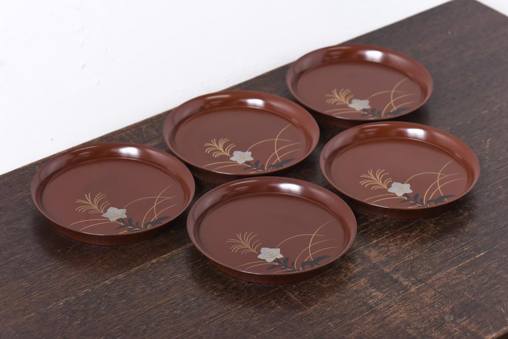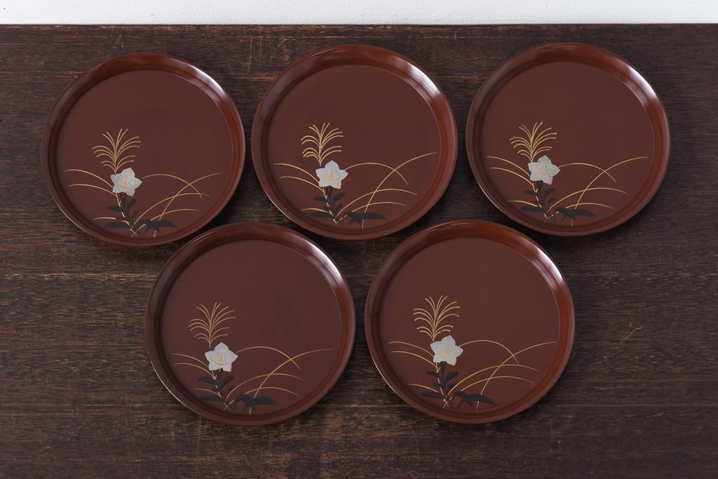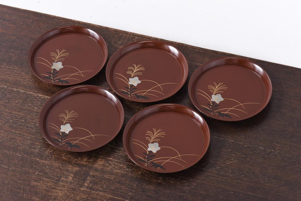 ラフジュ工房> 和食器・茶道具 > 昭和初期 桔梗図 しっとりとした光沢が魅力的な木製皿5枚セット(漆器、和食器)(1)