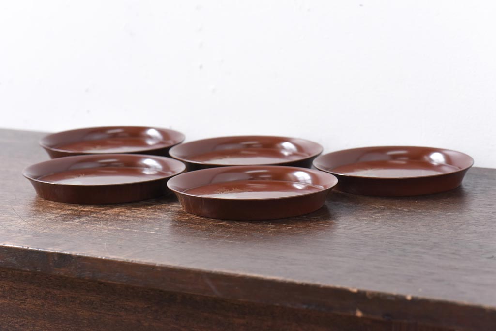 昭和初期 桔梗図 しっとりとした光沢が魅力的な木製皿5枚セット(漆器、和食器)(1)