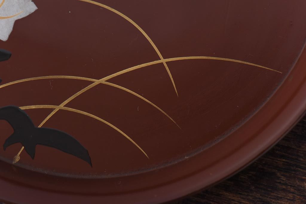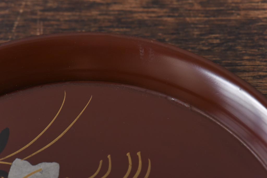 ラフジュ工房> 骨董・美術品> 骨董-漆器 > 昭和初期 桔梗図 しっとりとした光沢が魅力的な木製皿5枚セット(漆器、和食器)(1)