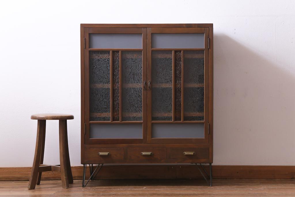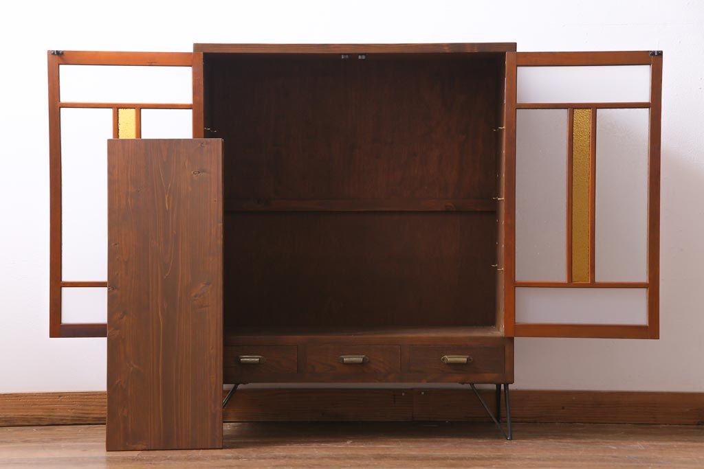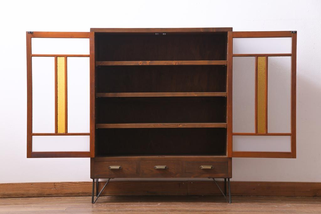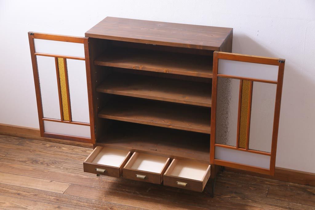 ラフジュ工房オリジナル 古建具リメイク 3種類のレトロガラスを使った趣きあふれる収納棚(本箱、戸棚)