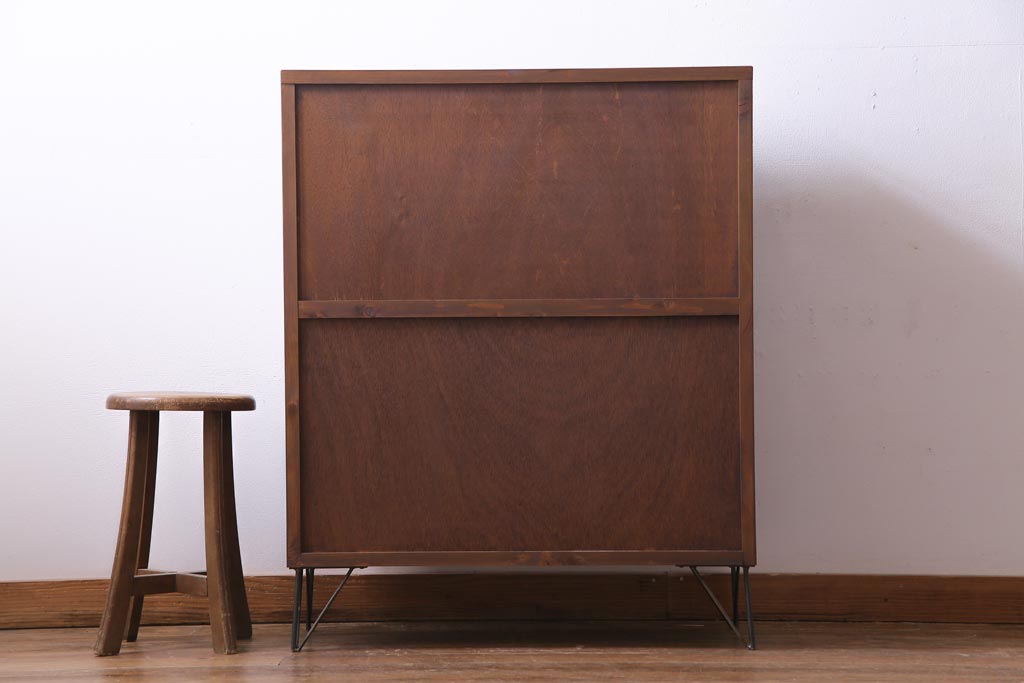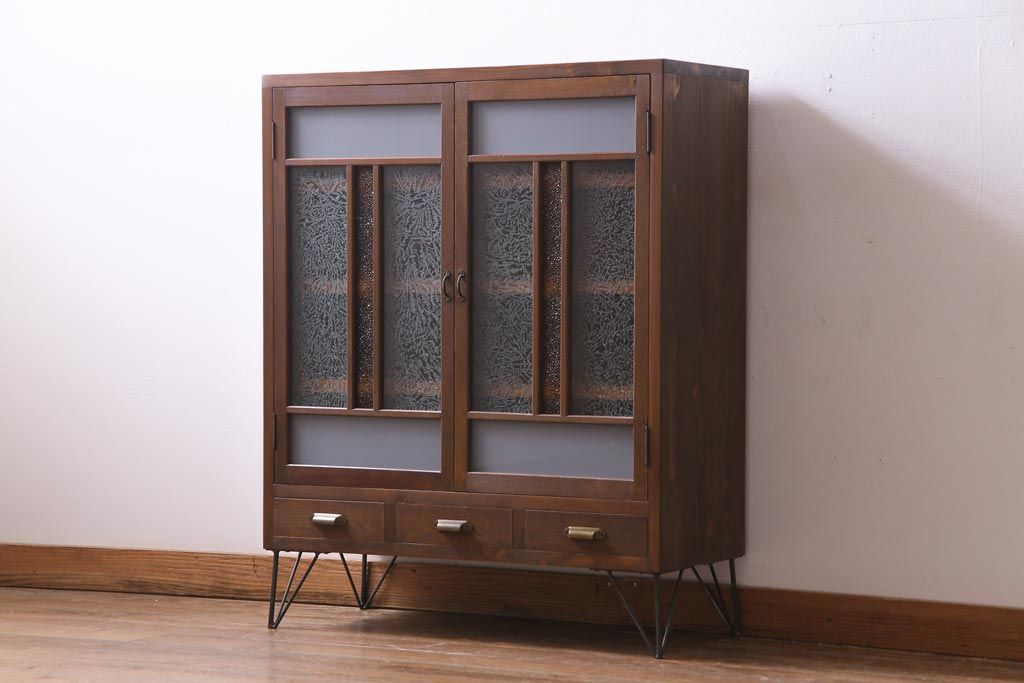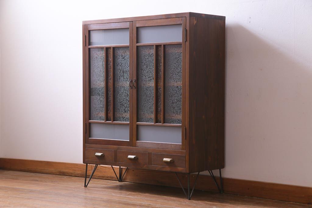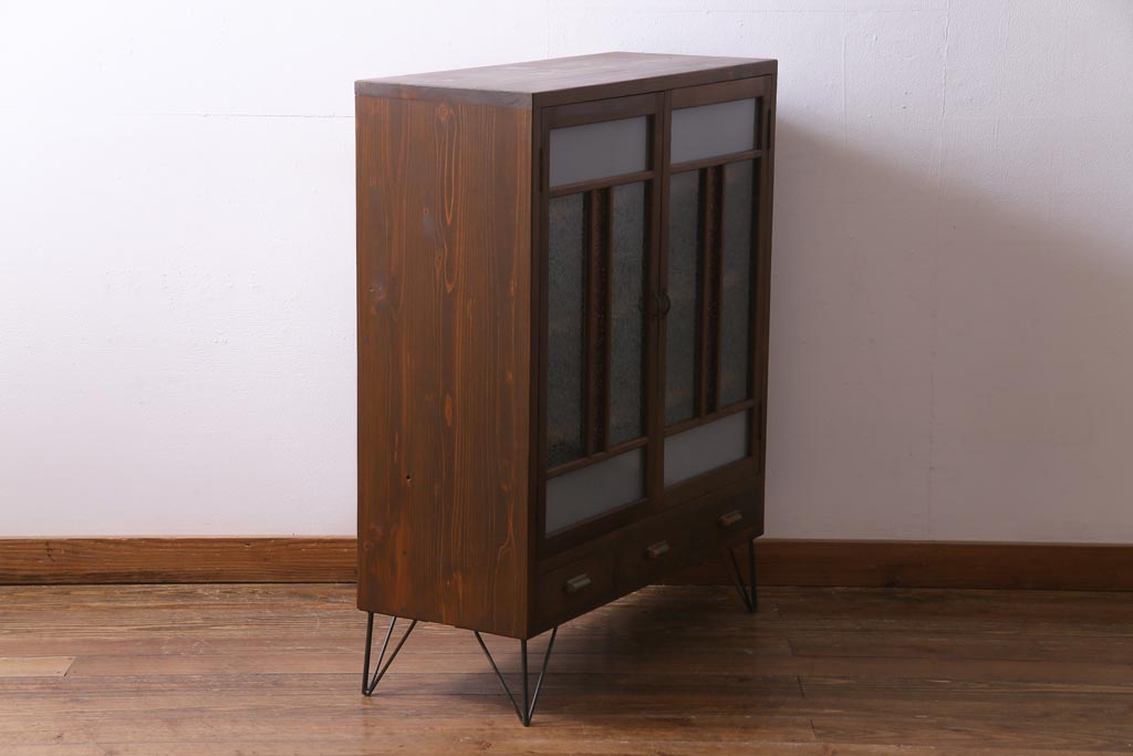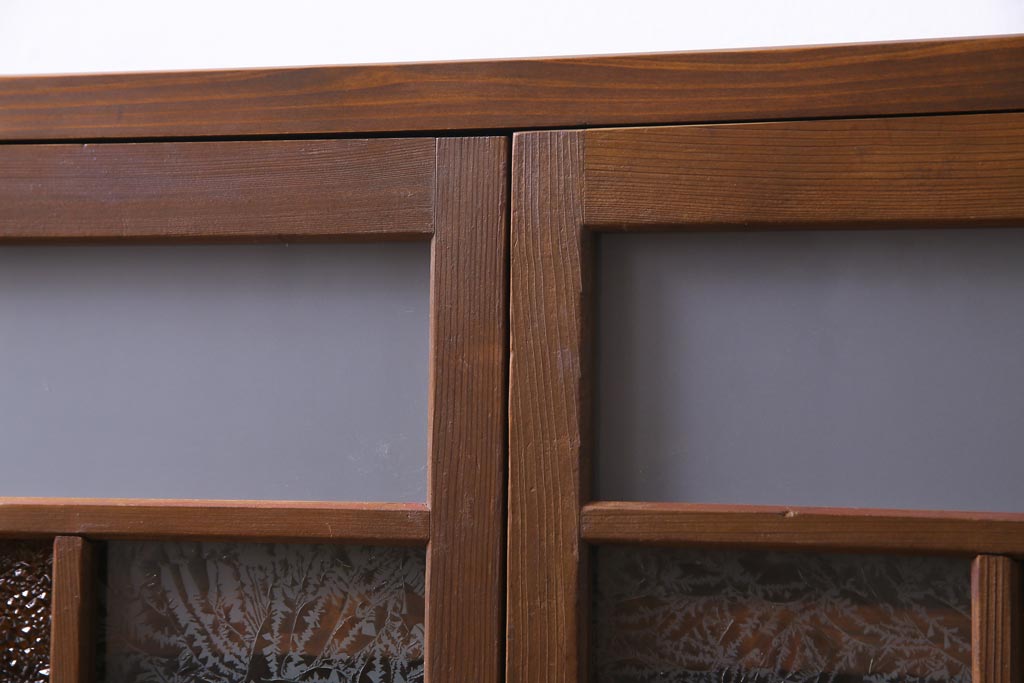 ラフジュ工房オリジナル 古建具リメイク 3種類のレトロガラスを使った趣きあふれる収納棚(本箱、戸棚)