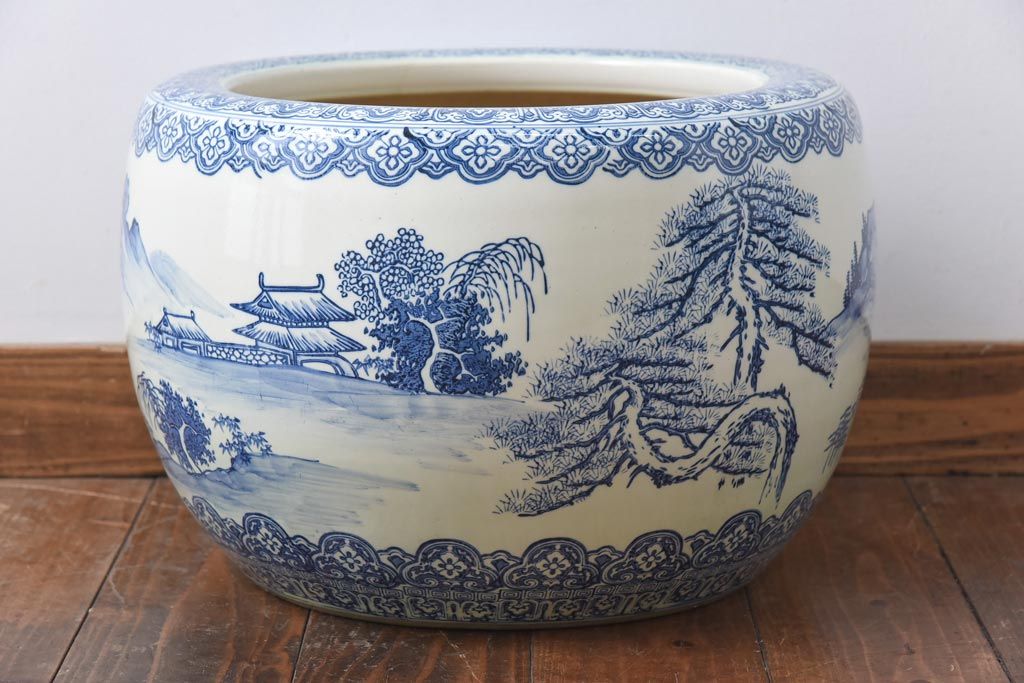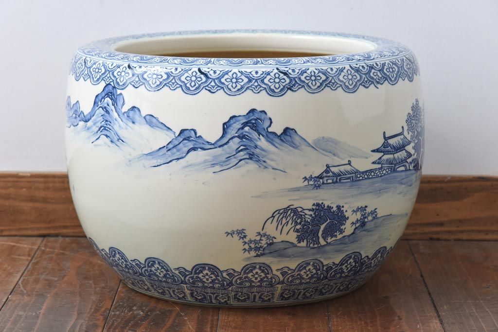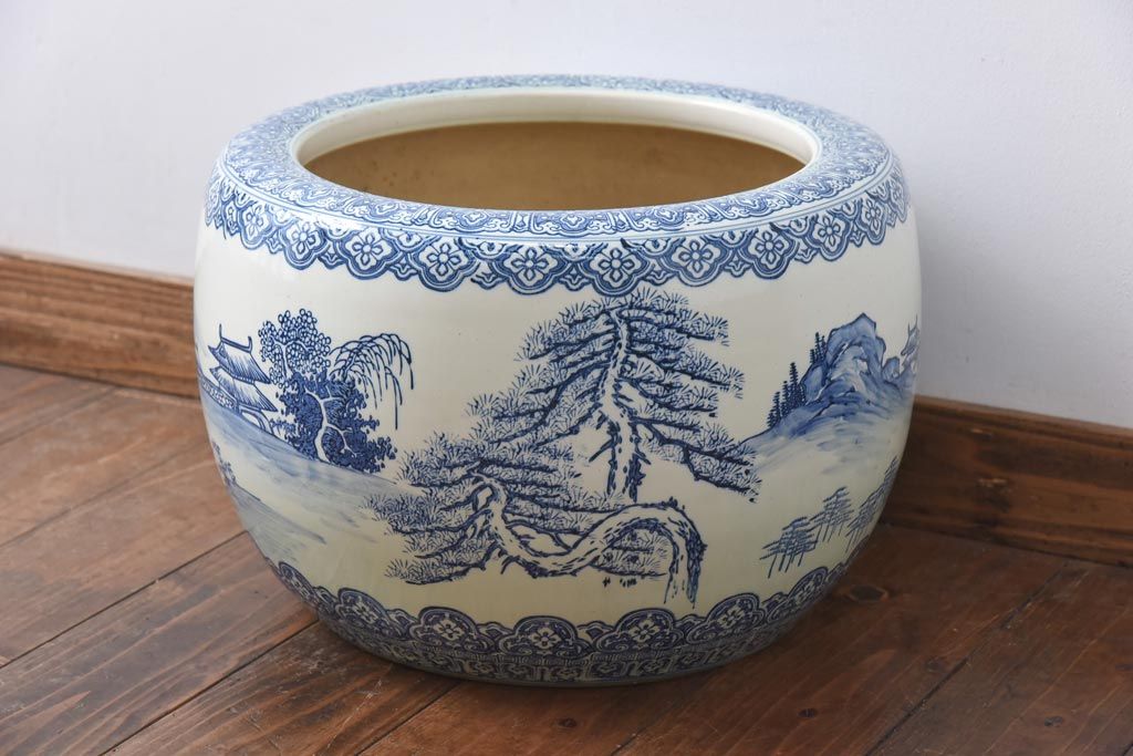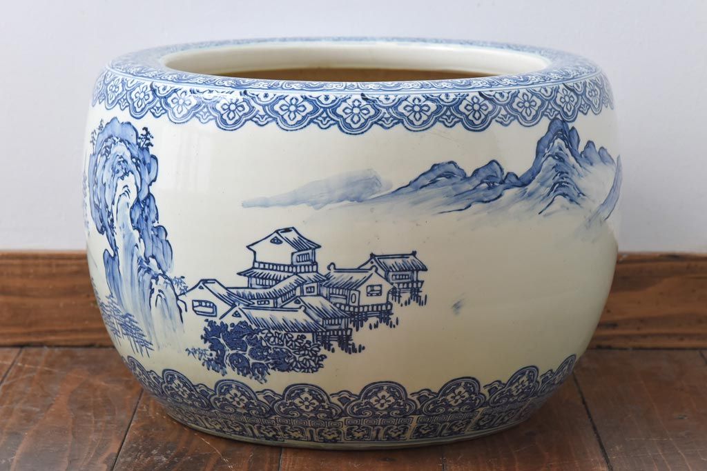 アンティーク雑貨 古民具 風景図 素朴な和の雰囲気を漂わせる瀬戸火鉢