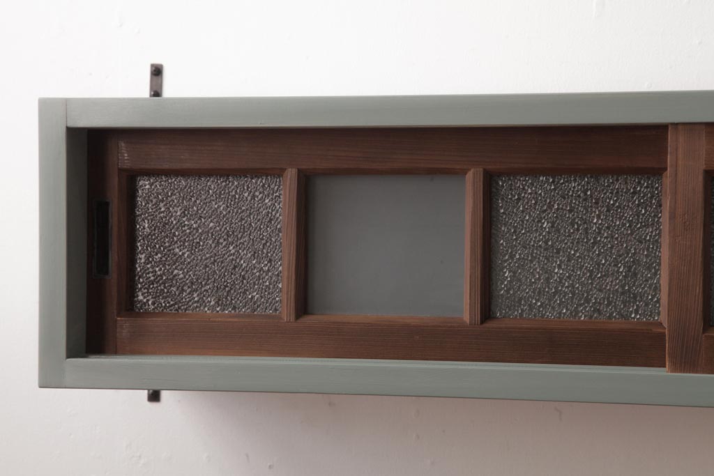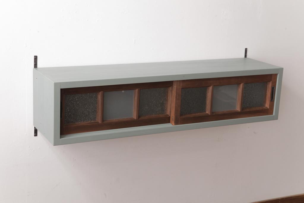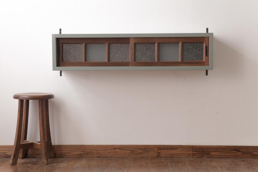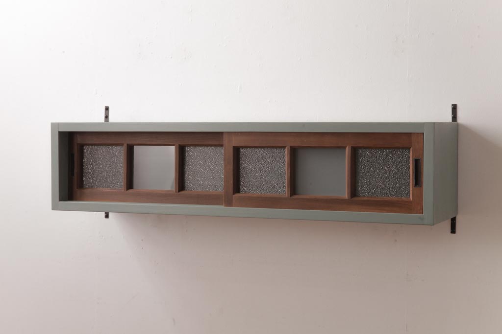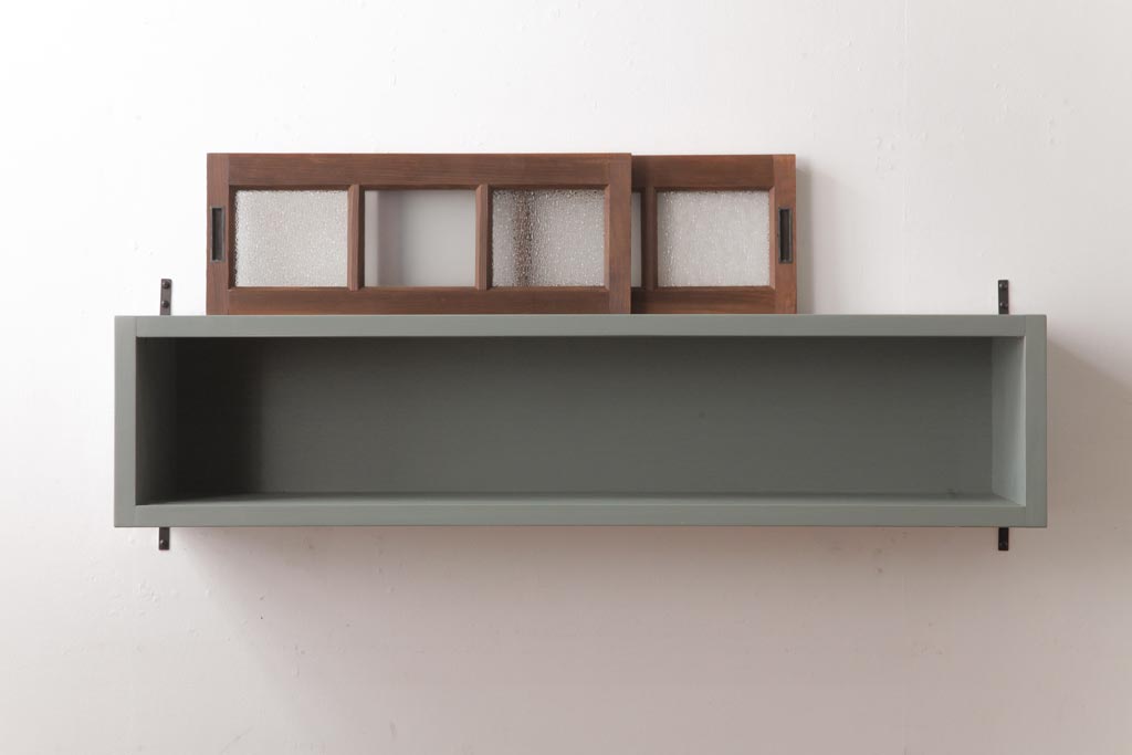 ラフジュ工房オリジナル 建具リメイク モスグリーンが可愛らしい壁掛け戸棚(ウォールラック)