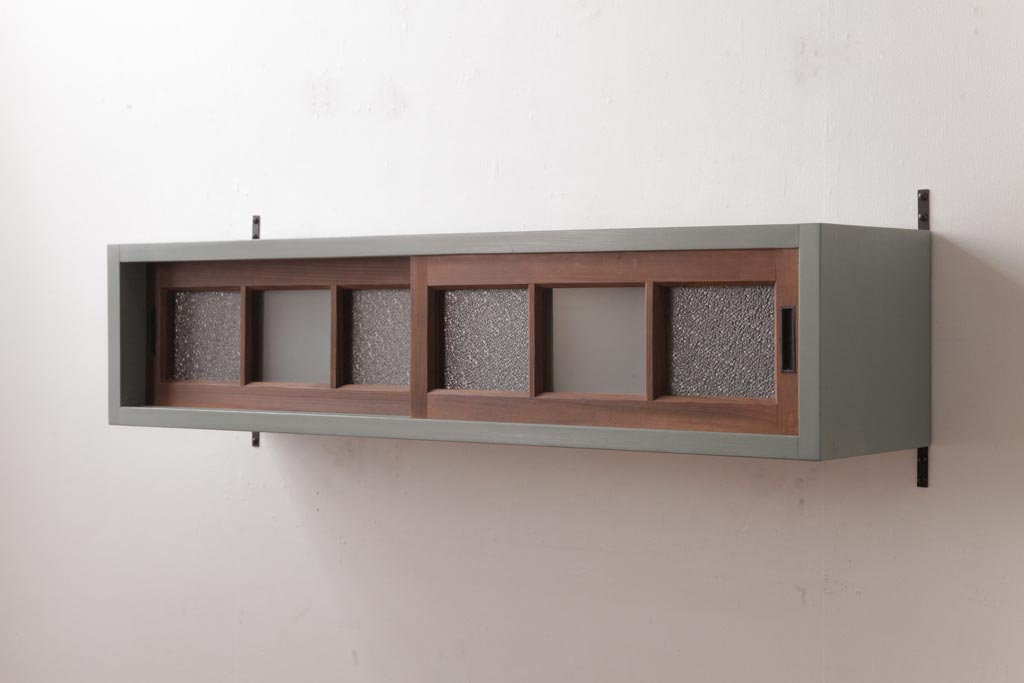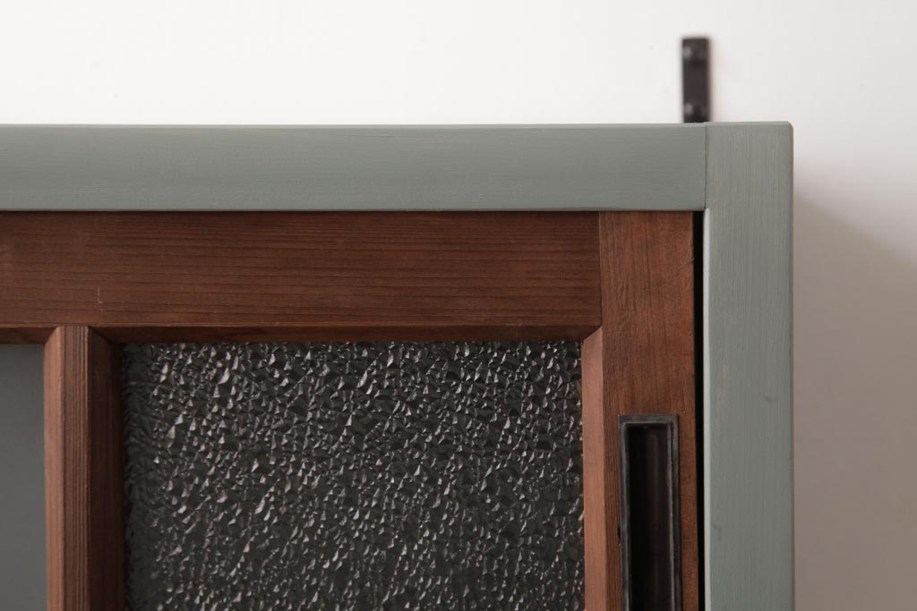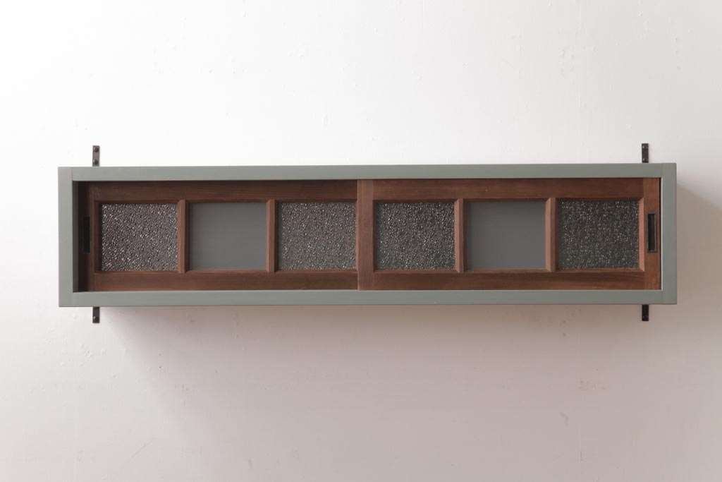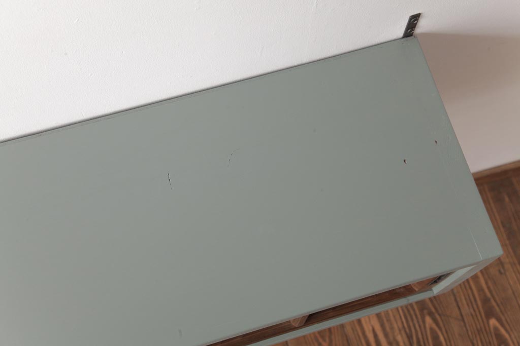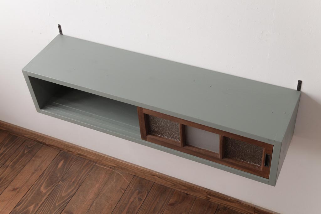 ラフジュ工房オリジナル 建具リメイク モスグリーンが可愛らしい壁掛け戸棚(ウォールラック)