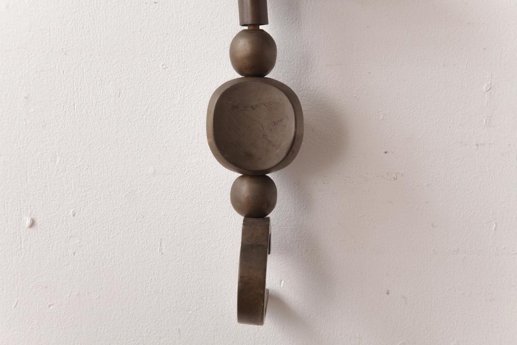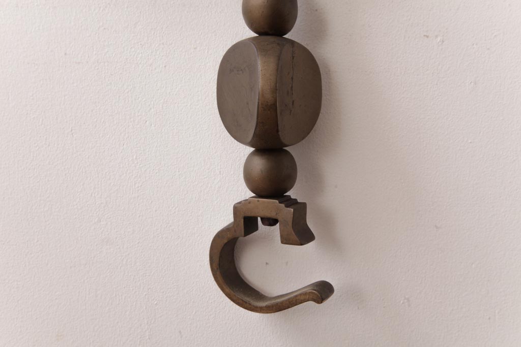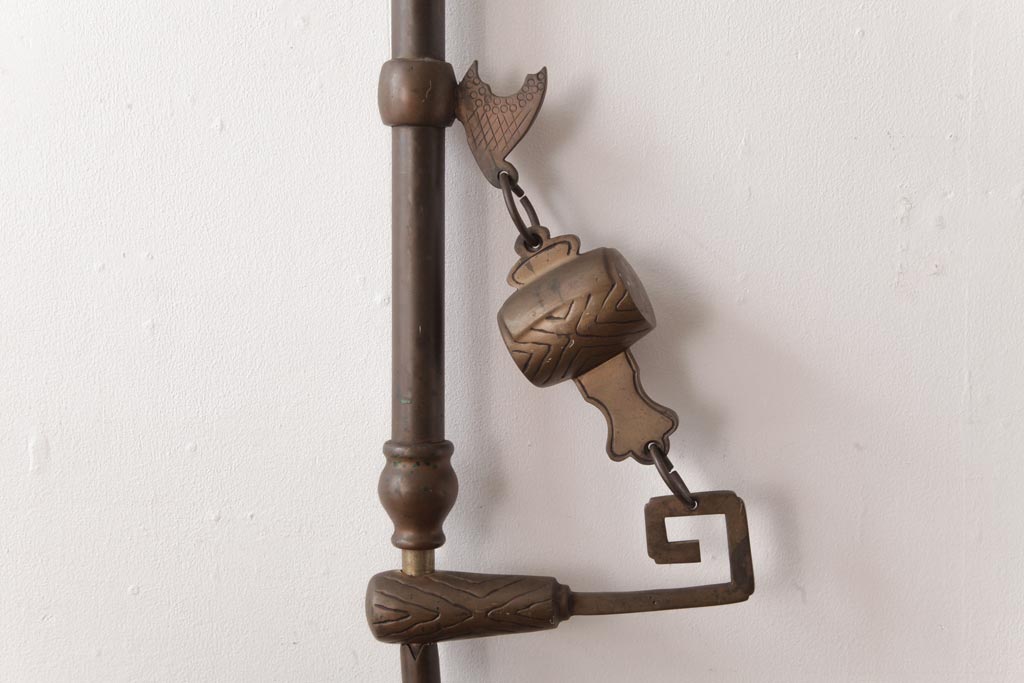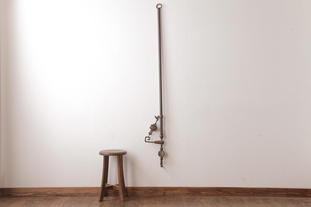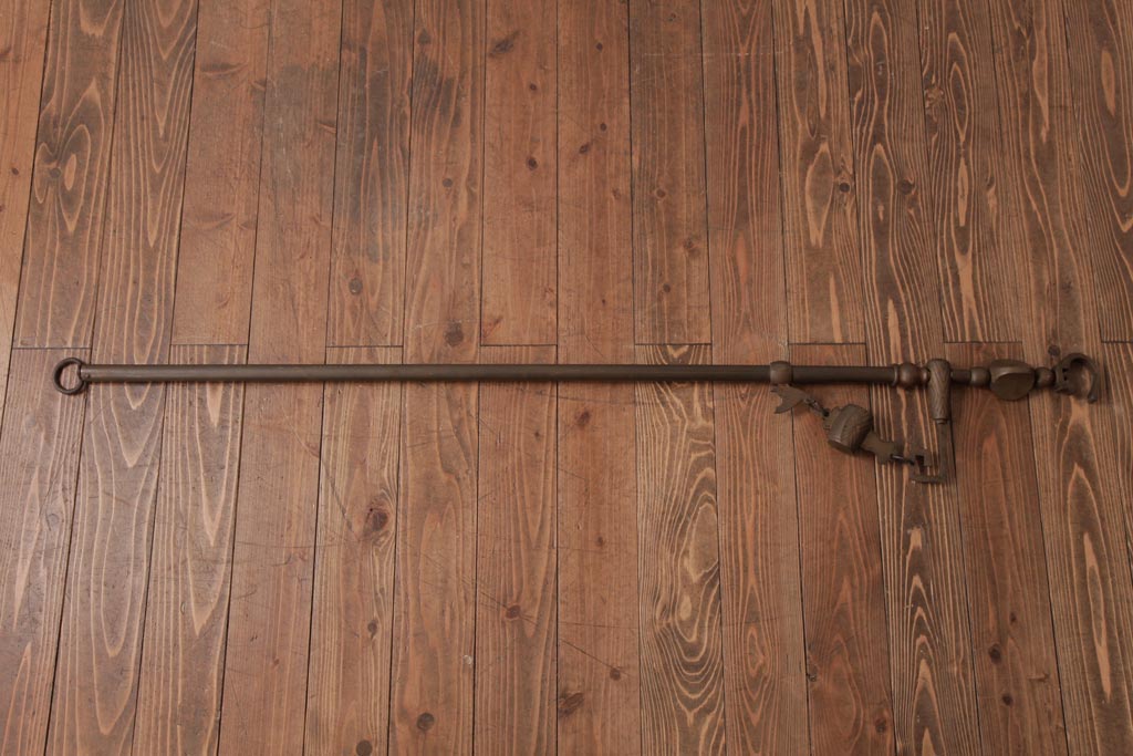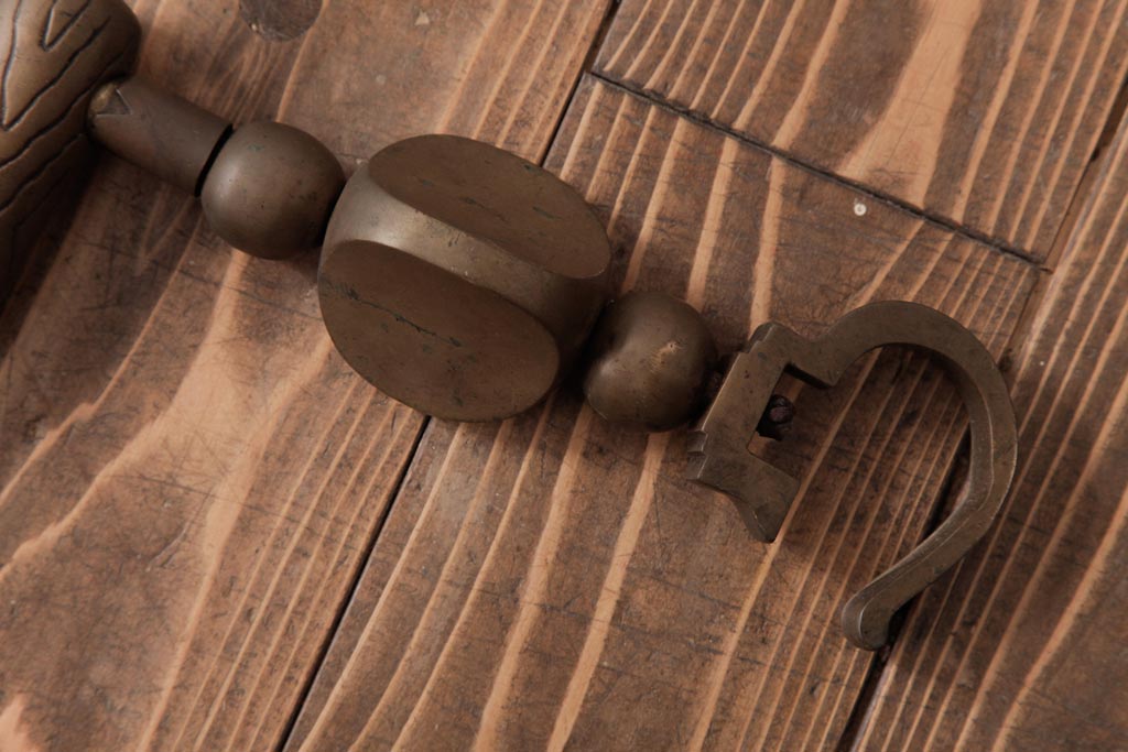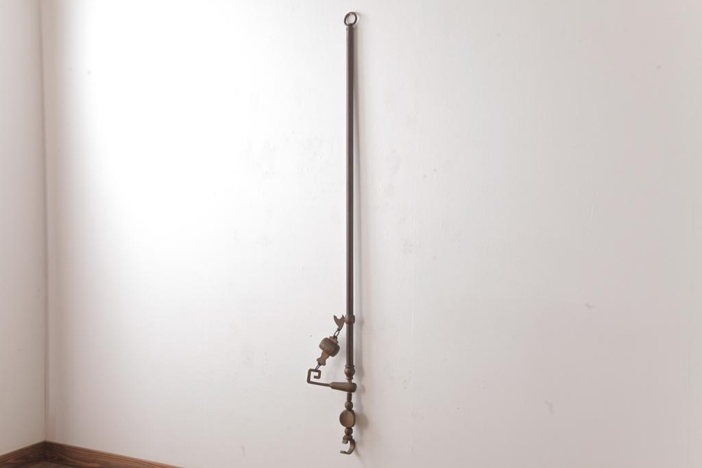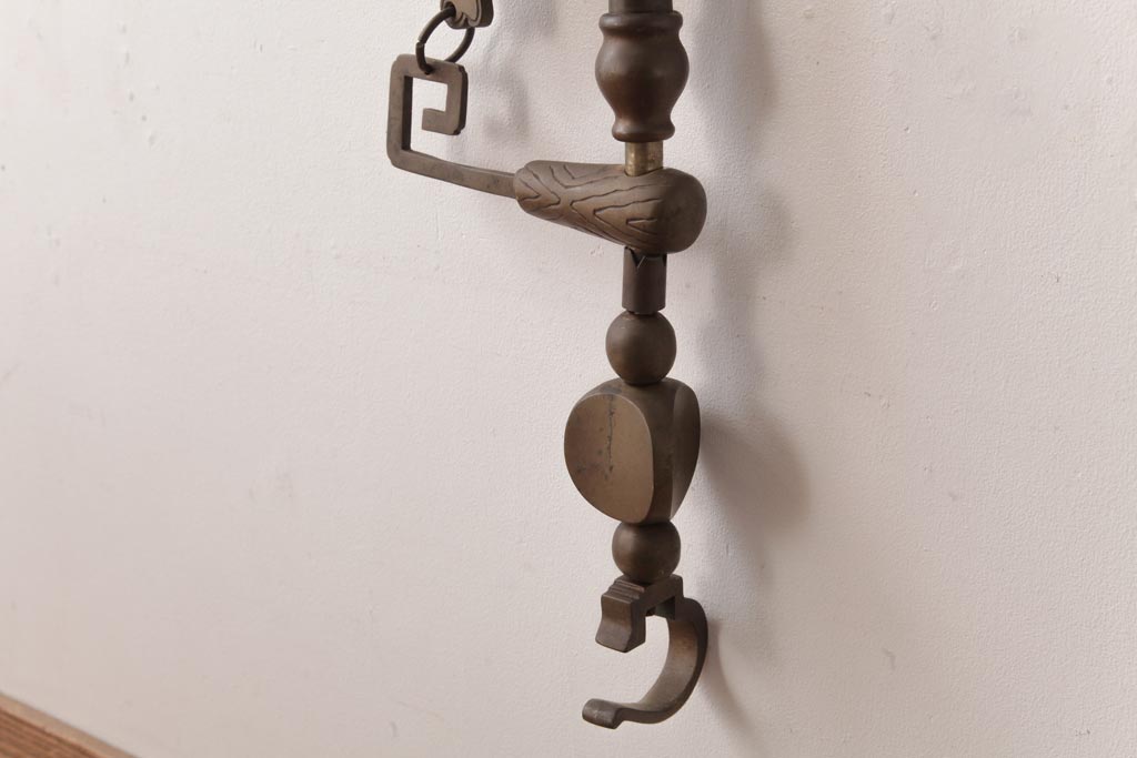 アンティーク雑貨 昭和初期 真鍮製 飾りが趣きある中通し式自在鉤(じざいかぎ)