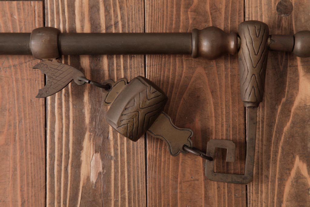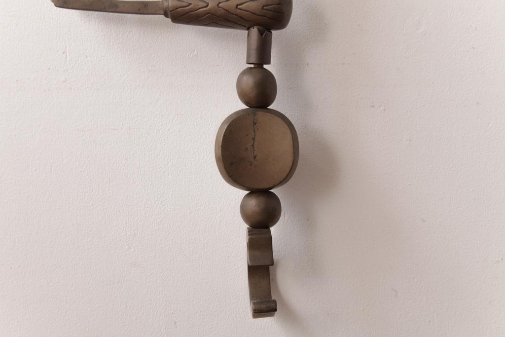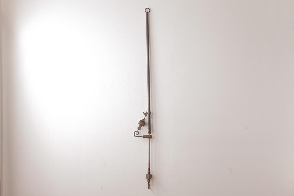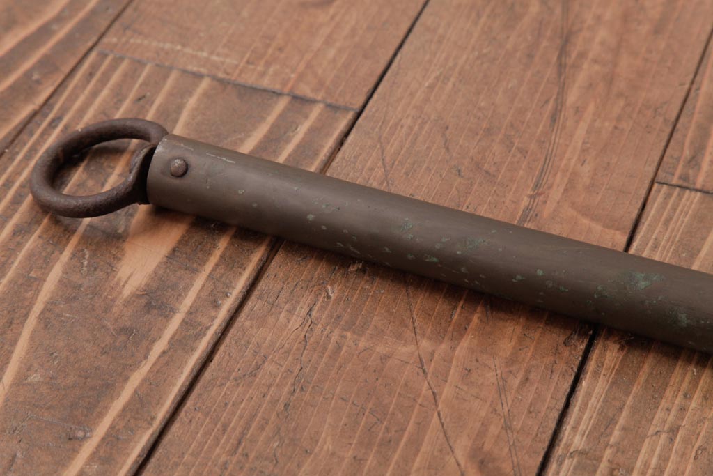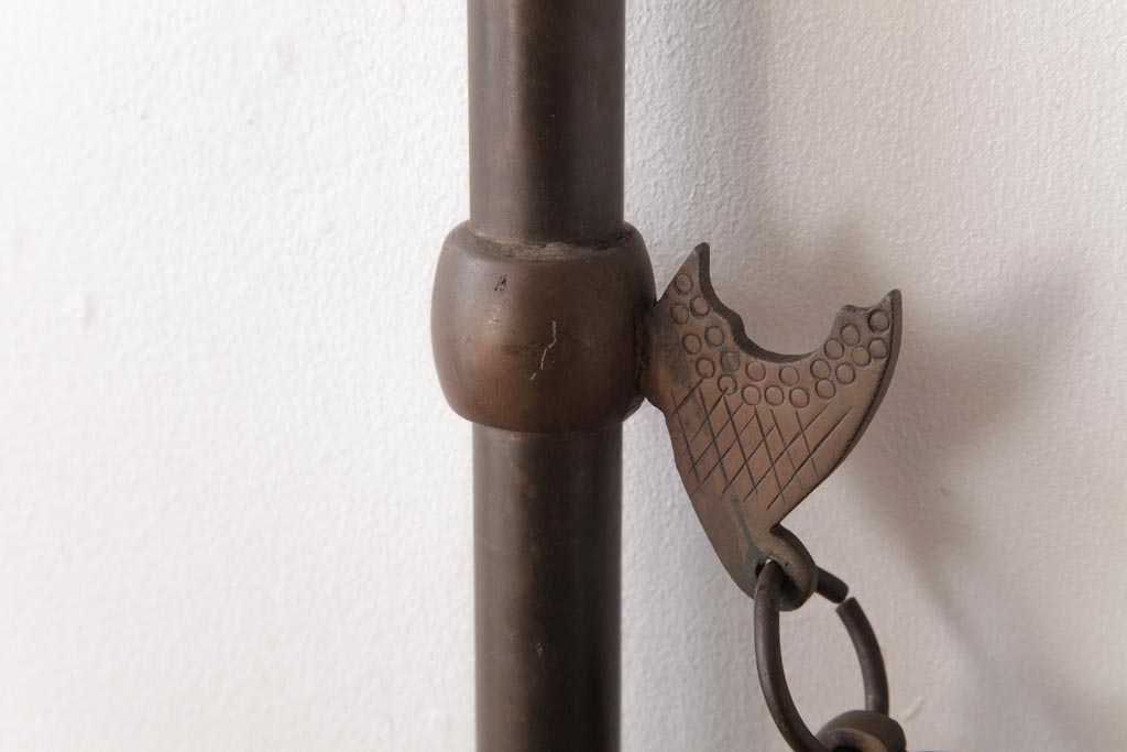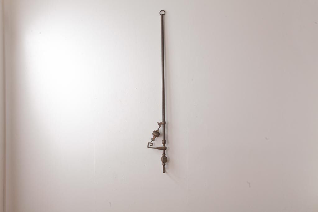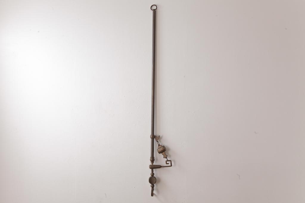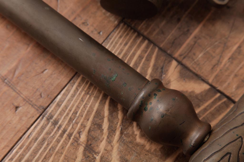 アンティーク雑貨 昭和初期 真鍮製 飾りが趣きある中通し式自在鉤(じざいかぎ)