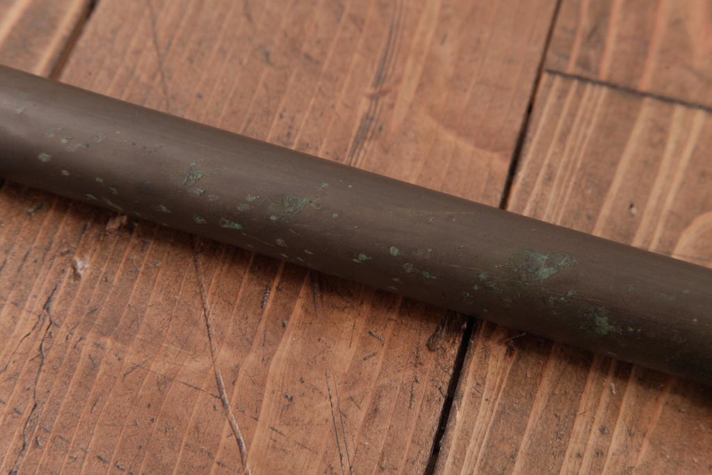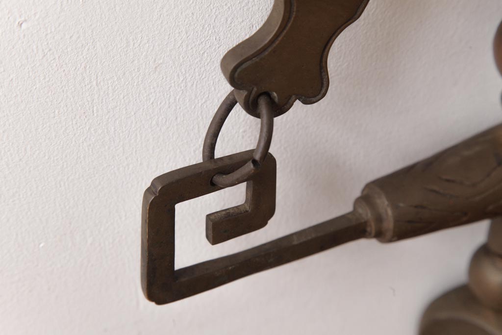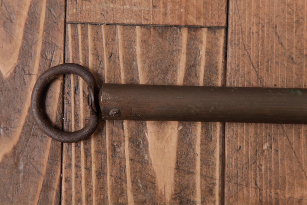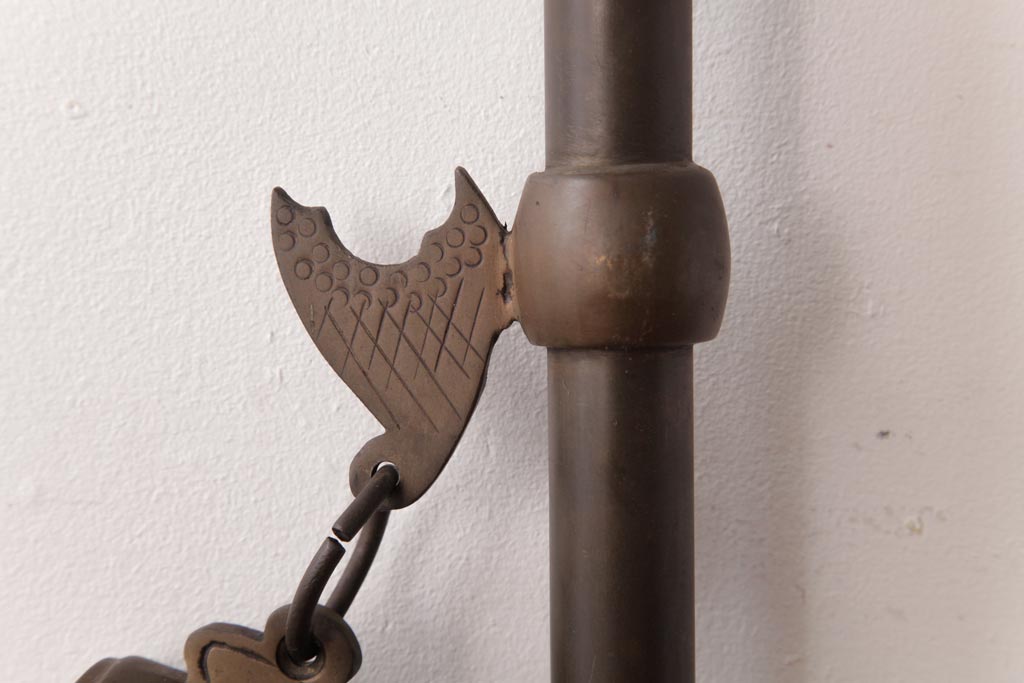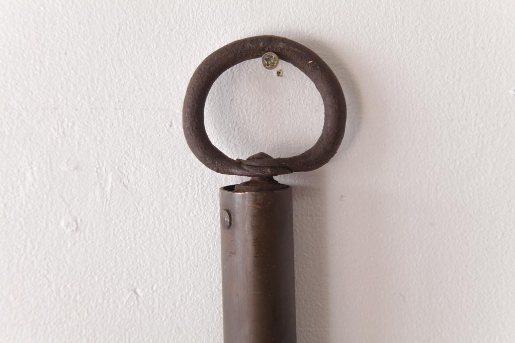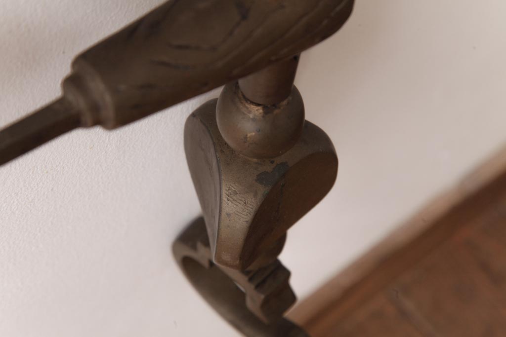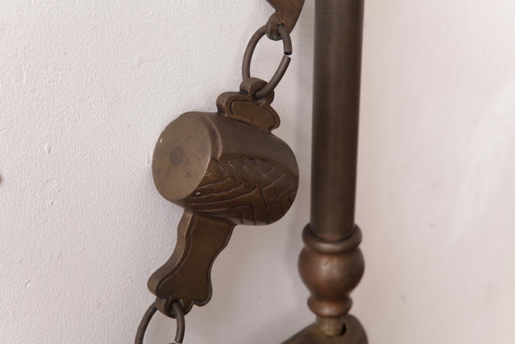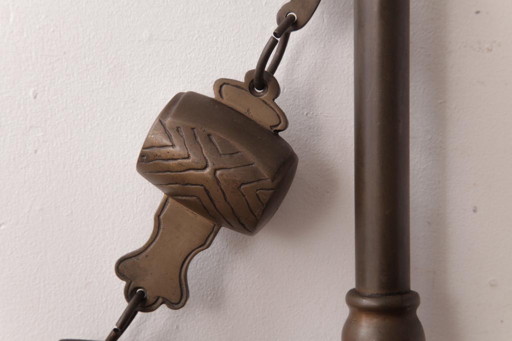 アンティーク雑貨 昭和初期 真鍮製 飾りが趣きある中通し式自在鉤(じざいかぎ)