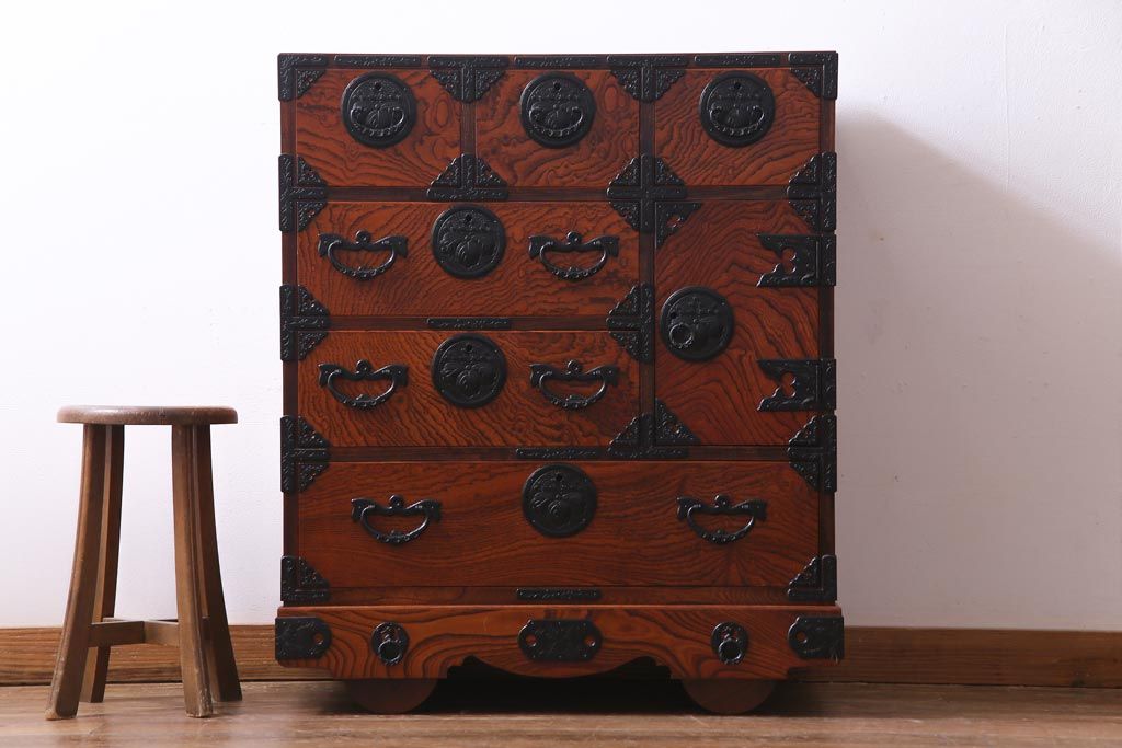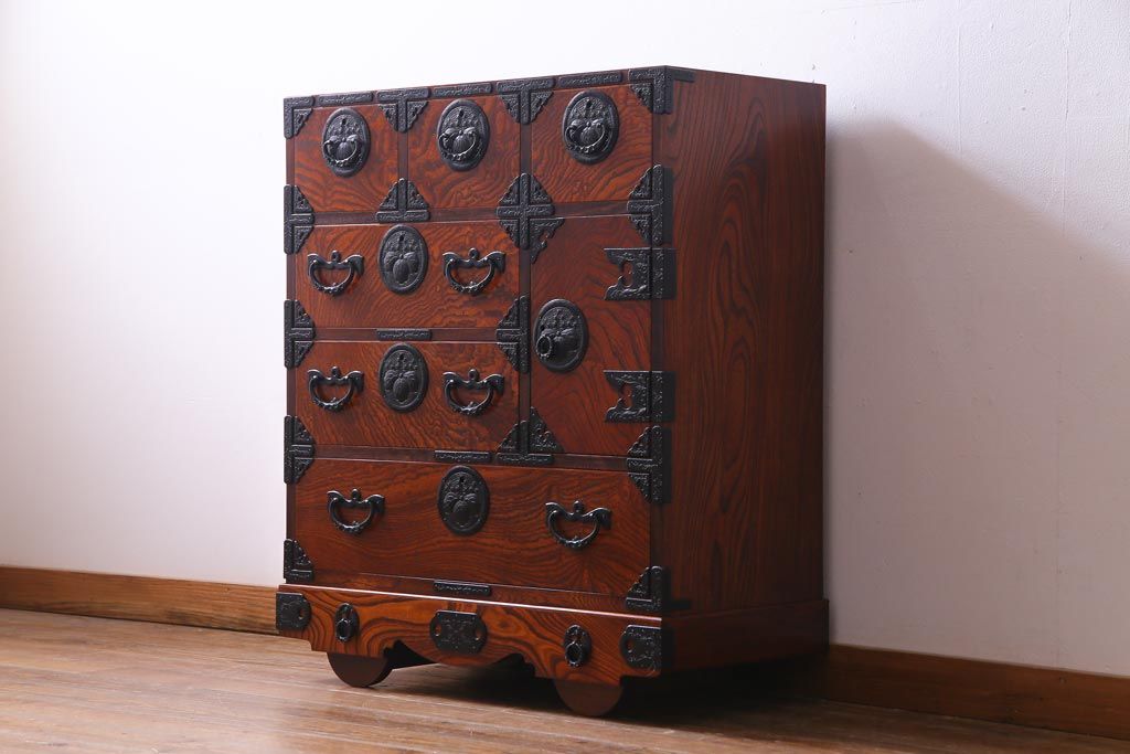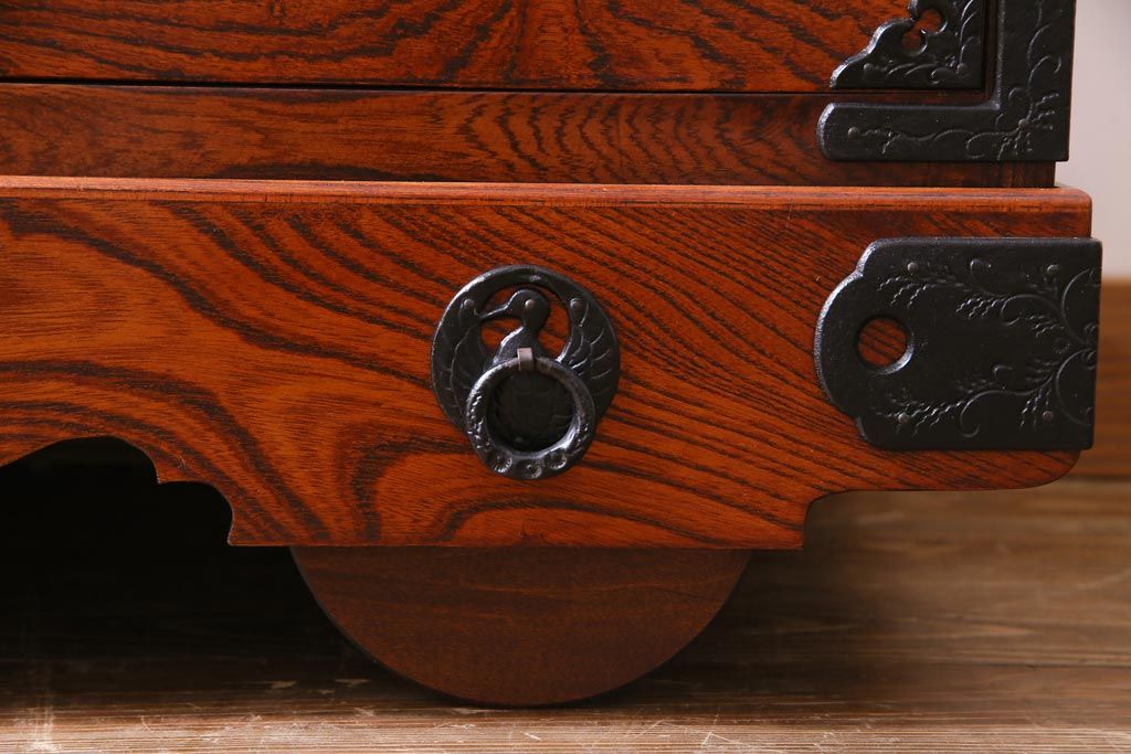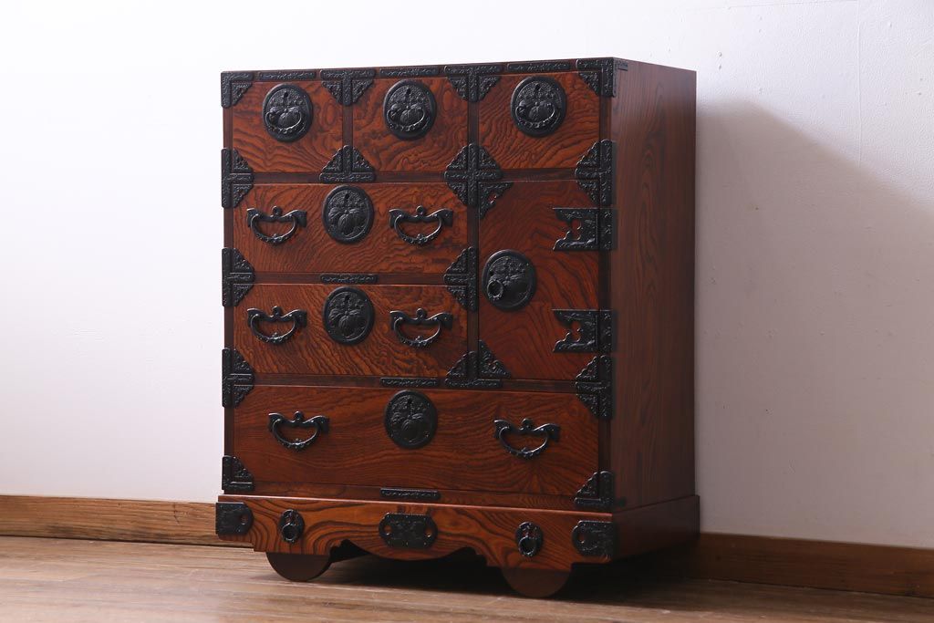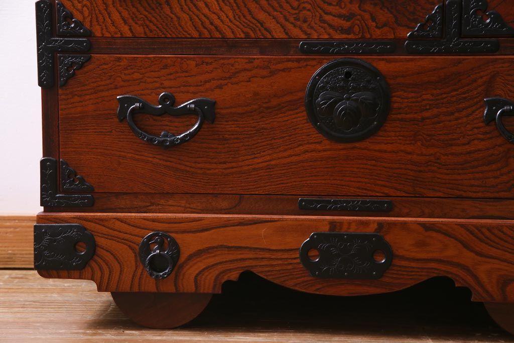ラフジュ工房> 民芸家具 > 中古 伝統民芸 岩谷堂箪笥 桐紋 みちのく 車タンス(小タンス3号、車箪笥、桐箪笥、桐たんす)(定価約37万5千円)