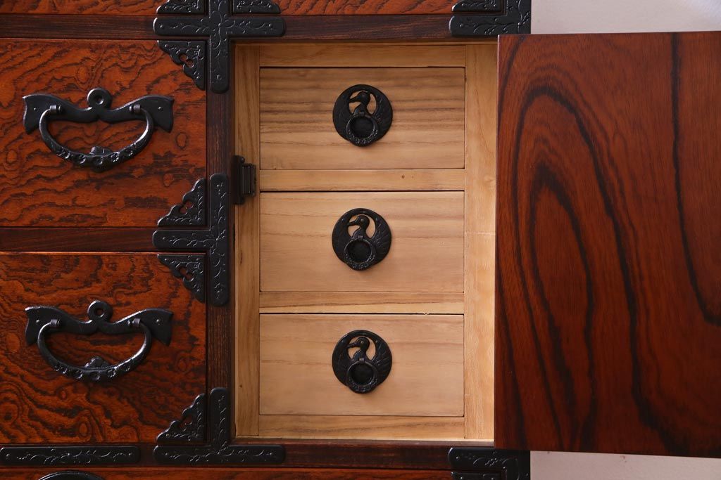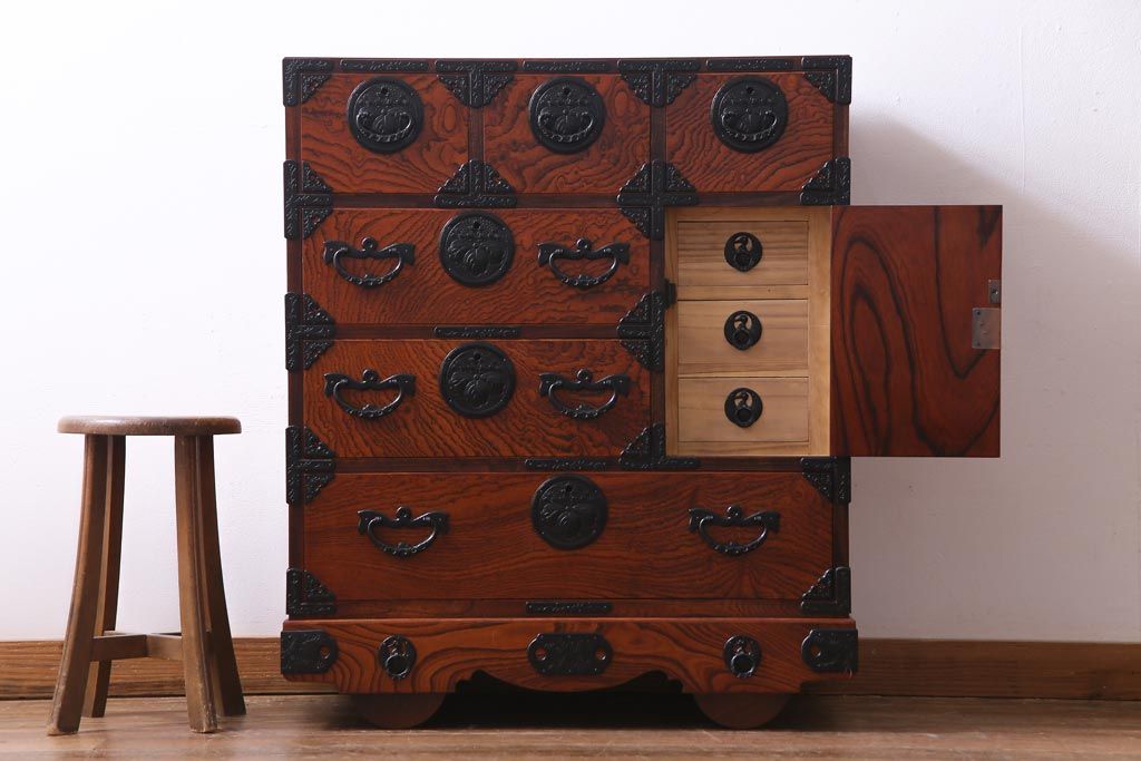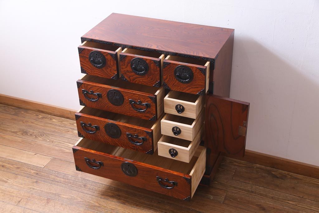 ラフジュ工房> 和箪笥 > 中古 伝統民芸 岩谷堂箪笥 桐紋 みちのく 車タンス(小タンス3号、車箪笥、桐箪笥、桐たんす)(定価約37万5千円)