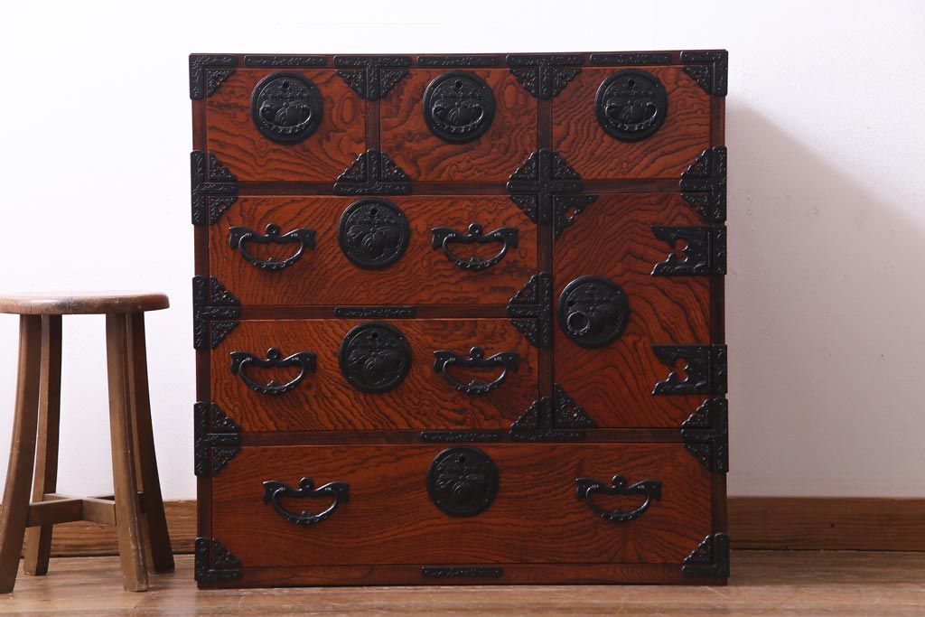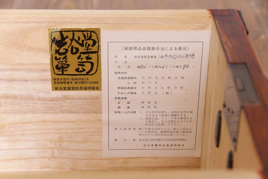 ラフジュ工房> 和箪笥> 車箪笥 > 中古 伝統民芸 岩谷堂箪笥 桐紋 みちのく 車タンス(小タンス3号、車箪笥、桐箪笥、桐たんす)(定価約37万5千円)