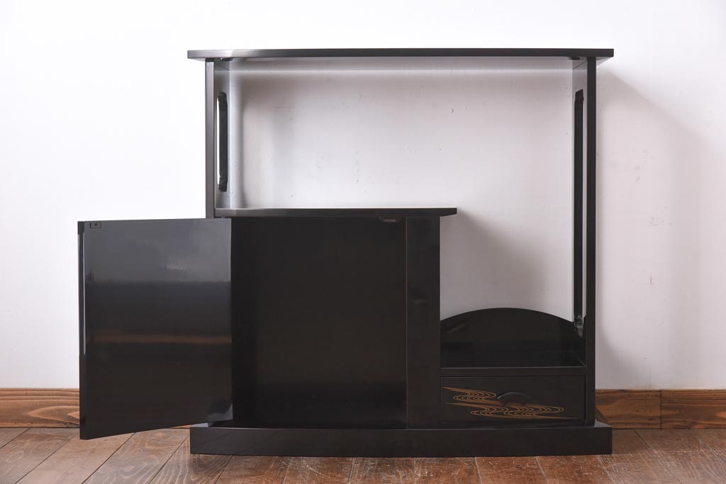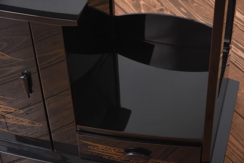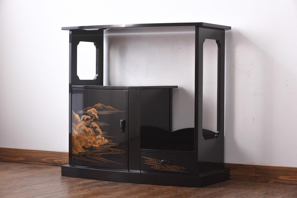 和箪笥> 茶箪笥・茶棚 > 中古 極上品! 輪島漆器 輪島塗 大雅堂 大角裕二 山水蒔絵・螺鈿 飾り棚(定価約237万円)